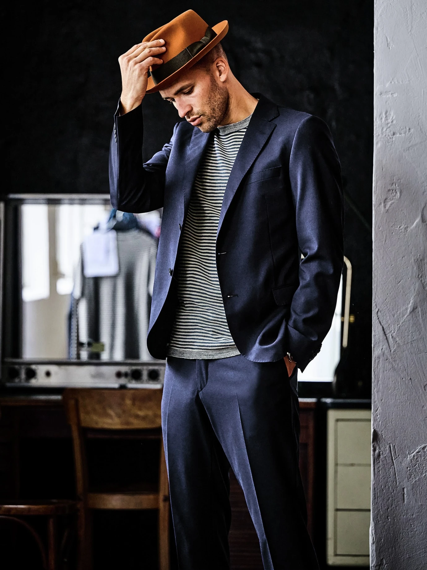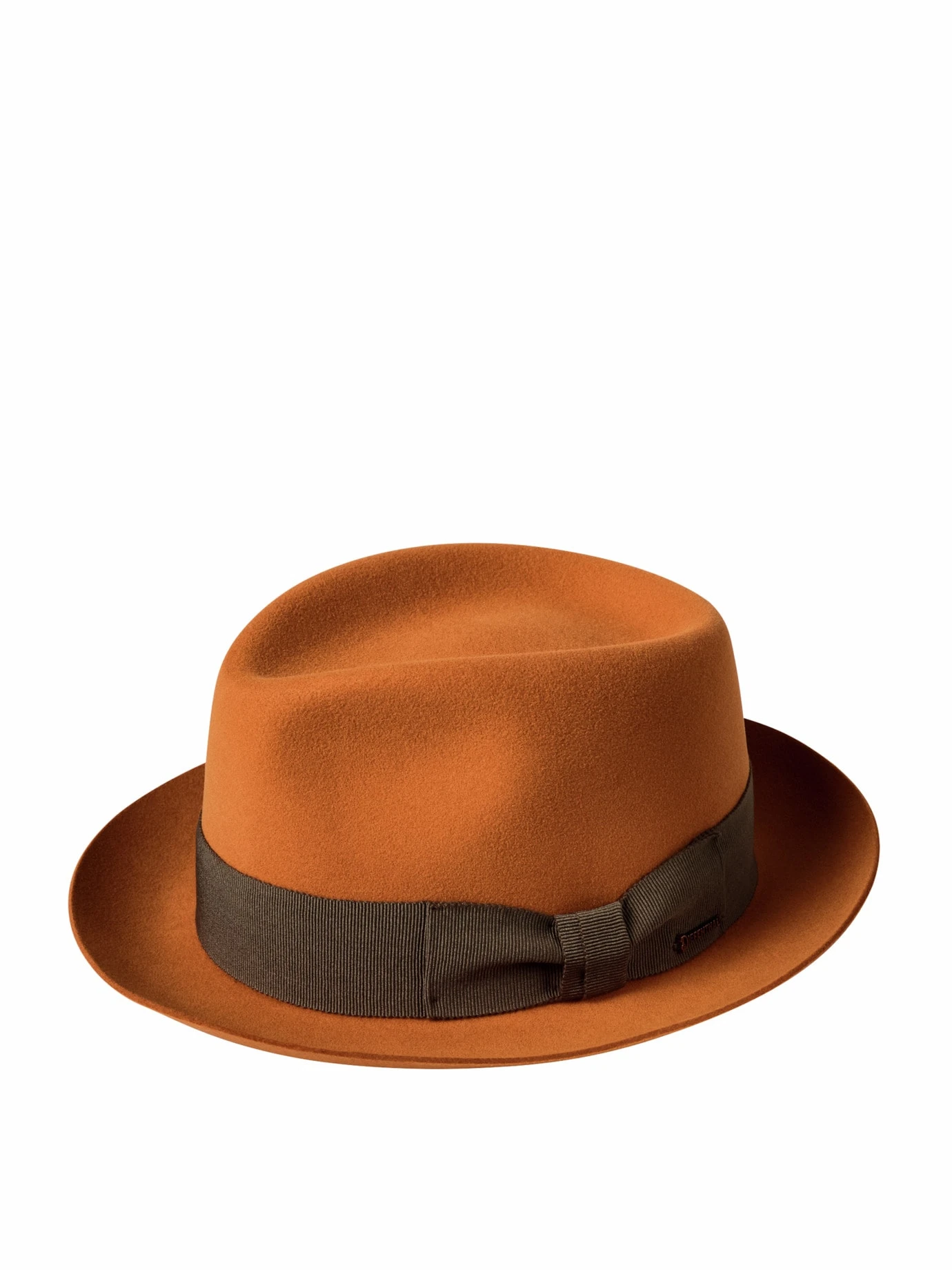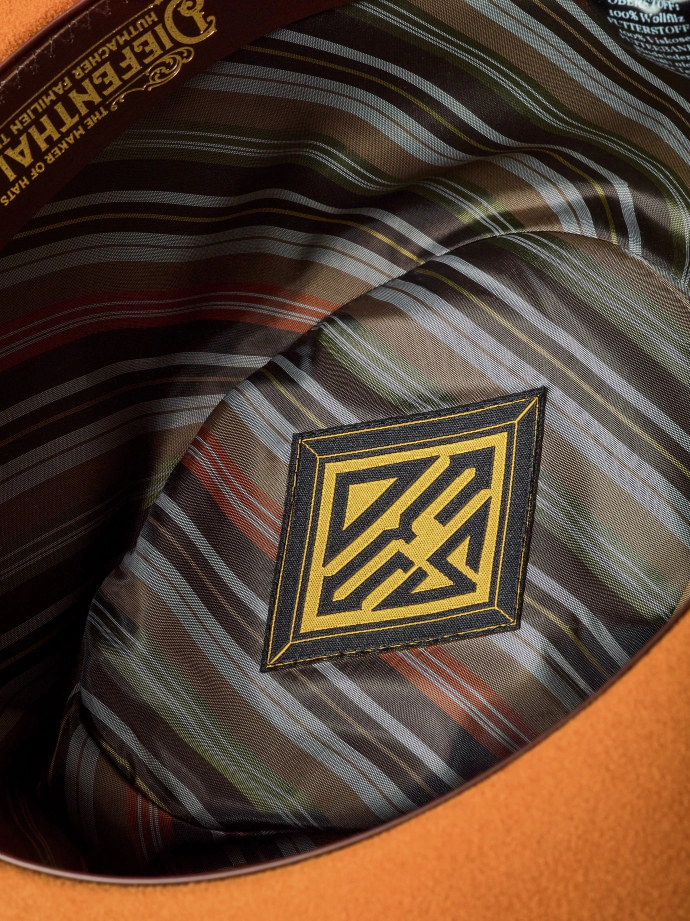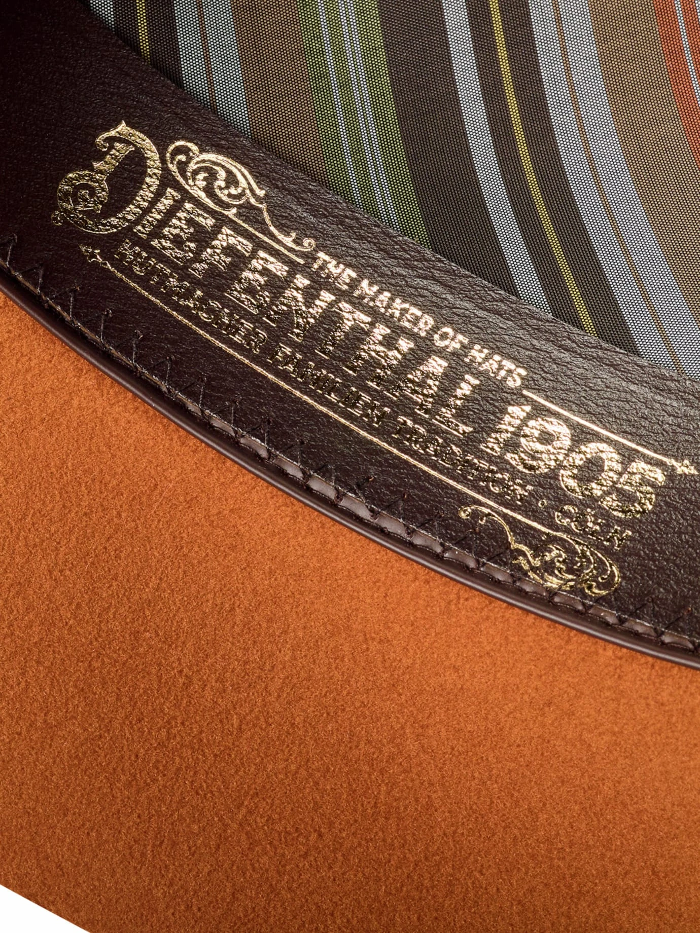 Zum Sehen. Und gesehen werden. Als Klassiker am Pokertisch wird der 1965 Player leicht nach hinten, aus dem Gesicht geschoben (verbessert den Überblick). Mit seinem matt seidigen Glanz, dem starken Farbton „rote Erde“ und dem fangobraunen Rips Band als Garnitur, wirkt er wie ein edles Einzelstück, lässt seinen Träger fein aber auch ein wenig verspielt und durchtrieben wirken. Kombinieren Sie ihn mit gutem Jazz im Hinterkopf, ansonsten zeigt er sich modisch überaus kompatibel.
