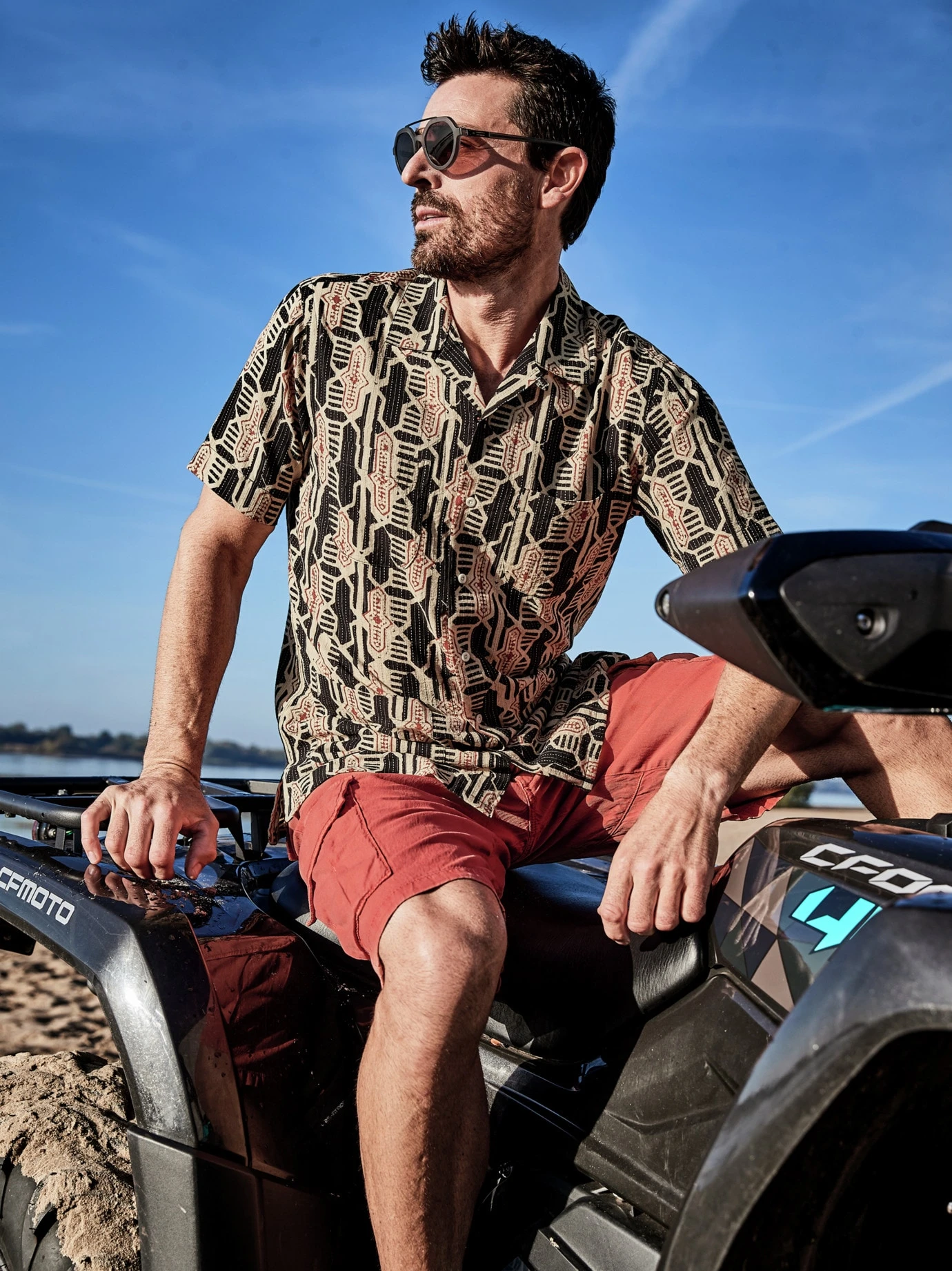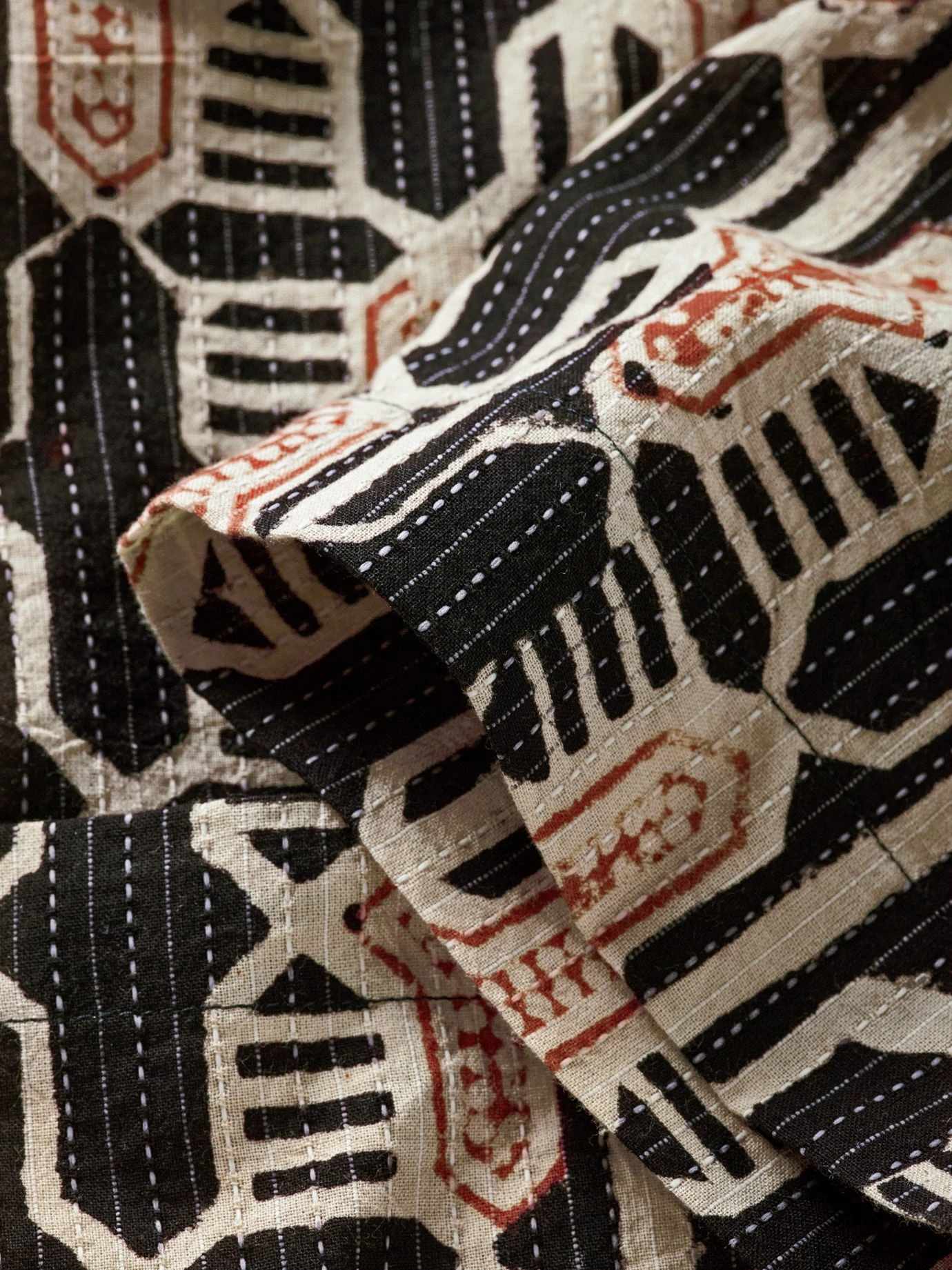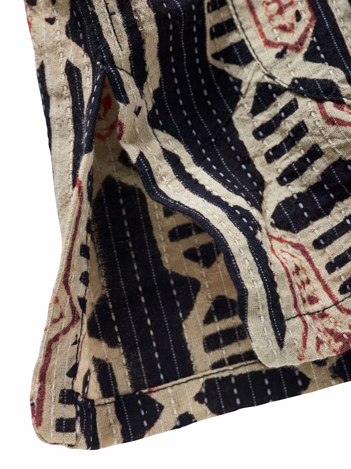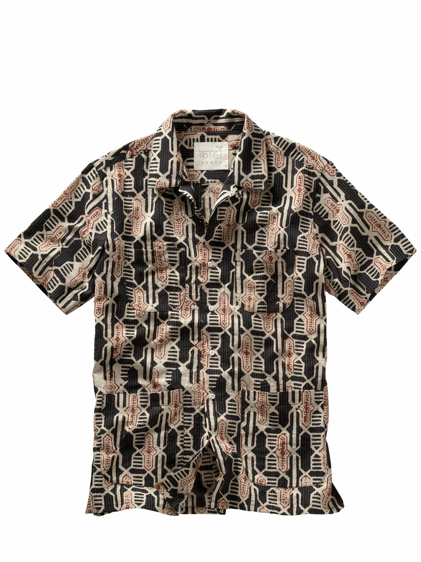 Nach allen Regeln der Kunst. Ajrakh ist eine traditionelle indische Handblock-Drucktechnik. Dabei werden zuvor in Teakholz geschnitzte Muster in Farbe getaucht und auf Baumwolle oder Seide gepresst. Kardo transferiert das alte Kunsthandwerk in die Neuzeit und druckt mit viel Können und Präzision diesen feinen Rapport auf ein sommerliches Hemd. Ein liebevoll gemachtes Sammlerstück mit eigener Geschichte, die man sehen und spüren kann.