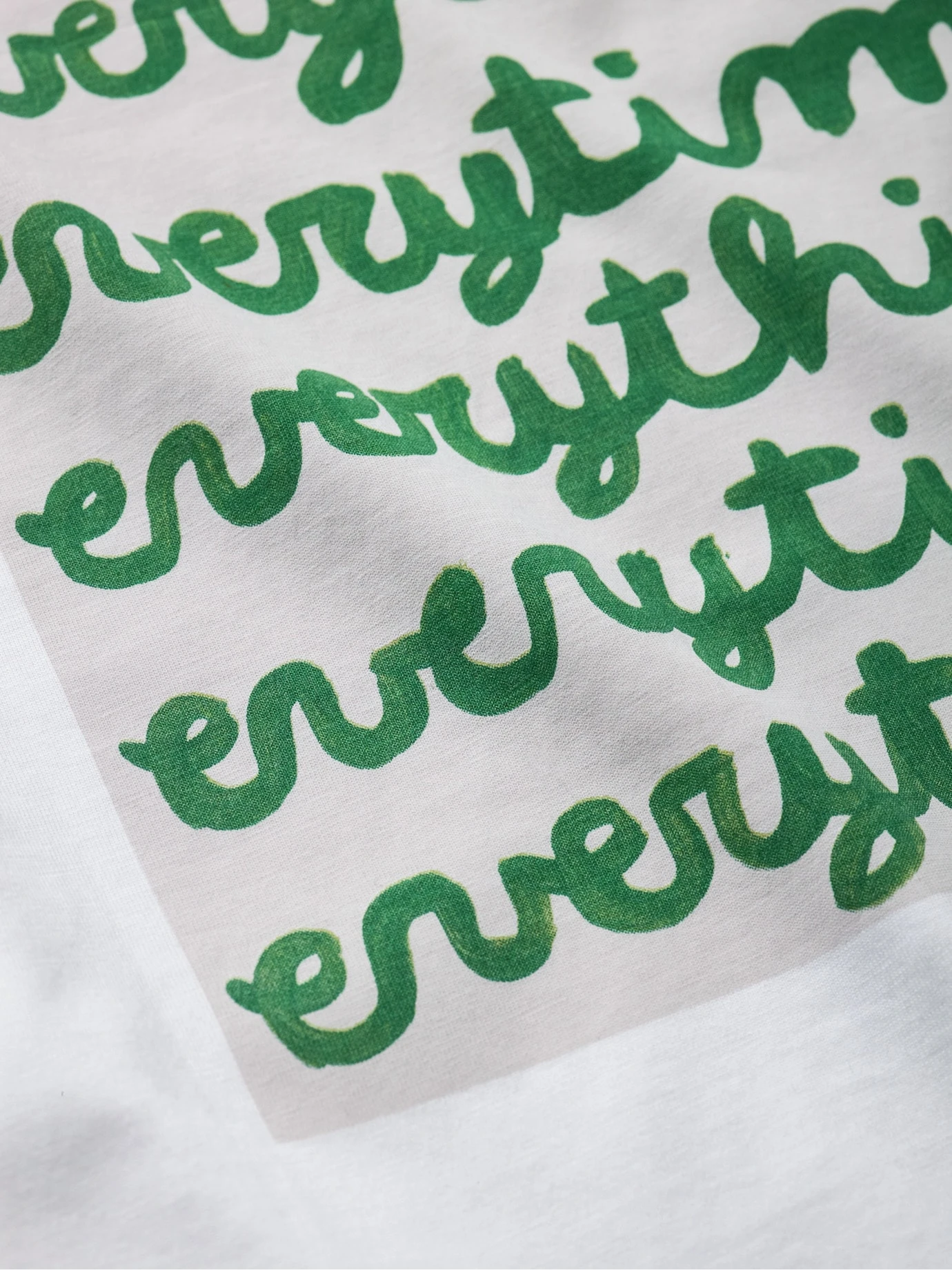 Im Kern getroffen. Immer und zu allem, ein weißes T-Shirt ist nach wie vor eines dieser Kleidungsstücke, das zeitlos gut, da simpel ist. In Schreibschrift verpasst noyoco diese Botschaft direkt dem Rücken des Shirts. Gedruckt auf Bio-Baumwolle, der Jersey stammt aus Portugal und wird auch vor Ort vernäht. Der Botschaft entsprechend kombinieren Sie das dazu, wonach Ihnen der Sinn steht. Am liebsten ohne Jacke, dann verleiht das Shirt die volle Wirkung.