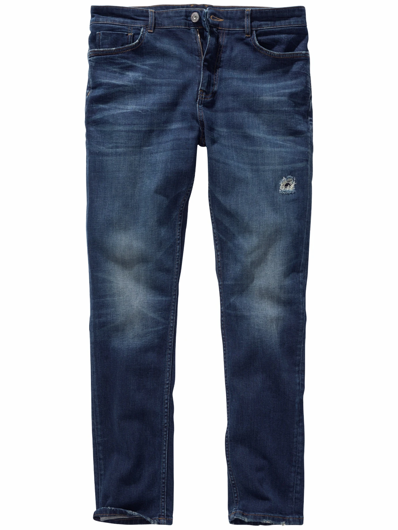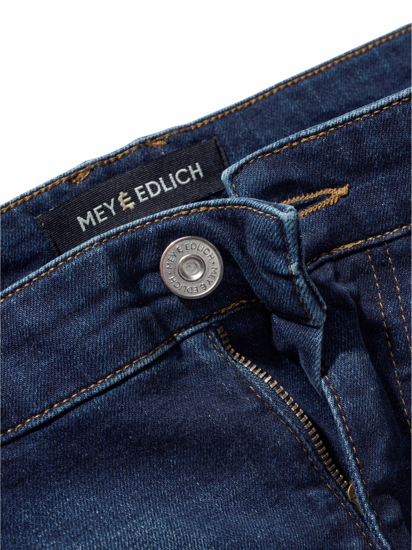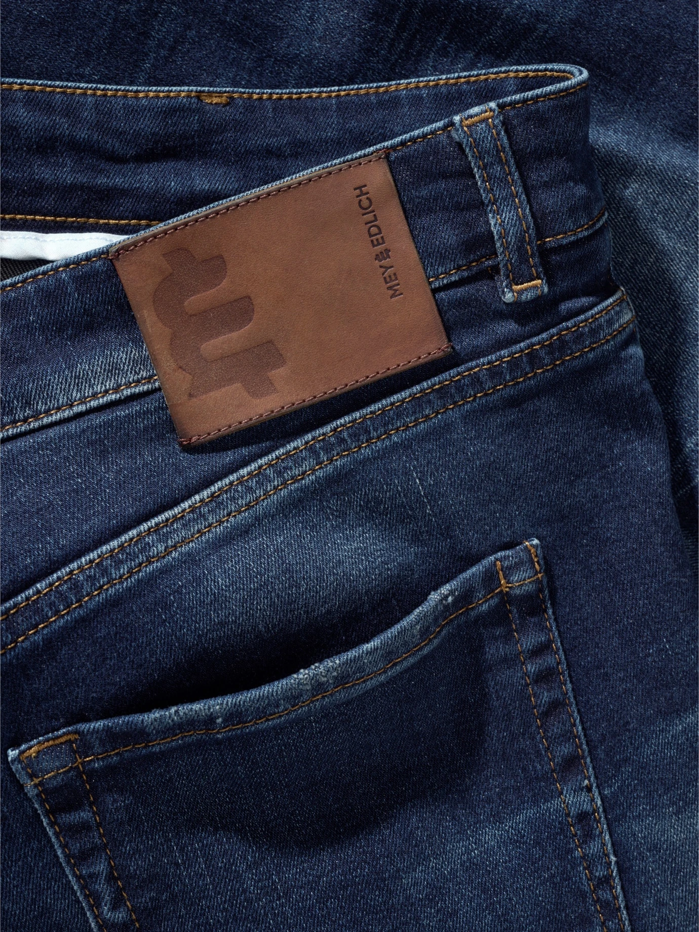 Stolz auf jede Schramme. Die Jeans präsentiert ihre Löcher und Risse wie in einem Bilderrahmen. Jede abgeschürfte Stelle ist rundum vernäht (und sorgfältig hinterlegt). Heftige Sitzbuffies und die starke Waschung am Knie machen den gut abgehangenen Gesamteindruck perfekt. Der etwas festere 13 Unzen Denim ist hart im Nehmen, der Schuss Elasthan sorgt dafür, dass die Jeans schmal anliegt, ohne zu kneifen. Rockt jedes Outfit.