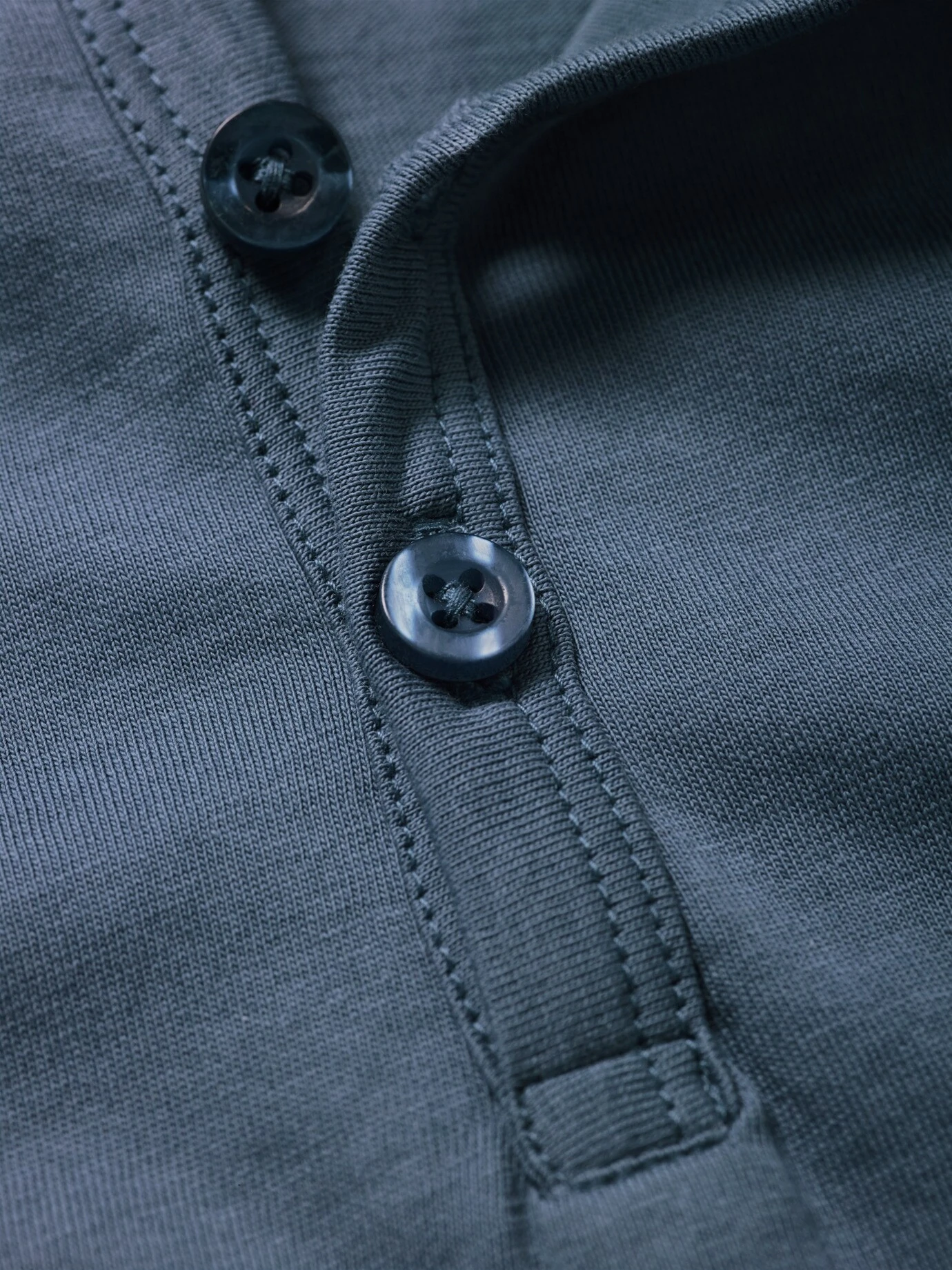 Hierin steckt einer, der eher schwitzt als friert. Noch immer haftet dem Henley die Aura des ausdauernden Mannes an. Typisch sind der gerade Schnitt, damit die Ruderer der Regatta im englischen Henley-on-Thames beim Fassen des Ruders nirgends hängenbleiben, sowie die halbe Knopfleiste und der angenehme Rundhals, sodass sich das Shirt schnell überziehen lässt.