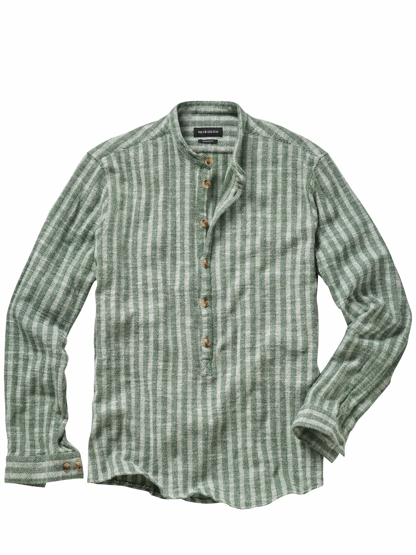 Verarbeitung: Stehkragen, längere Knopfleiste. Einfache Manschetten. Regular Fit.