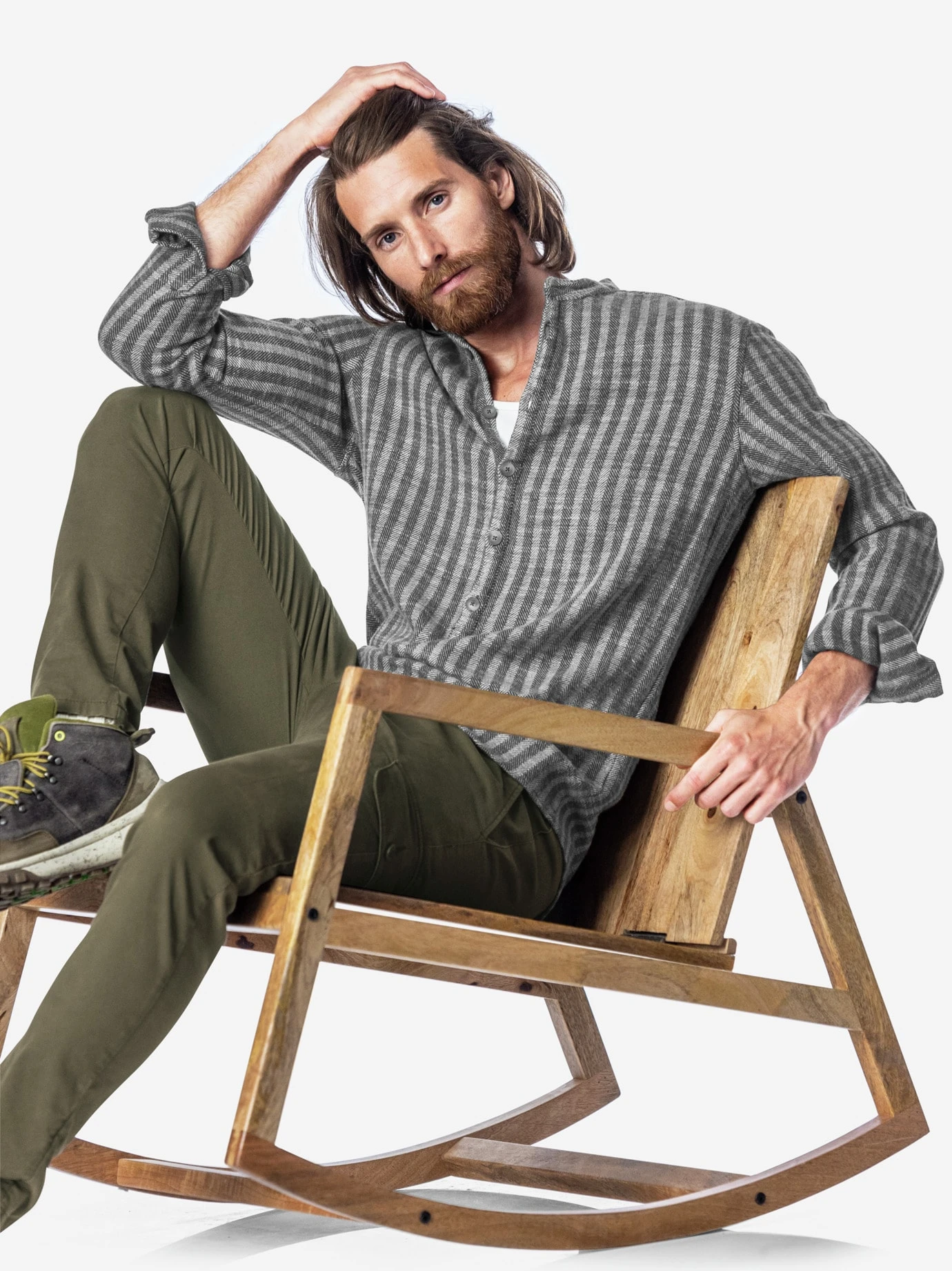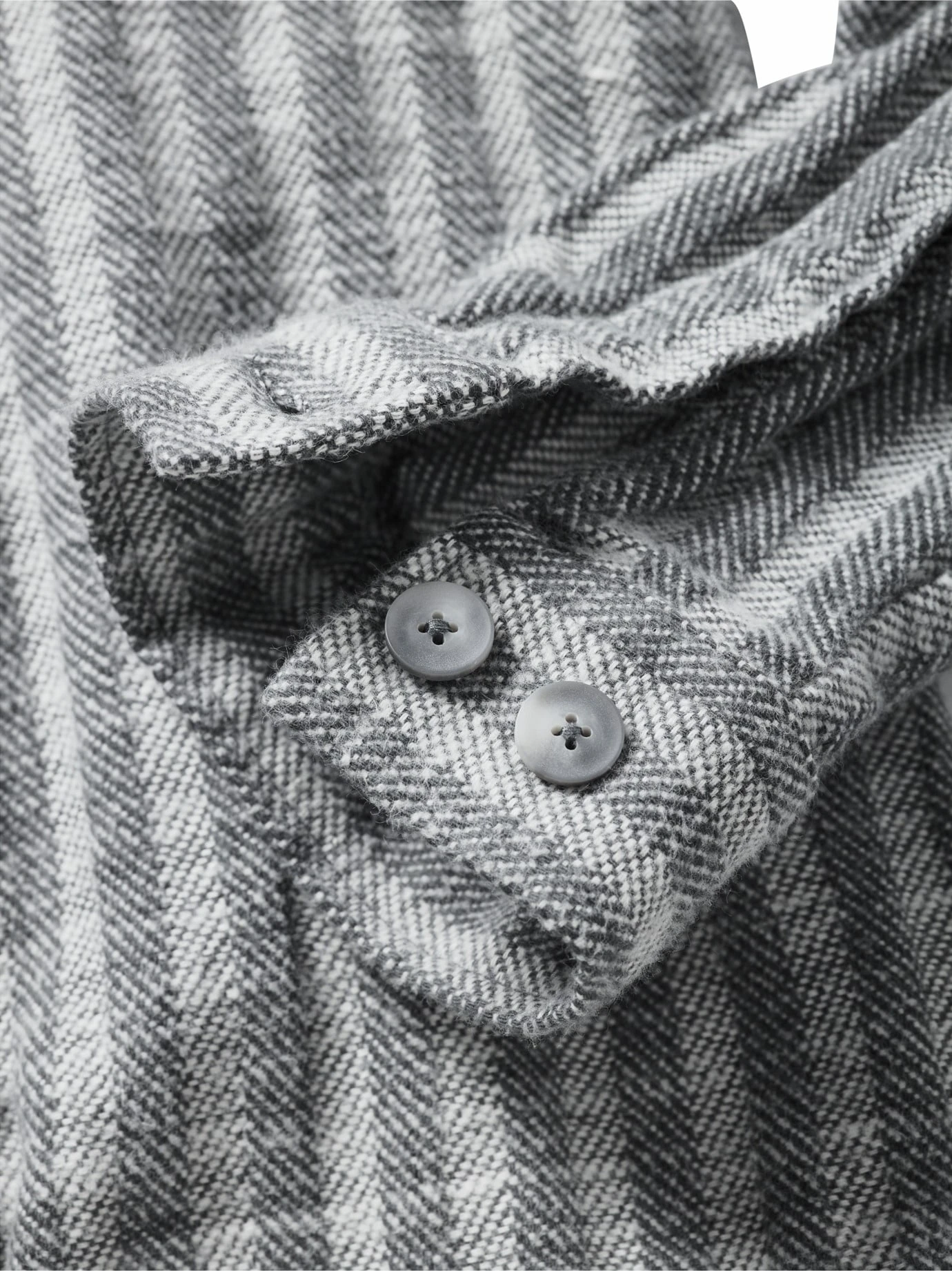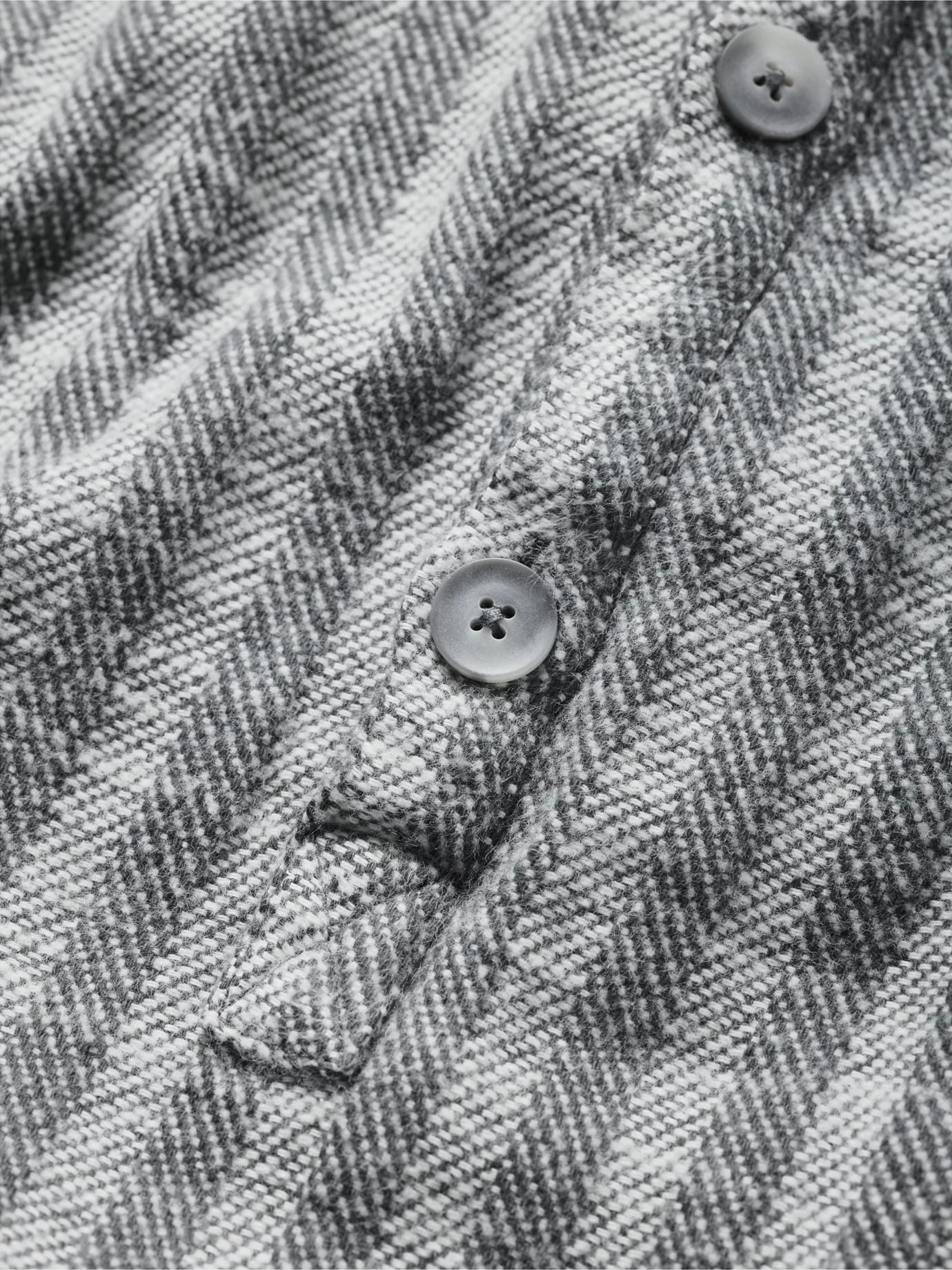 Die Struktur modelliert seinen Charakter. In Anlehnung an Männer, die Gestaltungsspielraum benötigen, ist dieses Hemd entstanden. Dafür trägt es genau die richtige Weite und einen entspannten Schnitt, in dem es sich gut werkeln lässt. Zwei aufwendig gefärbte Garne werden dafür miteinander verwoben und verleihen damit dem Stoff Charakter. Der ist leicht angeraut, auf der Haut fühlt sich das Hemd beinahe an wie Flanell, der Baumwoll-Herringbone ist aber deutlich weicher und lässt Sie nicht überhitzen.
