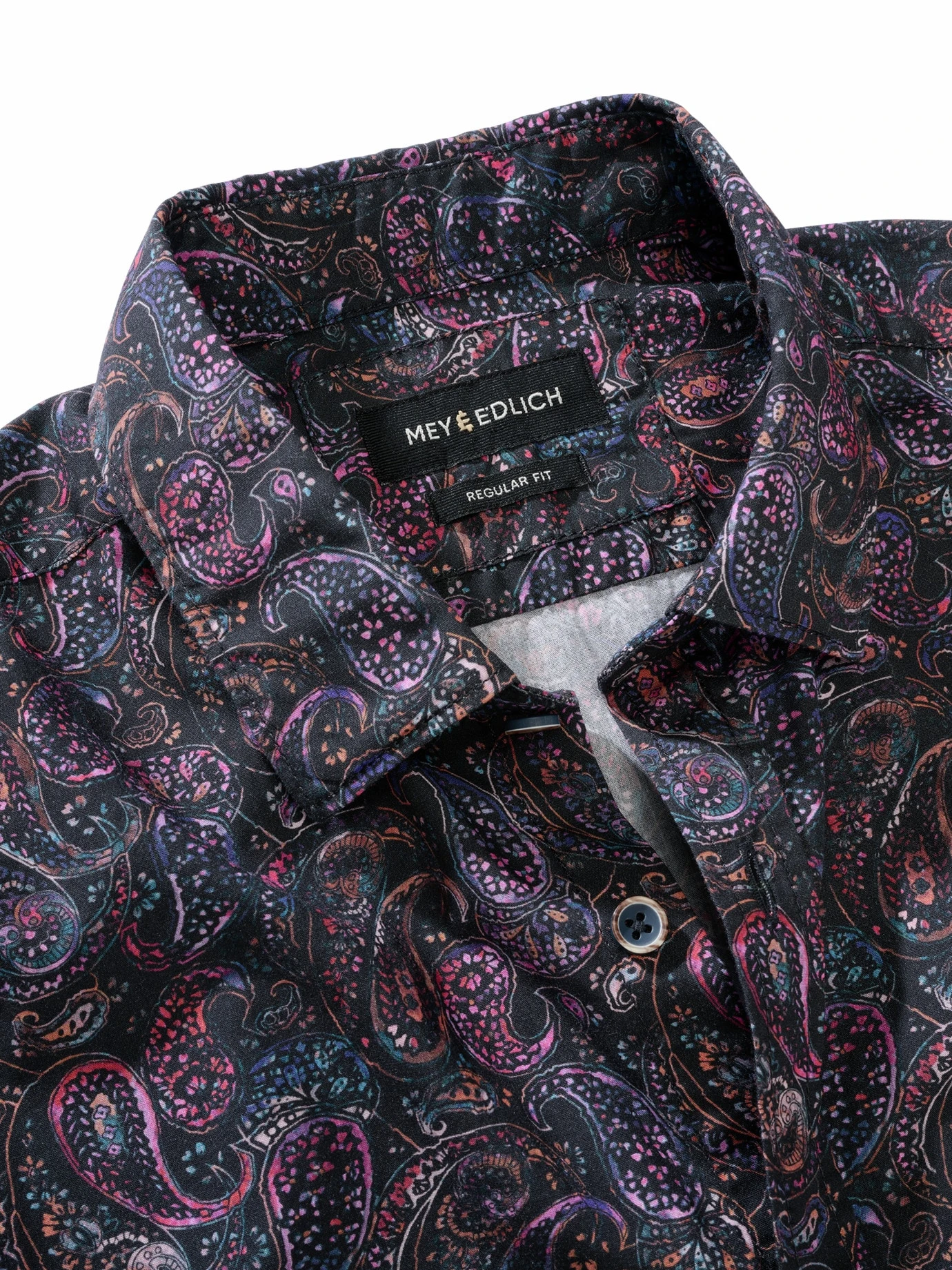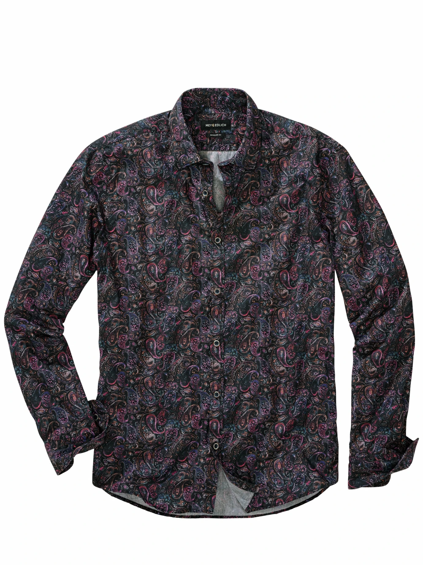 Ornamentale Kunst. Die filigranen Paisleys auf dunklem Grund wirken wie ein rares Mitbringsel einer Fernreise. Bei diesem Design gehört das Geheimnisvolle dazu bzw. macht das Hemd sogar aus, da Sie damit auf jeder Party die richtige Präsenz ausstrahlen. Ein Potpourri erlesener Farben auf feinem Baumwoll-Popeline – in knallbunt wäre die Wirkung längst nicht so edel. Highlight zur aufgebügelten Anzughose (am besten, wenn diese schmal geschnitten ist und leicht glänzt). Meist getragen, klar, zur Jeans.