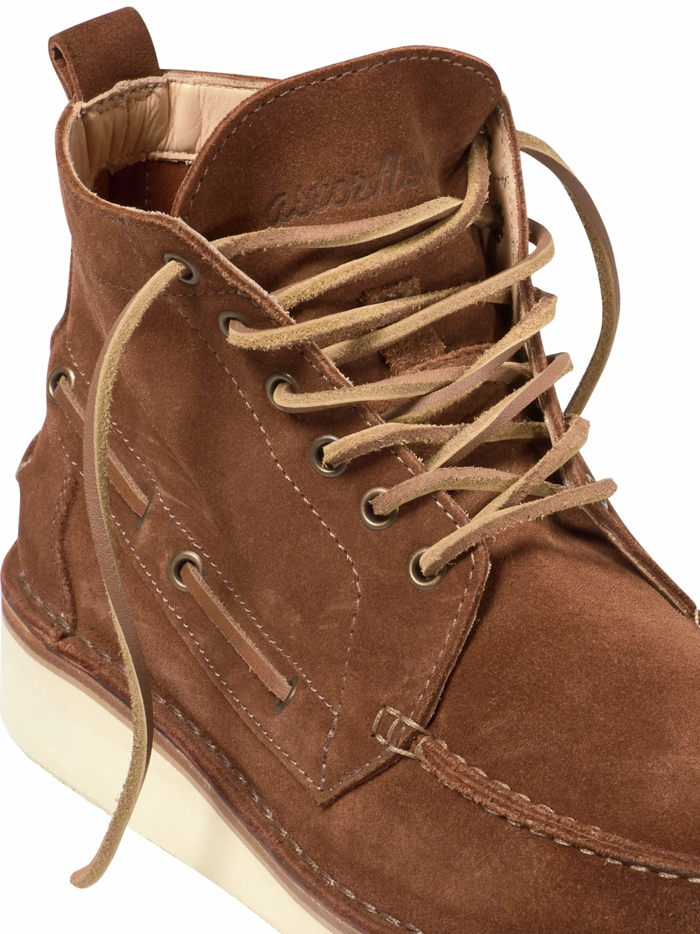 Handgefertigt in längst vergessener Schuhmachermanier. astorflex zählt zu einer der letzten familiengeführten Werkstätten, die ihre Schuhe in Italien von Hand fertigen. Kennzeichen sind ihre äußeren Nähte an der Sohle. Dadurch ist der Schuh wasserfest. Toskanisches Kalbleder wird stundenlang in Eichenrindenwasser eingeweicht, bis es für ein exzellentes Fußklima sorgt. Passt sich mit dem Tragen Ihrem Fuß exakt an.