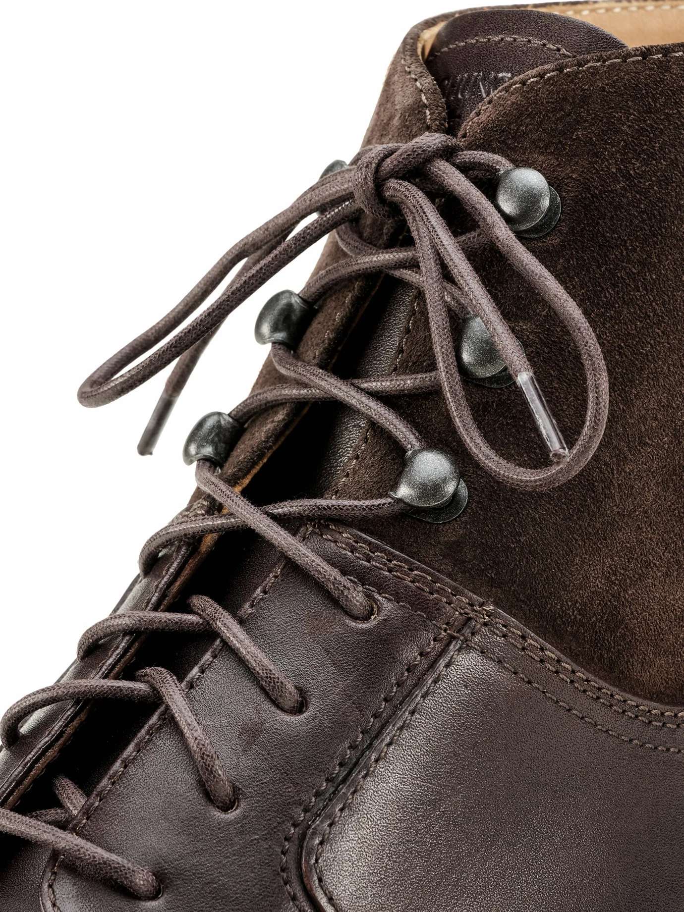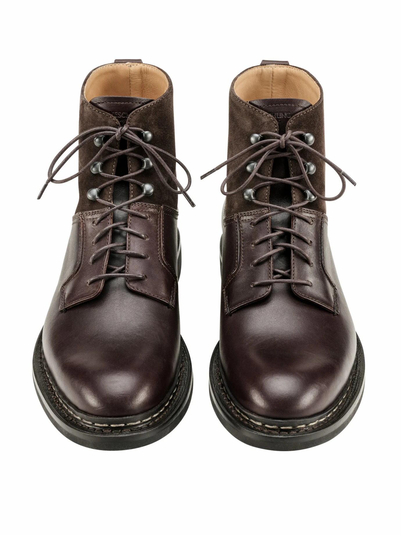 Verarbeitung: Halb Loch-, halb Bergsteigerschnürung. Rückseitige Anziehschlaufe.