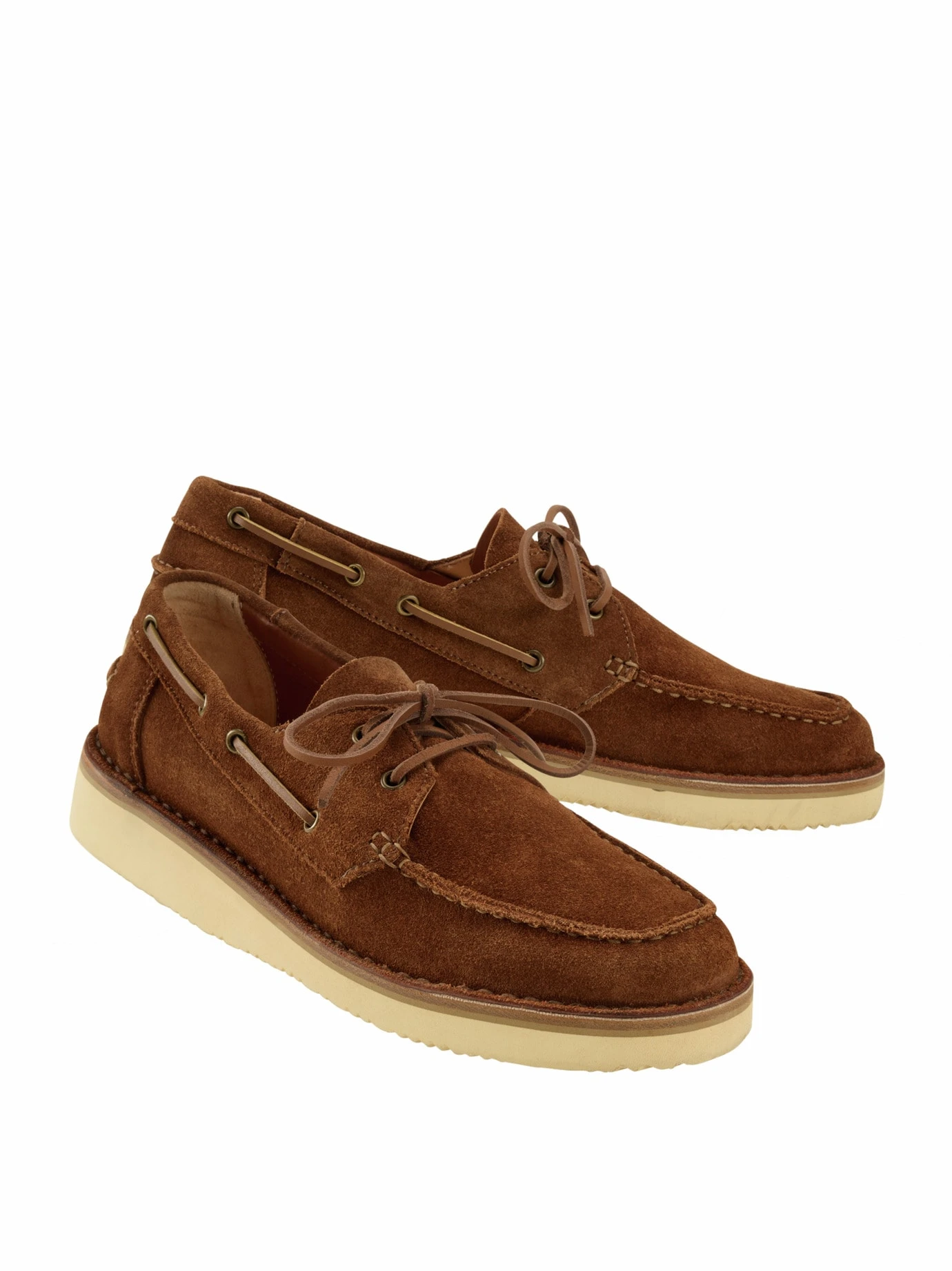 Pantoffel-bequemer Schuh. Entwickelt für das Tragen an Deck, wird der Bootsschuh samt freiheitsliebendem Lebensgefühl auch abseits der See kombiniert. Shorts und gekrempelte Hosenbeine passen dem Ursprung nach immer. Das Teakholzbraun passt zu Farbe und sogar zu Schwarz. Dank des Kalblederfutters auch barfuß. Designed und made in Italy, von italienischer Schuhmacherfamilie.