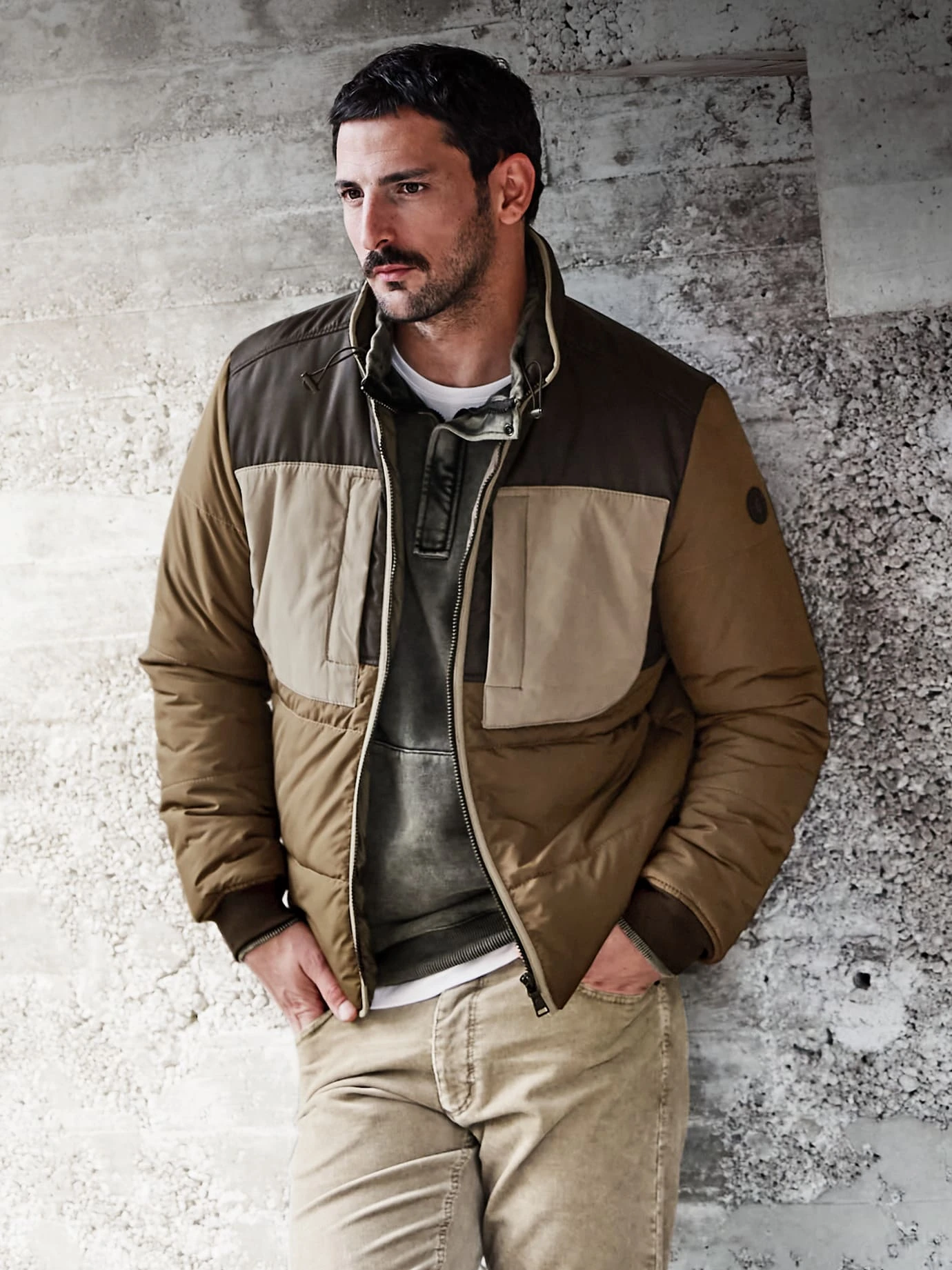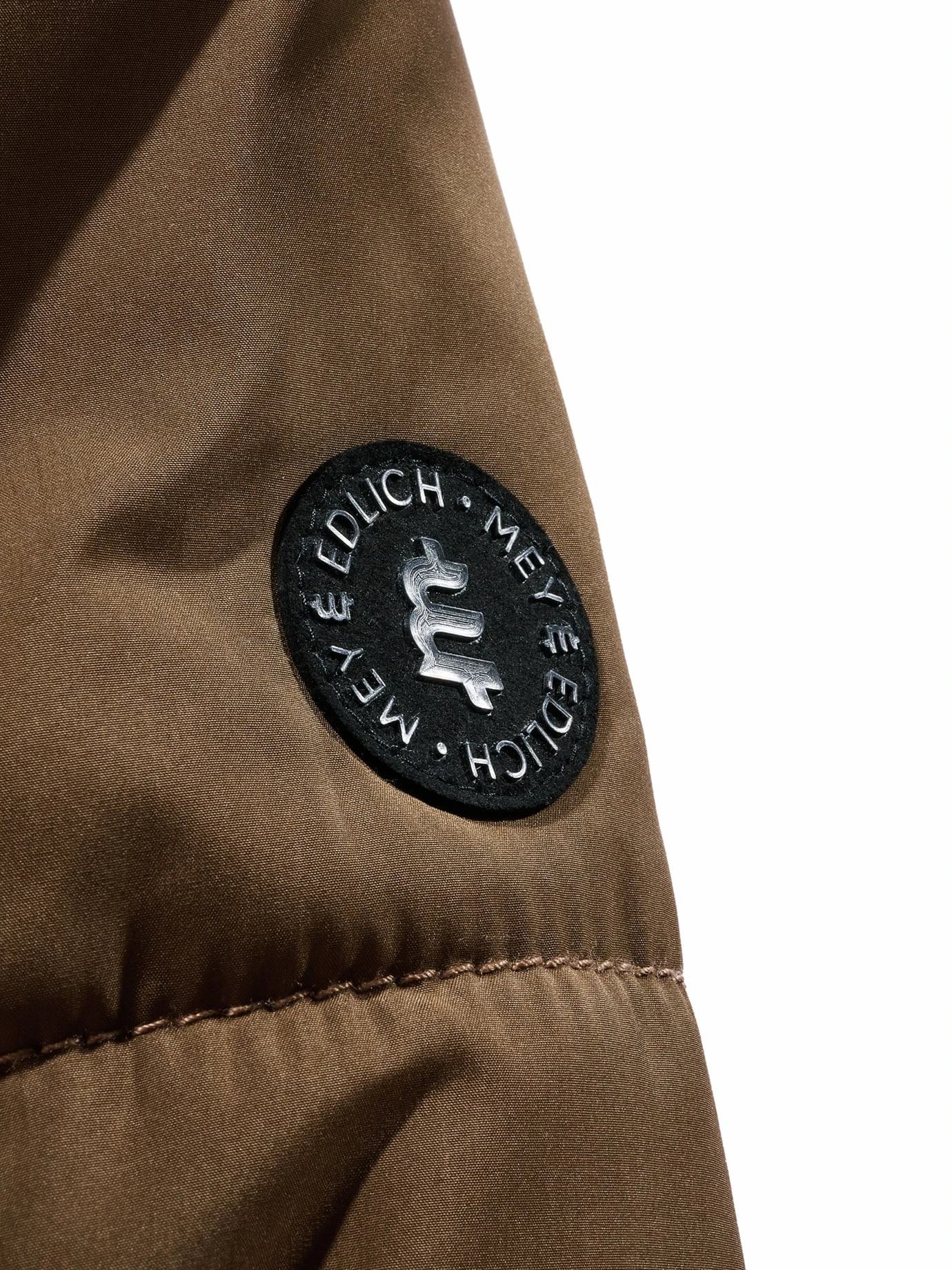 Wir haben sie nicht anders gewollt. Das kommt heraus, wenn ein Konfitisch voller Mode-Aficionados wochenlang über die ideale Jacke debattiert. Das Ergebnis (s.o) ließ die Gemüter abkühlen. Stolz kam auf. Der Konsens: sportlicher Schnitt, leicht, winddicht, breite Steppung, gute Wärmespeicherung. Das Eigene: die umnähte Kante, farblich abgesetzt, um die gesamte Außenlinie, vorn-unten weich abgerundet. Der Clou: unsere Hausfarben Taupe und Shark Grey, letztere in gepunkteter Carbon-Version (als Symbol für die Leichtigkeit), kombiniert mit kernigem Oliv. Geht doch!