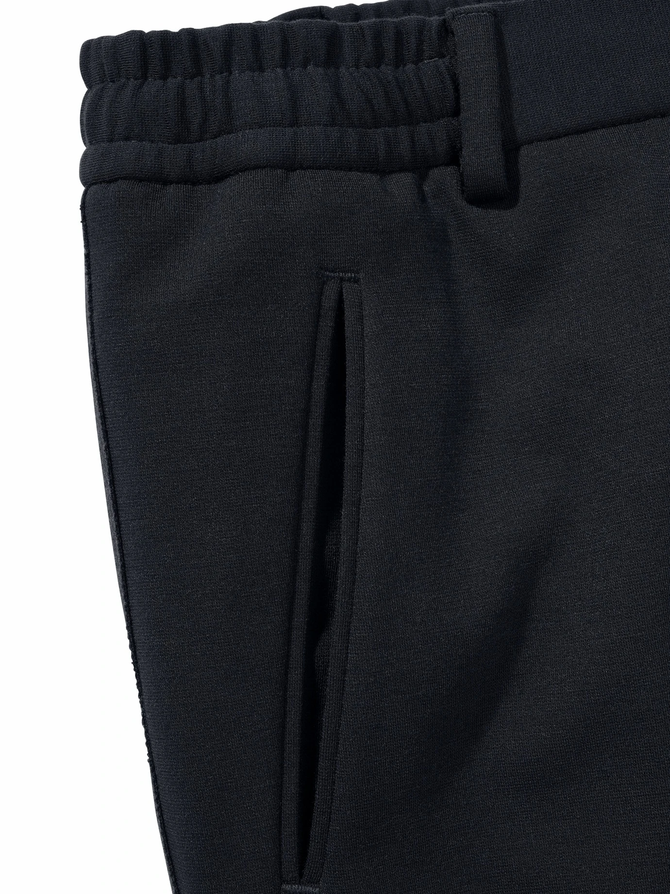 Was nach Anzughose aussieht, trägt sich in Wahrheit so bequem wie ein Jogger (aber das muss ja keiner wissen). Die ausgetüftelte Materialmischung stammt aus der Türkei. Sie ist gefordert elastisch, atmungsaktiv und bleibt nach fünfstündiger Bahn- oder Flugzeugreise knitterfrei und korrekt. Unter der Woche im Business, Sonntagabend mit dem neuesten Krimi auf der Couch. Entspannt mit Gummi- und Tunnelzug, für den seriösen Look kombinieren Sie einen teuren Ledergürtel (deshalb die Gürtelschlaufen).