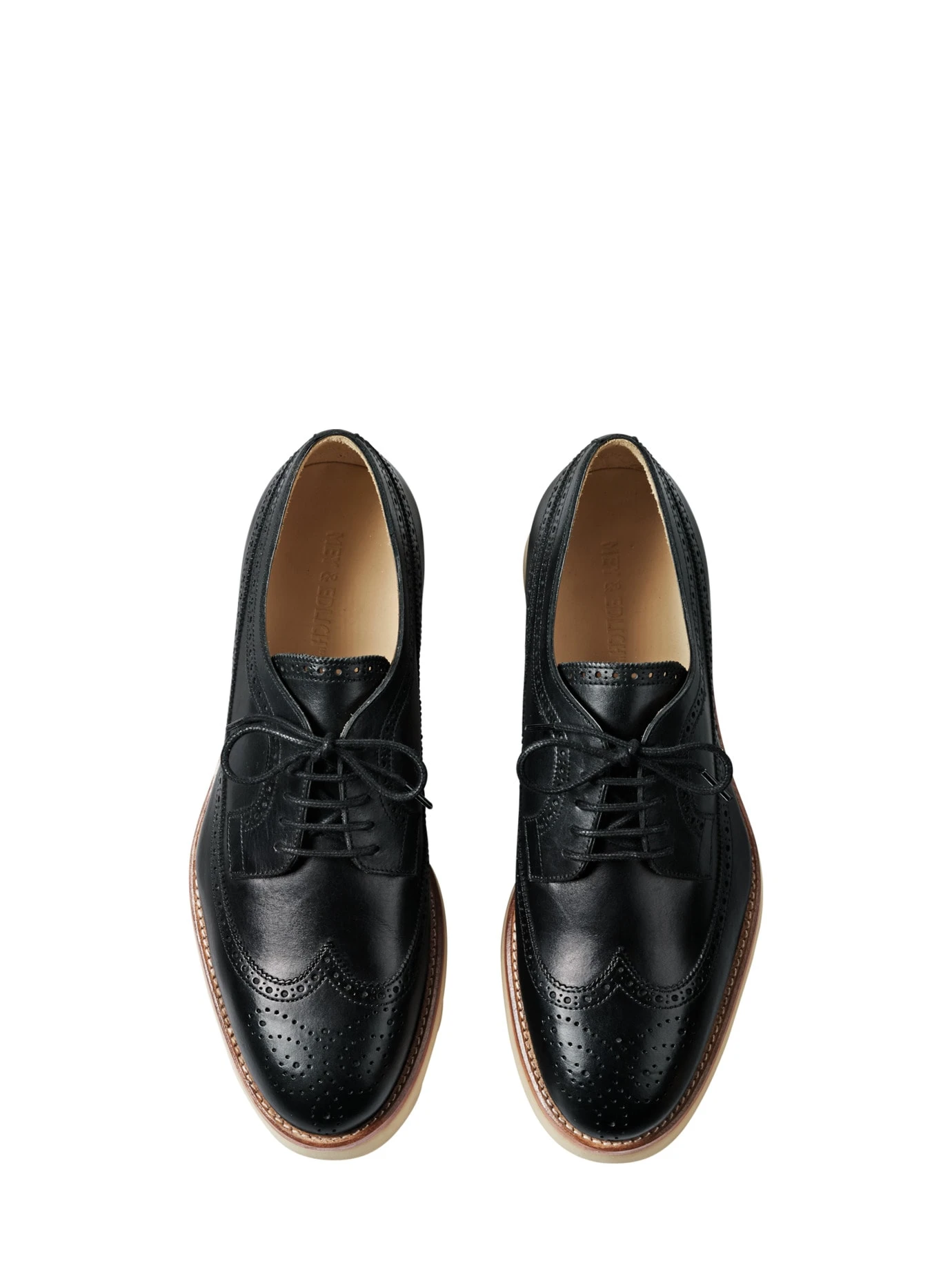 Schuhmachermeisterlich. Das feine Boxcalf-Leder stammt von der obersten, zugleich elastischsten und wertvollsten Schicht der Lederhaut junger Kälber und ist auch nach Jahren des Tragens immer noch schön. Mit stilvoller Budapesterlochung. Das Oberleder ist mit der Brandsohle vernäht, der angenähte Rahmen ist aus echtem Leder, was selten ist. Die leichte Sohle federt jeden Schritt ab, hält fast ewig und ist unempfindlich mergelfarben.