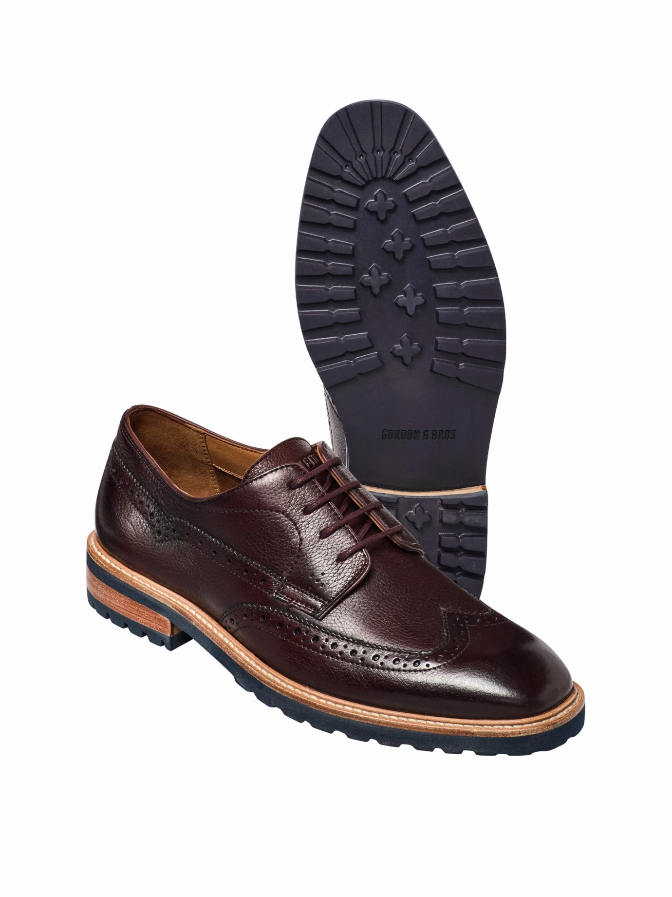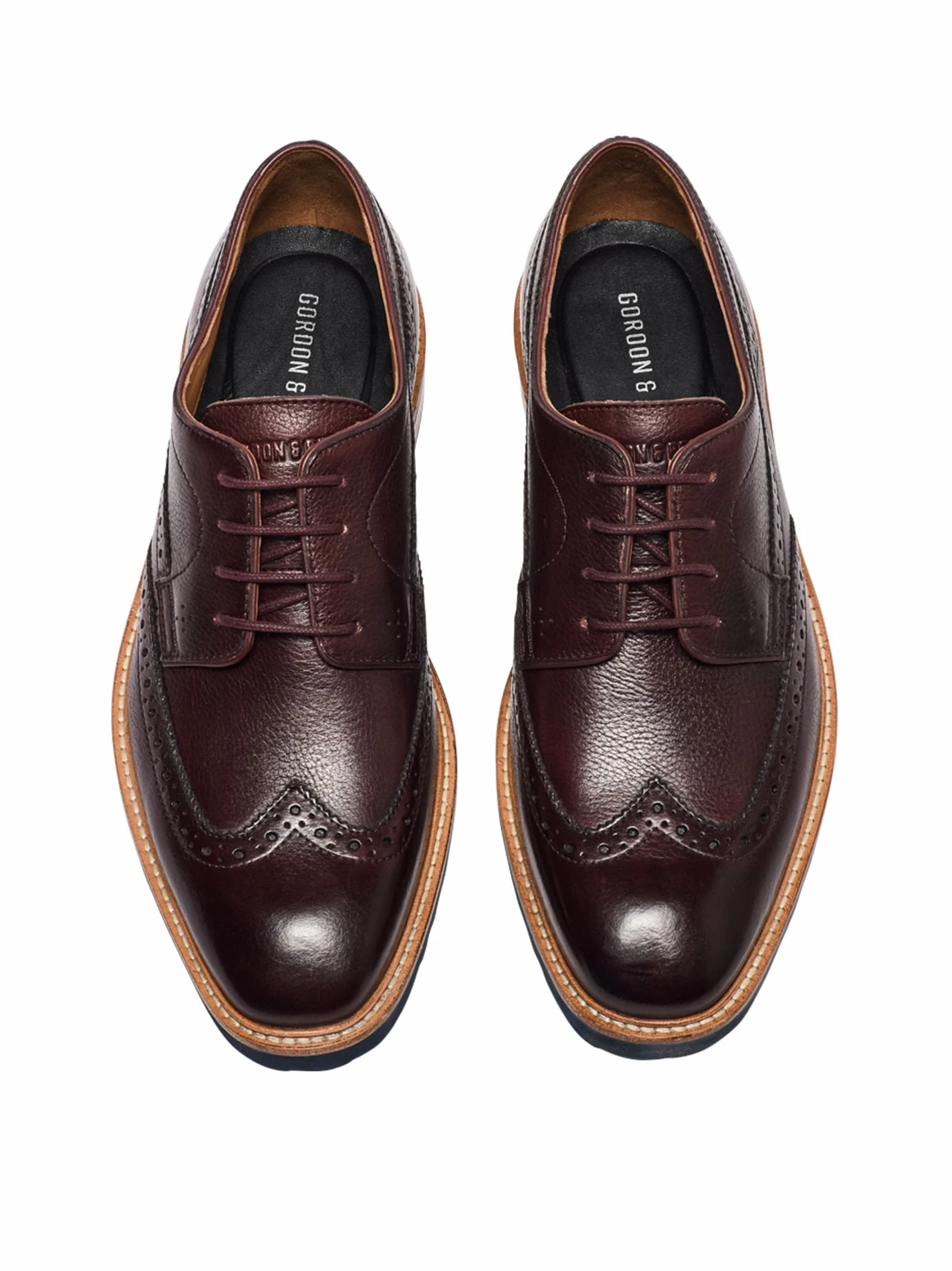 Neu gedacht. Der Schnürer des Neusser Schuhspezialisten Gordon & Bros bricht mit genau den Konventionen, die aus ihm einen klassischen Budapester mit typischem Lochmuster machen würden. Er mixt poliertes und genarbtes Rindleder, kontrastiert seinen satten Farbton mit einer abgedunkelten Spitze im Vintage-Look und stellt – last but not least – einem eleganten, leicht karreeförmigen Leisten eine sportliche Profilsohle gegenüber. Jedes noch so korrekte Business-Outfit wirkt mit ihm gleich eine Spur entspannter.