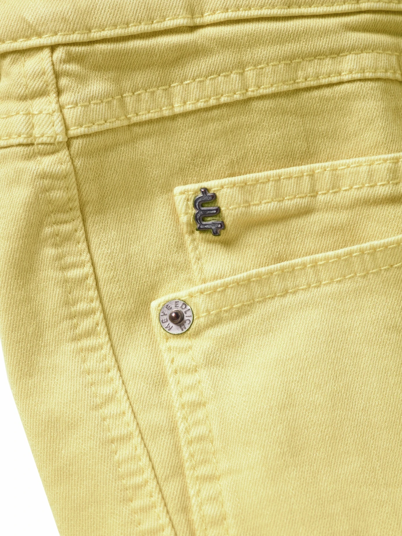 Fehlt nur noch die einsame Insel. Hätte die Robinson mal gehabt: bequem, verzeihend und leicht. Die Besonderheit liegt im sogenannten „Slub-in-fabric“, also im leicht unregelmäßigen Stoff, der durch seine Knötchen kerniger und auch nach langem Tragen frisch wirkt (ruhig im Urlaub einplanen). Liegt gut an, ist griffig und auch im Schneidersitz noch bequem. Endet eine Handbreit überm Knie. Entweder dann sportlich zu Shirt und Sneakern oder smart zu Hemd samt Slippern.