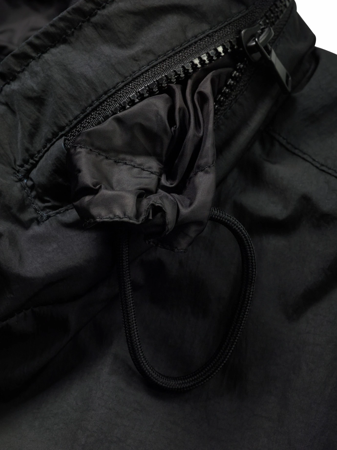 Verarbeitung: Halbfutter. Kapuze unterm Zipper im Kragen. Verstellbare Ärmel mit Sportmanschette. Markanter Reißverschluss. Aufnahmefähig mit zwei seitlichen Eingriffstaschen und einer Ärmeltasche, alle mit Zipper. Drei verschließbare Innentaschen, eine mit Klett, eine mit Zipper, eine mit Drücker fürs Handy. Regular Fit.