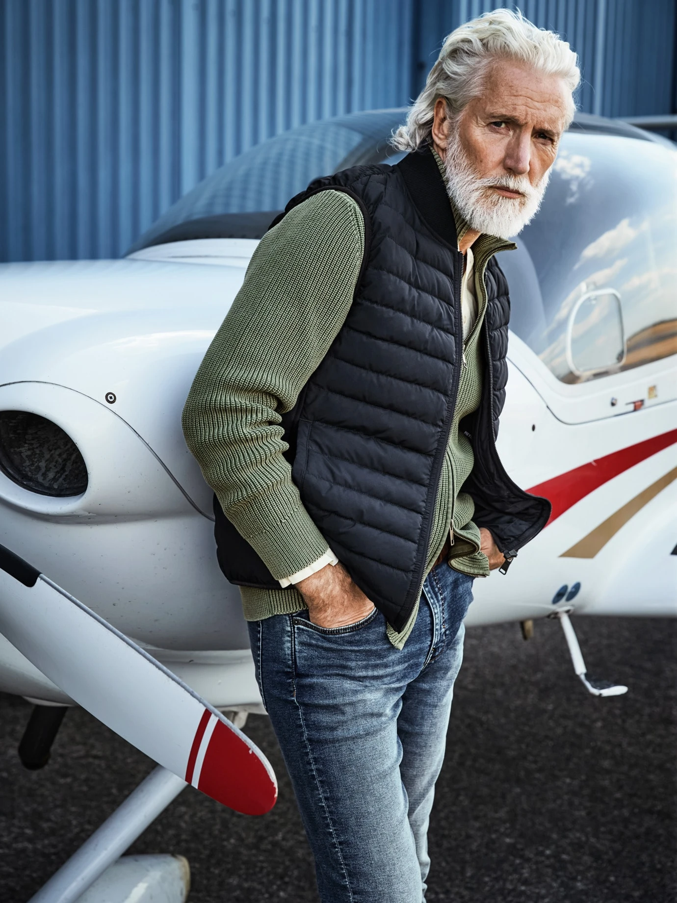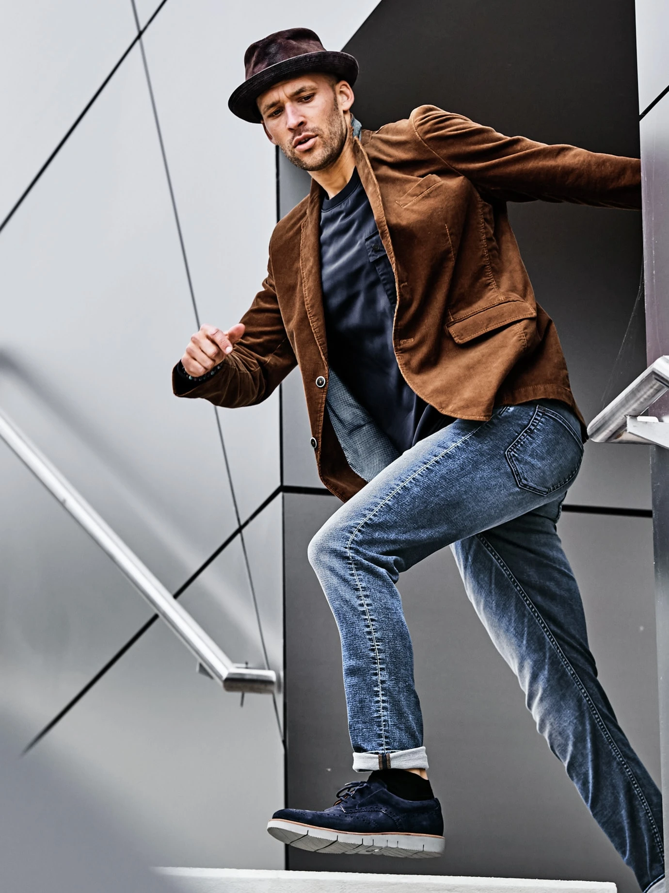 Athletisch bis in die letzte Faser. Eine gute Portion Hightech-Fasern macht die Jeans hyperelastisch. Sie ist bequem wie eine Jogginghose, geschnitten wie eine klassische Five Pocket. Gut fürs grüne Gewissen: Die Jeans ist enzymgewaschen, verbraucht bei der Herstellung ergo weniger Wasser. Im Business mit Hemd samt Weste, zum Kickerturnier mit Longsleeve und Sneakern.