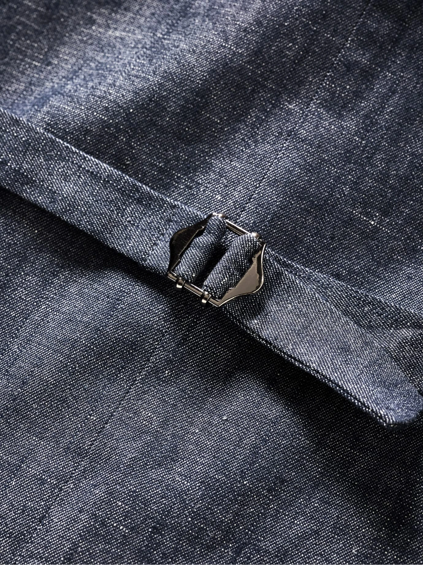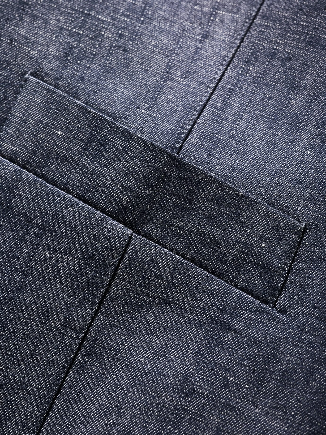 Konkurrenz zur Jeansjacke. Angezogen kommt sie abgeklärt daher, stilistisch ist diese Weste aber um Längen erhabener. Dafür ist der typisch indigoblaue Denim verantwortlich. Und das grenzenlose Kombinationsspektrum – denn outfitmäßig und farblich passt eben alles: ob unterm Leinensakko mit Stehkragenhemd oder dank stoffgleichem Rücken solo zum Longshirt. Jeans wählen Sie eine Spur heller oder dunkler. Die Weste trägt sich leicht, ihre Mischung aus Baumwolle, knitterarmem Polyester, luftigem Leinen, einem Hauch Viskose und Elasthan macht sie sommerlich.