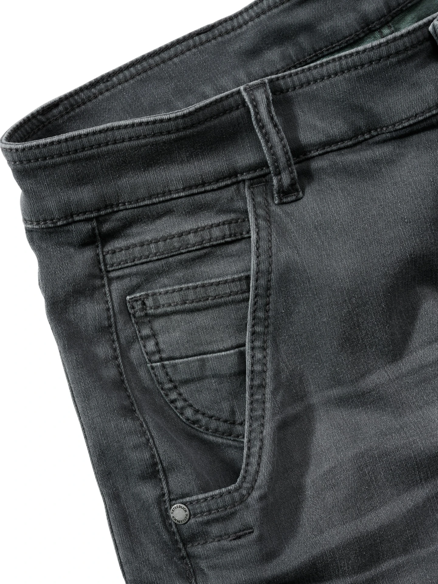 Verarbeitung: Moderner Schnitt: oben lässig, nach unten hin schmal (daher tun auch die 2 Prozent Elasthan ganz gut). Regular Tapered (Fußweite: 34 cm).