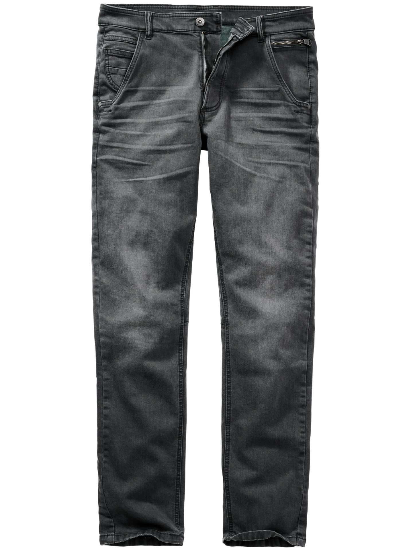 Diese Jeans ist anders. Sie ist nicht blau. Und sie ist für eine Jeans erstaunlich leicht: Ihr Denim wiegt gerade einmal 11,29 Unzen. Sie hat viele kleine Details, wie die französischen Taschen (kennen Sie sonst von Ihrer Chino), eine sechste Tasche (Münztasche mit Reißverschluss), doppelte Seitennähte und Nähte in der Kniekehle (die sind von Bikerhosen abgeschaut und geben der Jeans ein dezent rebellisches Image). Gelebte Waschung und authentisch eingetragene Sitzfalten.
