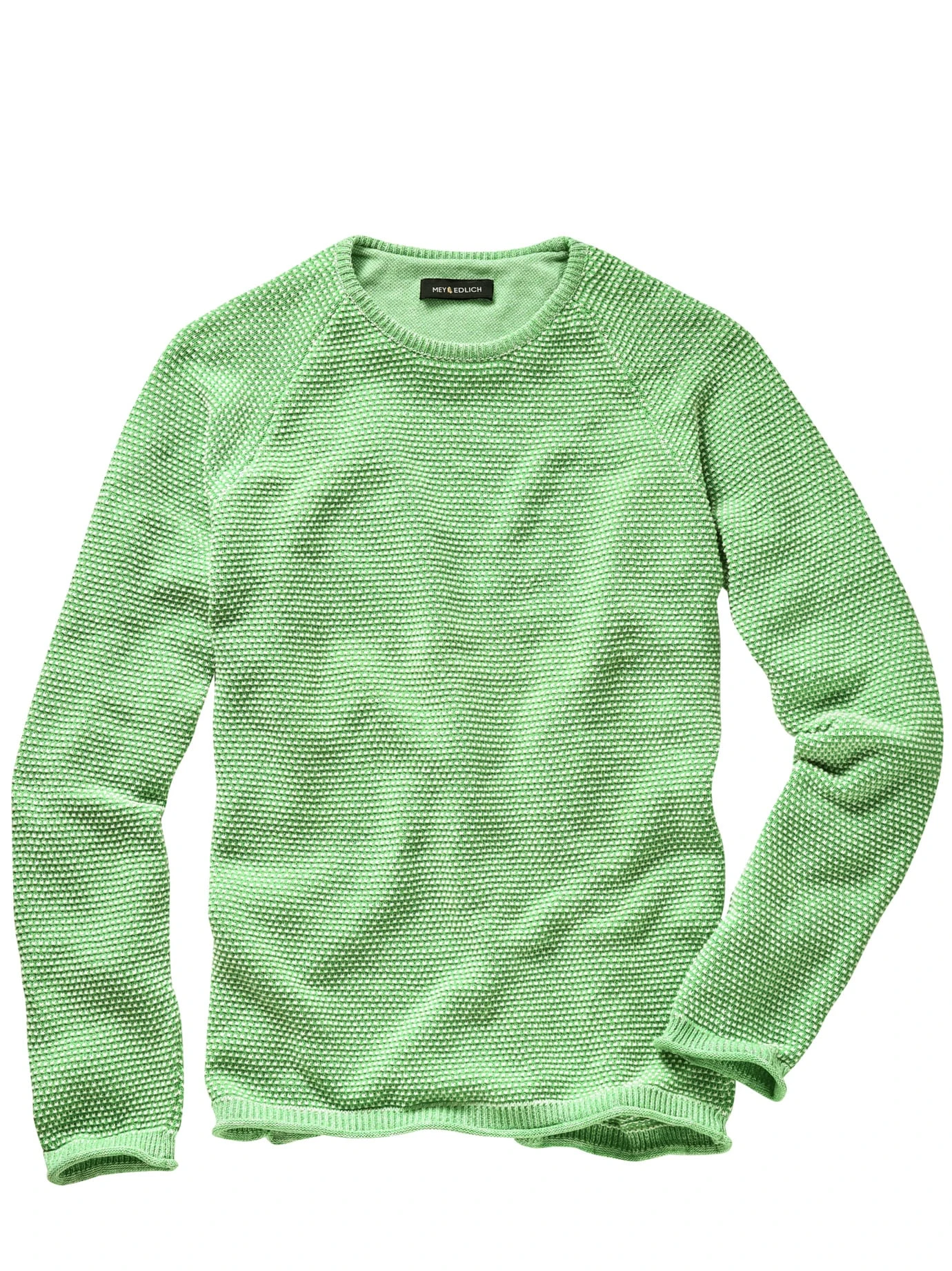 Aus der Erfahrung gelernt. Gestrickt ist er so, wie Generationen es schätzen, im Perlmusterstrick – ziemlich akkurat, ziemlich gleichmäßig und optisch edler als herkömmlicher Rechts-Links-Strick. Dass er sich so angenehm trägt und quasi natürlich nachgibt, verdankt der Pullover seiner Technik. Liegt an den fühlbaren Perlen des Stricks – sie ergeben kleine Luftpolster, die ihn ideal bis in den Spätherbst machen, für den Wärmeausgleich sorgt das richtige Verhältnis zwischen Baumwolle und Leinen.