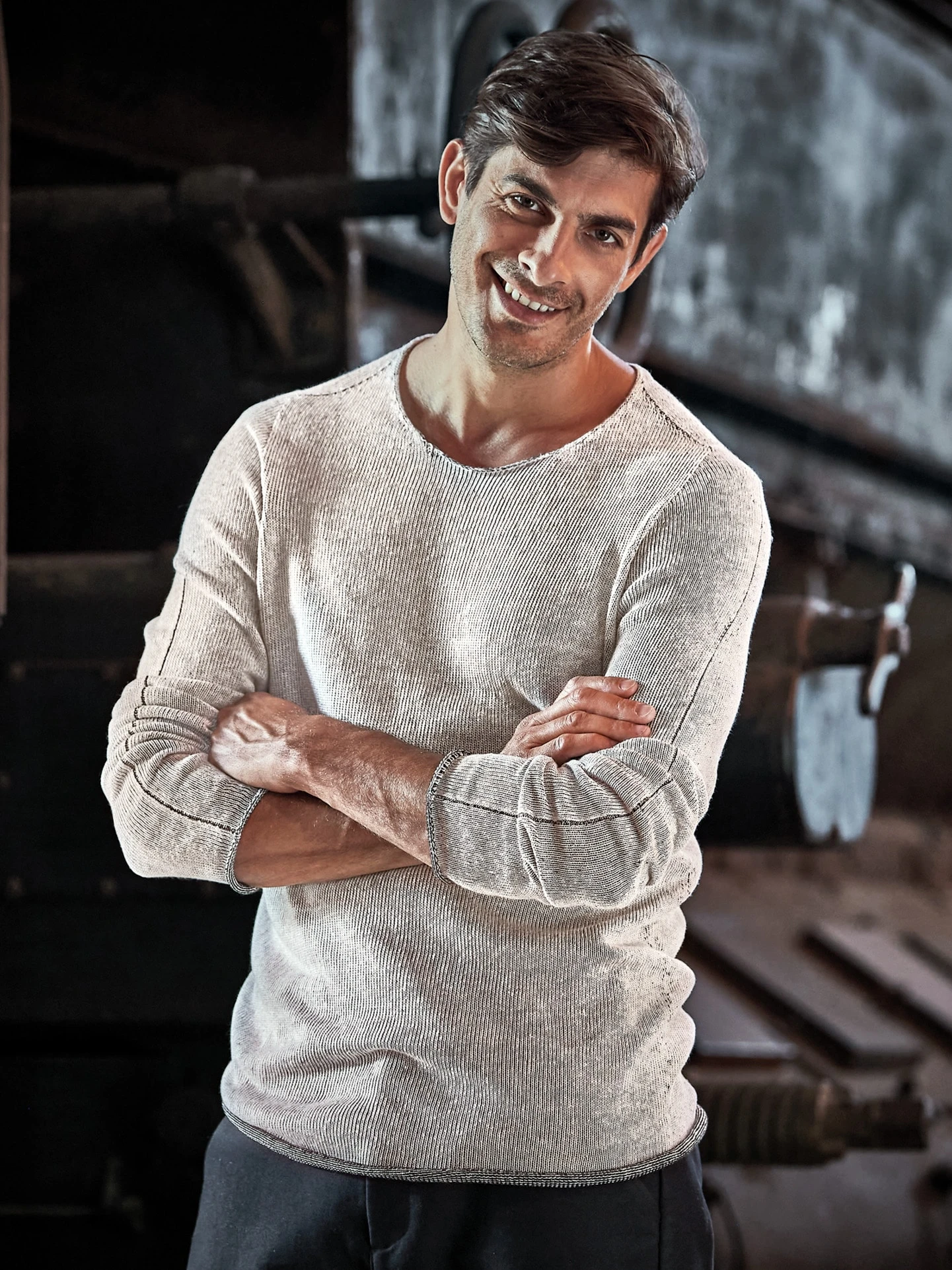 Verarbeitung: Der Effekt, der beim Stricken entsteht, ist wieder einmal ein Meisterwerk aus der Hand hannes roethers: sichtbar mit jeder Bewegung, an den sauberen Nähten und den rollenden Bündchen an Saum und Ärmeln. Regular Fit.