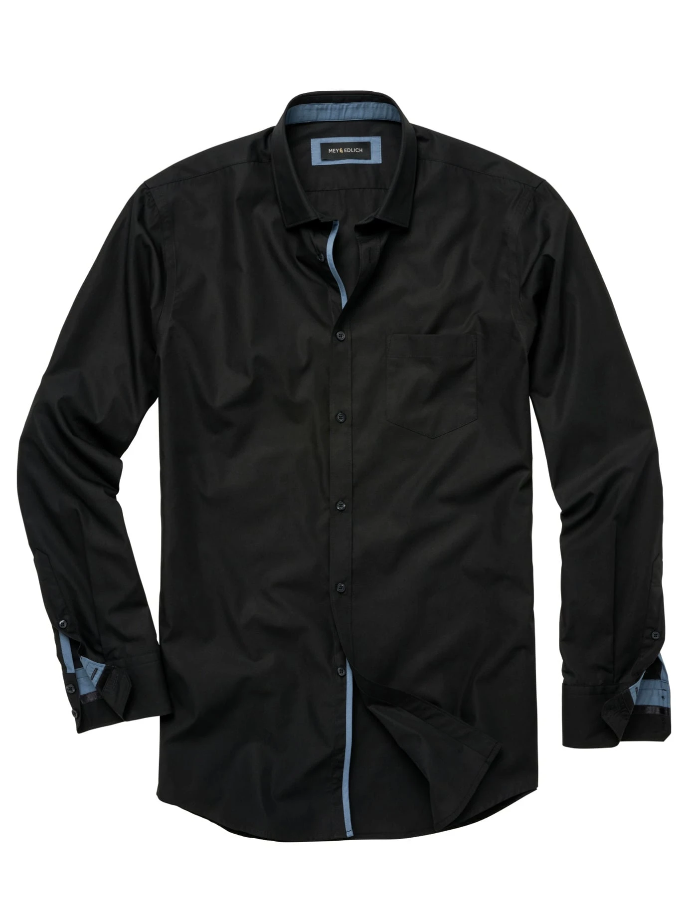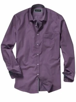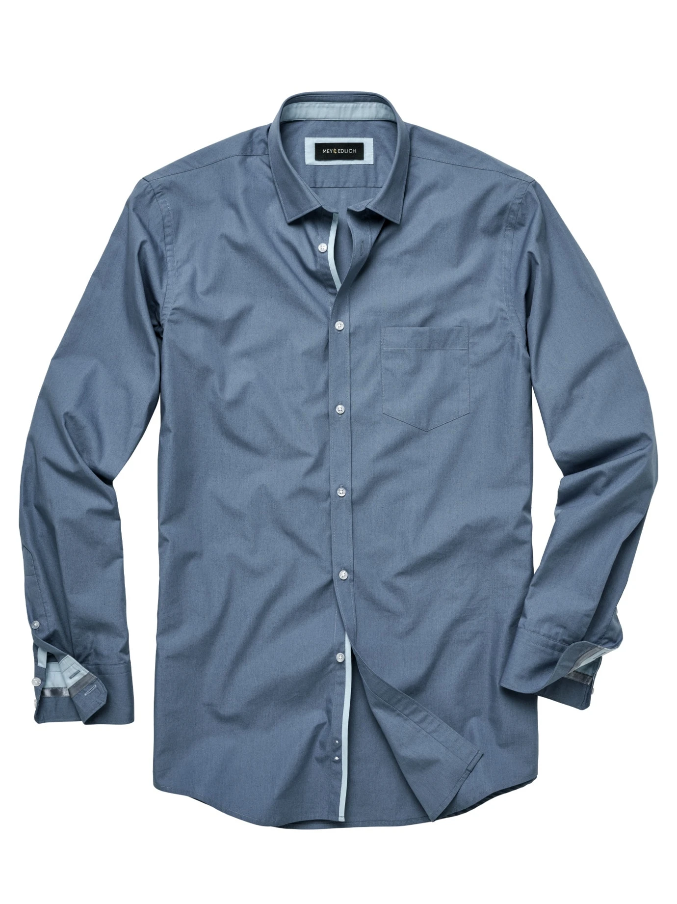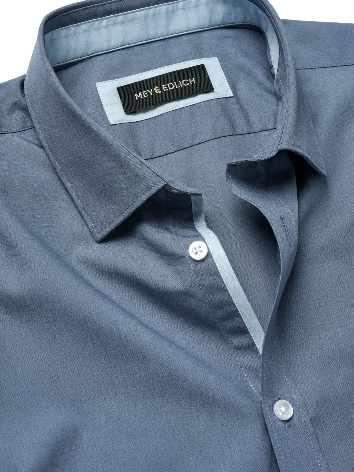 Kopf frei für andere Dinge. Albert Einstein hat viele Probleme gelöst. Auch das mit dem Kleiderschrank. Um niemals darüber nachdenken zu müssen, trug er Qualität und davon immer die gleiche. Dieses Businesshemd hätte ihm gefallen. Es ist aus feinem Garn dicht verwebt, leicht, blickdicht und sehr soft, was auch das Bügeleisen laufen lässt (Schubser genügt). Der Look ist klassisch clean mit einem edlen Schimmer. Aufgeknöpft kommen dezente, tonal schön abgestimmte Details zum Vorschein.