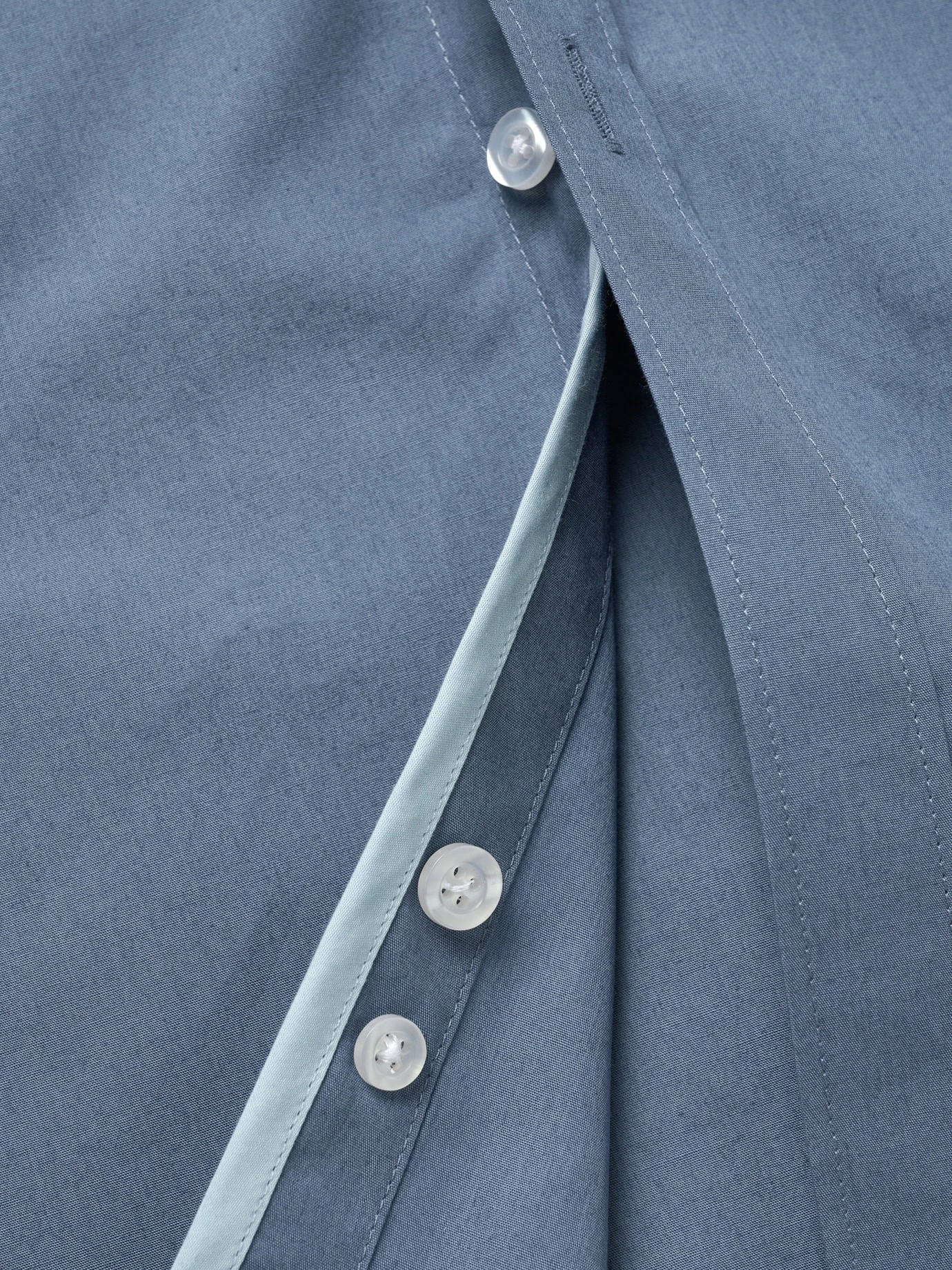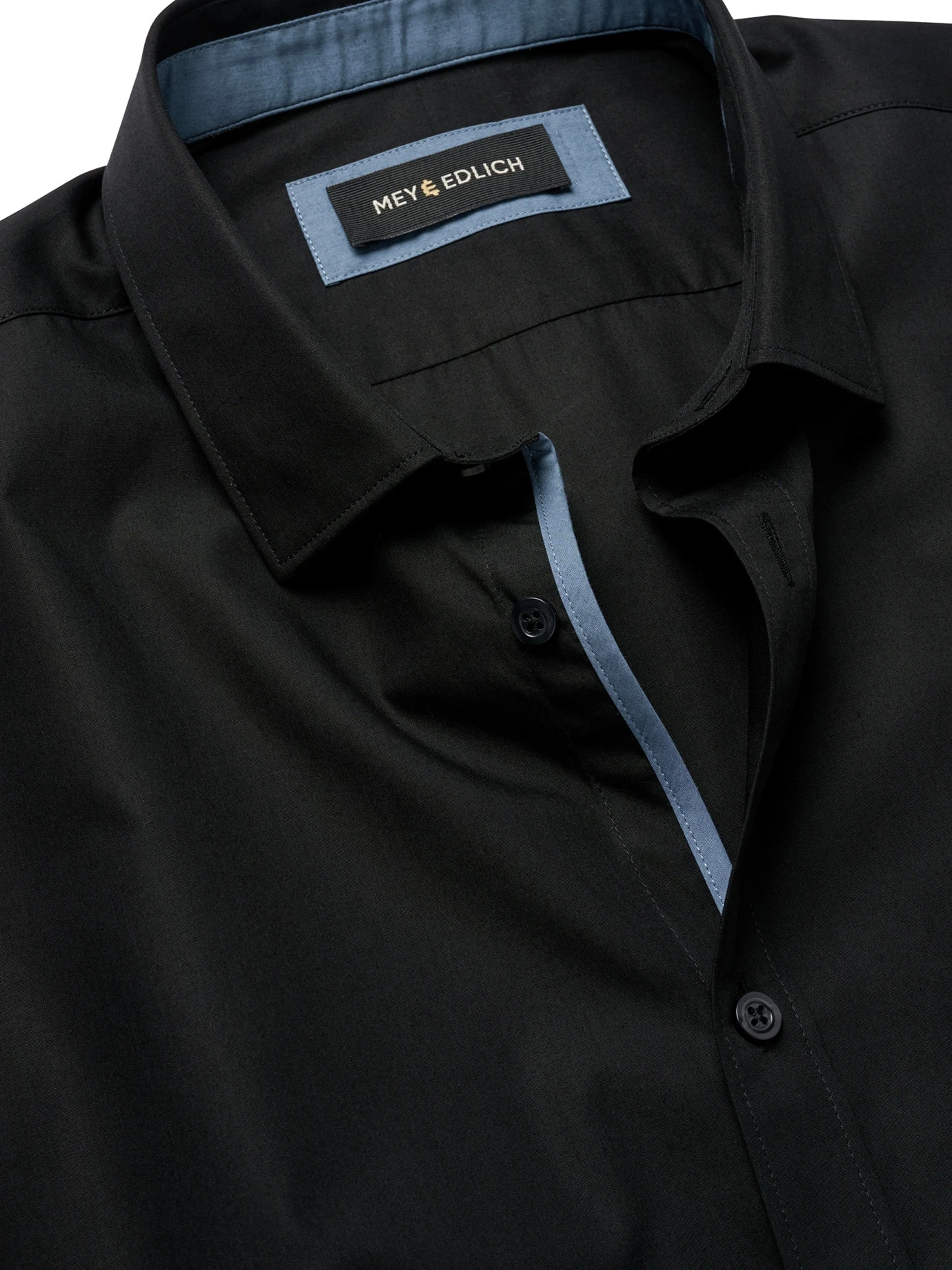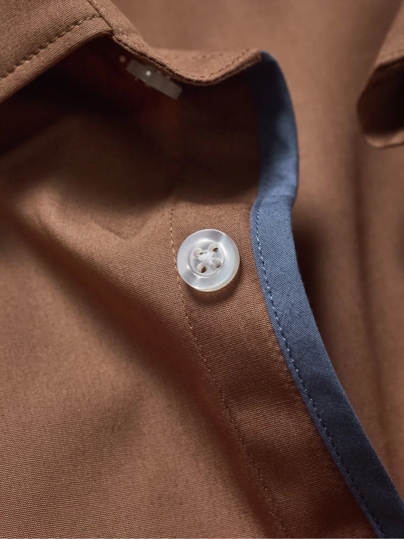Kopf frei für andere Dinge. Albert Einstein hat viele Probleme gelöst. Auch das mit dem Kleiderschrank. Um niemals darüber nachdenken zu müssen, trug er Qualität und davon immer die gleiche. Dieses Businesshemd hätte ihm gefallen. Es ist aus feinem Garn dicht verwebt, leicht, blickdicht und sehr soft, was auch das Bügeleisen laufen lässt (Schubser genügt). Der Look ist klassisch clean mit einem edlen Schimmer. Aufgeknöpft kommen dezente, tonal schön abgestimmte Details zum Vorschein.