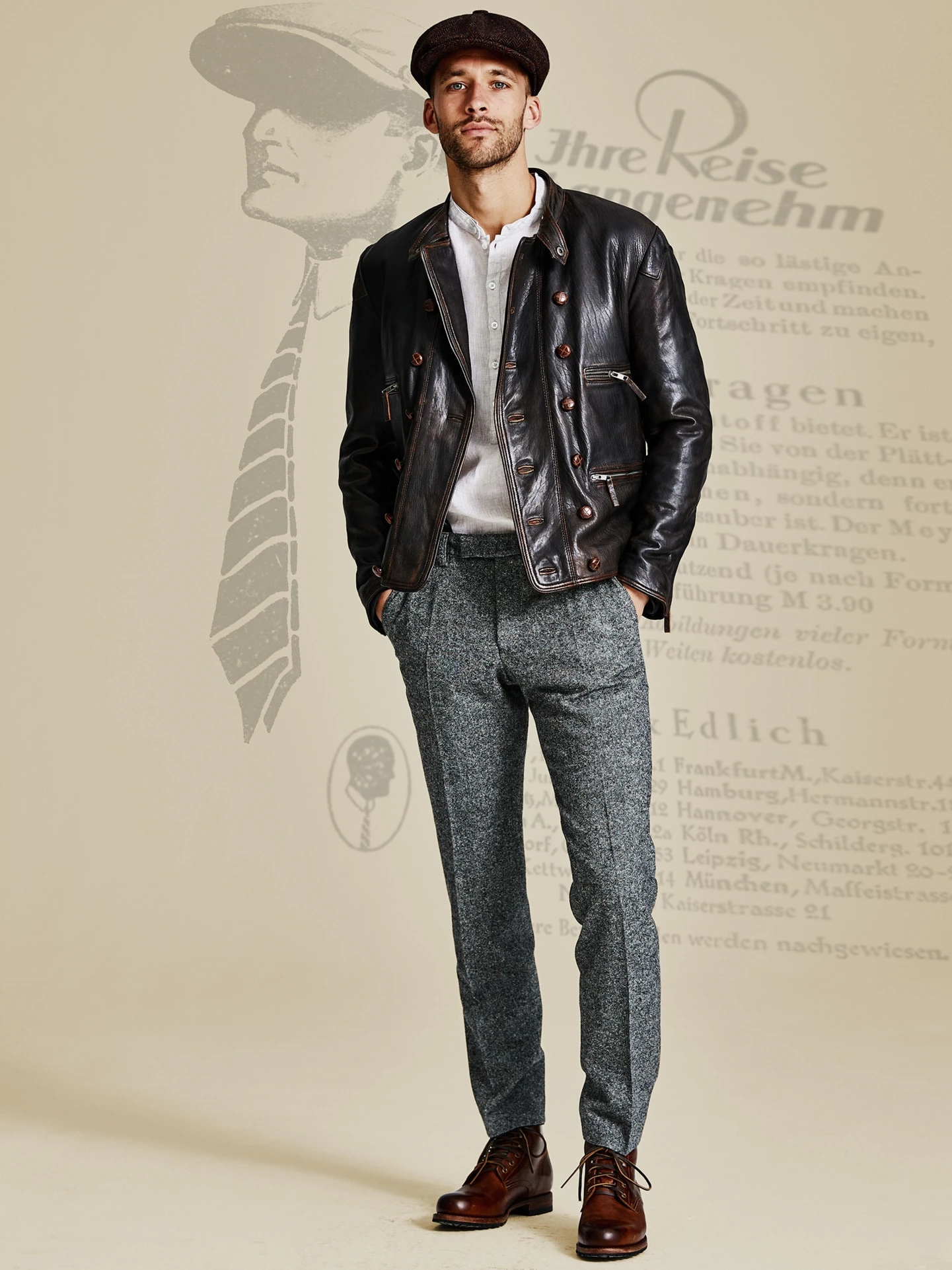 Zu Ehren unseres Ernsts. Weil er für uns Gründervater, Visionär und immer wieder Quell der Inspiration ist. Eine Hose, wie sie zum Gentleman gehört. Gewebt aus einem erstaunlich weichen Tweed, weniger bockig als die Hosen des vorletzten Jahrhunderts. Gemacht für niedrige Temperaturen – so wie sie Ernst Mey seinerzeit vermutlich auch auf seiner Reise nach Kanada erlebte. Beste Verarbeitung vom Anzugkonfektionär. Erhältlich bei Bedarf auch als Dreiteiler.