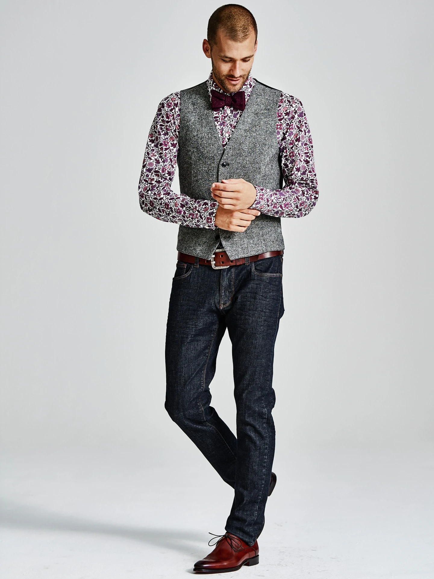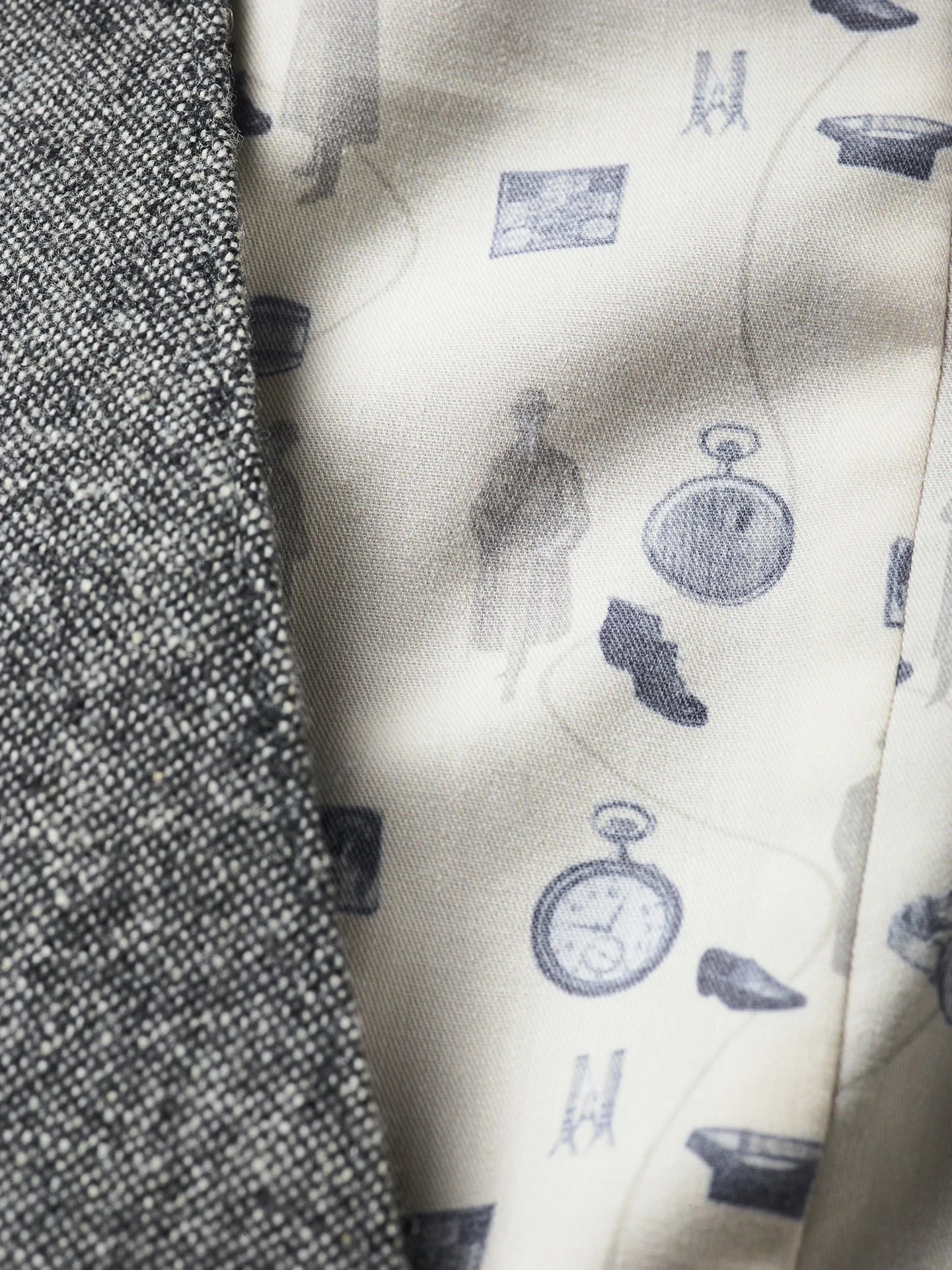Zu Ehren unseres Ernsts. Weil er für uns Gründervater, Visionär und immer wieder Quell der Inspiration ist. Eine Weste, wie sie zum Gentleman gehört. Gewebt aus einem erstaunlich weichen Tweed, weniger bockig als die Westen des vorletzten Jahrhunderts. Gemacht für niedrige Temperaturen – so wie sie Ernst Mey seinerzeit vermutlich auch auf seiner Reise nach Kanada erlebte. Aus Wertschätzung ist das Innenfutter mit originalem Bildmaterial alter Kataloge bedruckt. Beste Verarbeitung vom Anzugkonfektionär. Erhältlich bei Bedarf auch als Dreiteiler.