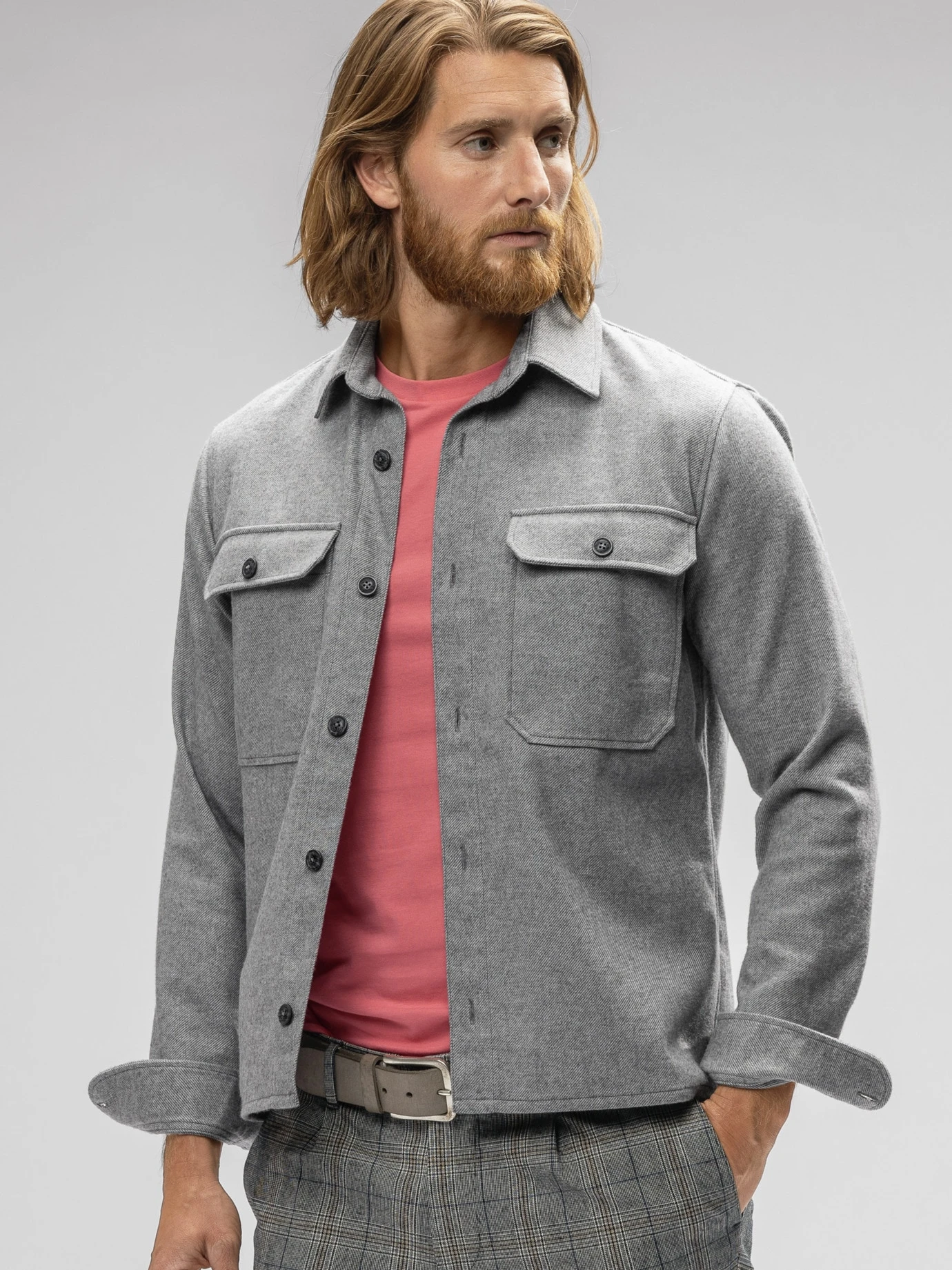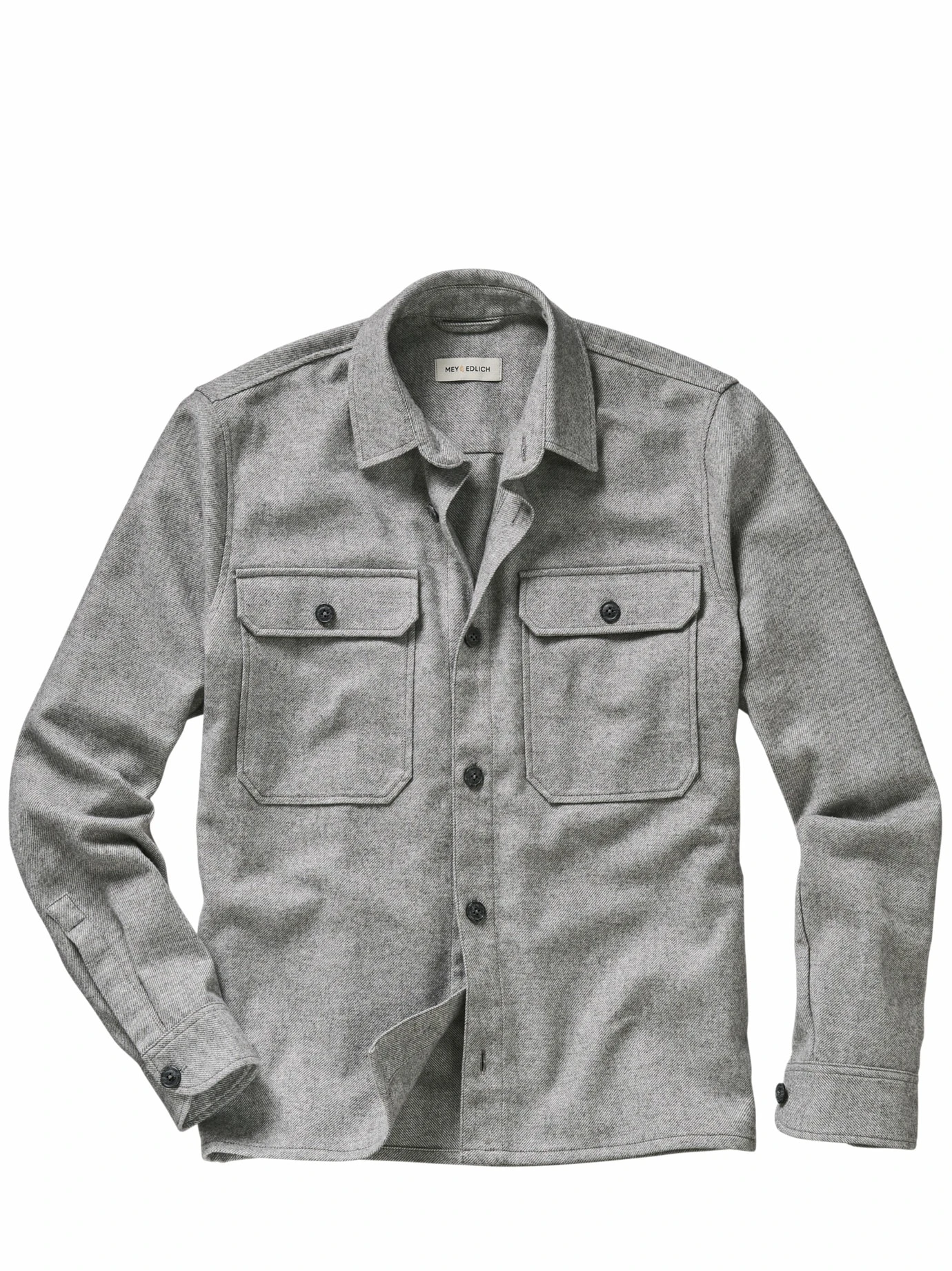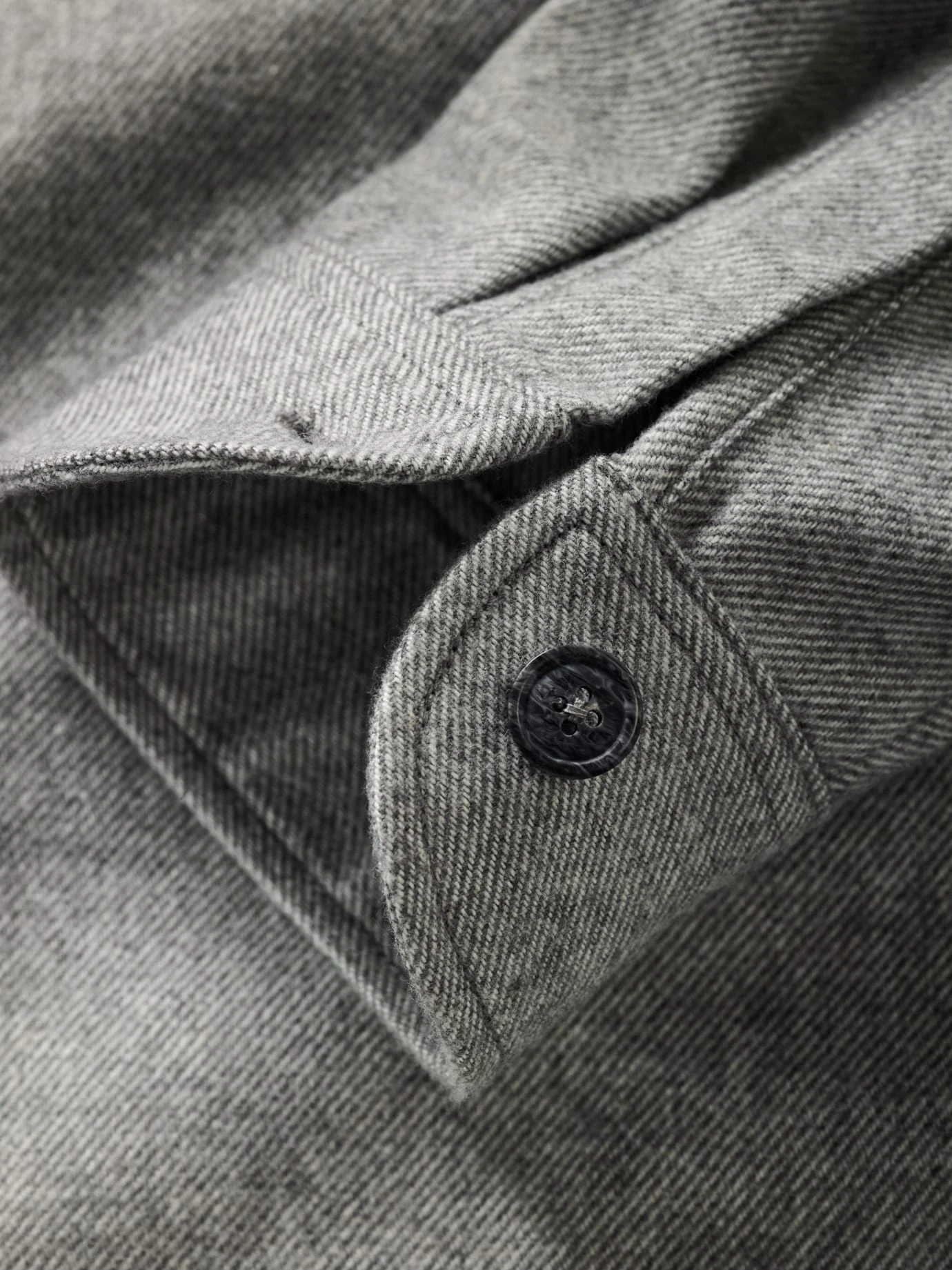 Schrödinger’s Cat als Kleidungsstück. Aber natürlich ohne zu kratzen. Irgendwie Jacke und irgendwie auch wieder nicht. Irgendwie Hemd und irgendwie nicht. Irgendwie uni und irgendwie doch wieder nicht. Dieses weiche Flanell-„Shacket“ lässt sich nicht in Normen pressen – es hat ein eher subtiles Revoluzzer-Gen, ohne dabei zu laut zu sein. Leicht changierender, zweifarbiger Twill. Schwer zu beschreiben, aber einfach zu kombinieren. Echter Jackenersatz, z.B. zu Jeans und Boots.