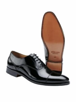 Der Schuh für große Momente. Er ist schlicht, damit er Anlass und Träger nicht die Show stiehlt. Auf Hochglanz poliert wertet er jedes Outfit auf und passt zu Smoking und Frack ebenso wie zur Jeans. Elegante Schnürung, saubere Nähte – modisch ist er unbegrenzt haltbar.