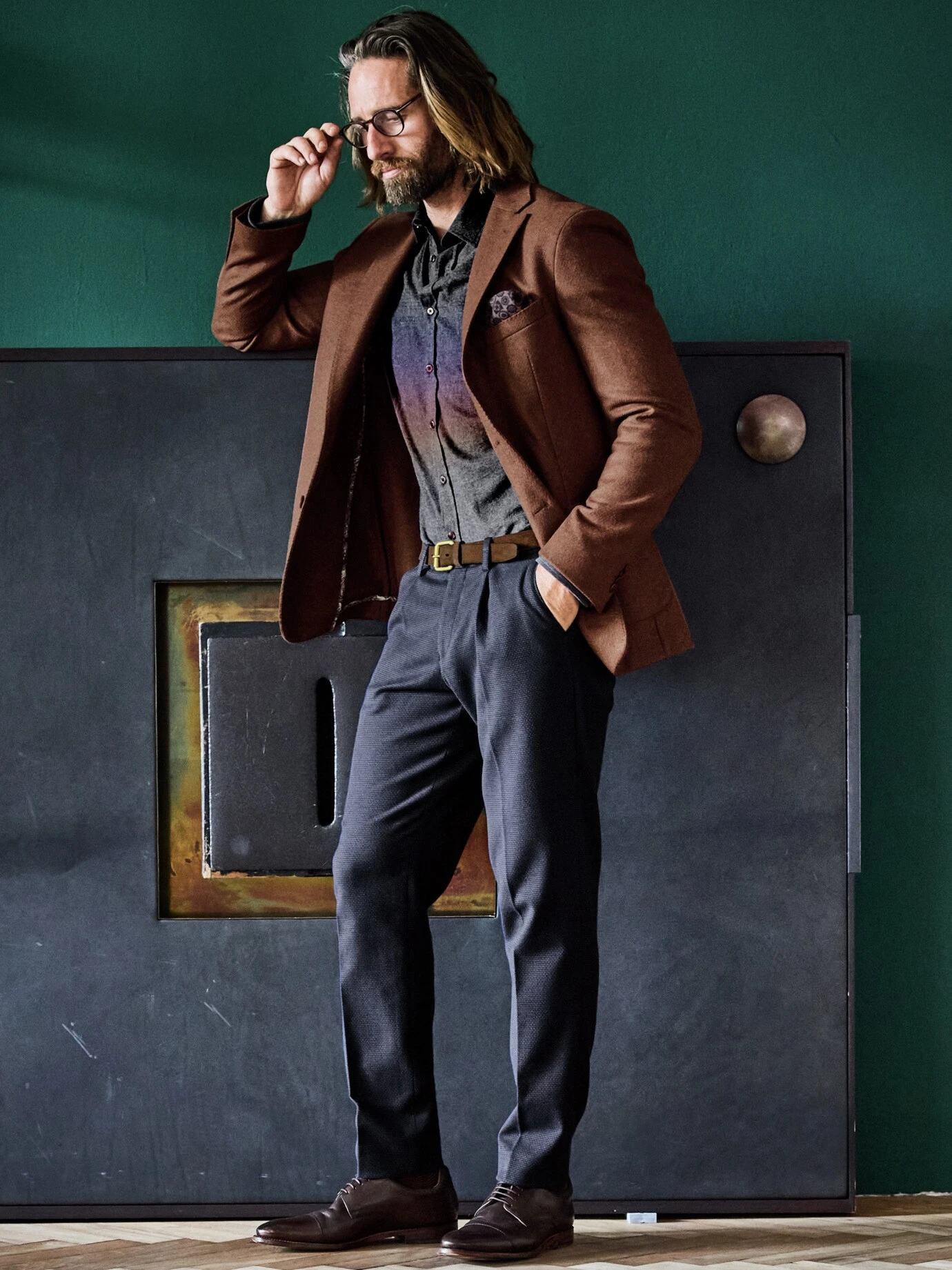 Ein Medaillon für Ihre Sakkotasche. Das Dessin ist angelehnt an altehrwürdige Ornamente, hier auf einen warmen Altrosaton bedruckt. Passt damit hervorragend zu rustikalen Sakkos oder sportlichen Jacken. Vor allem durch die italienische Wolle, besonders wollig, die beim Weber auf den Namen Flanella hört.