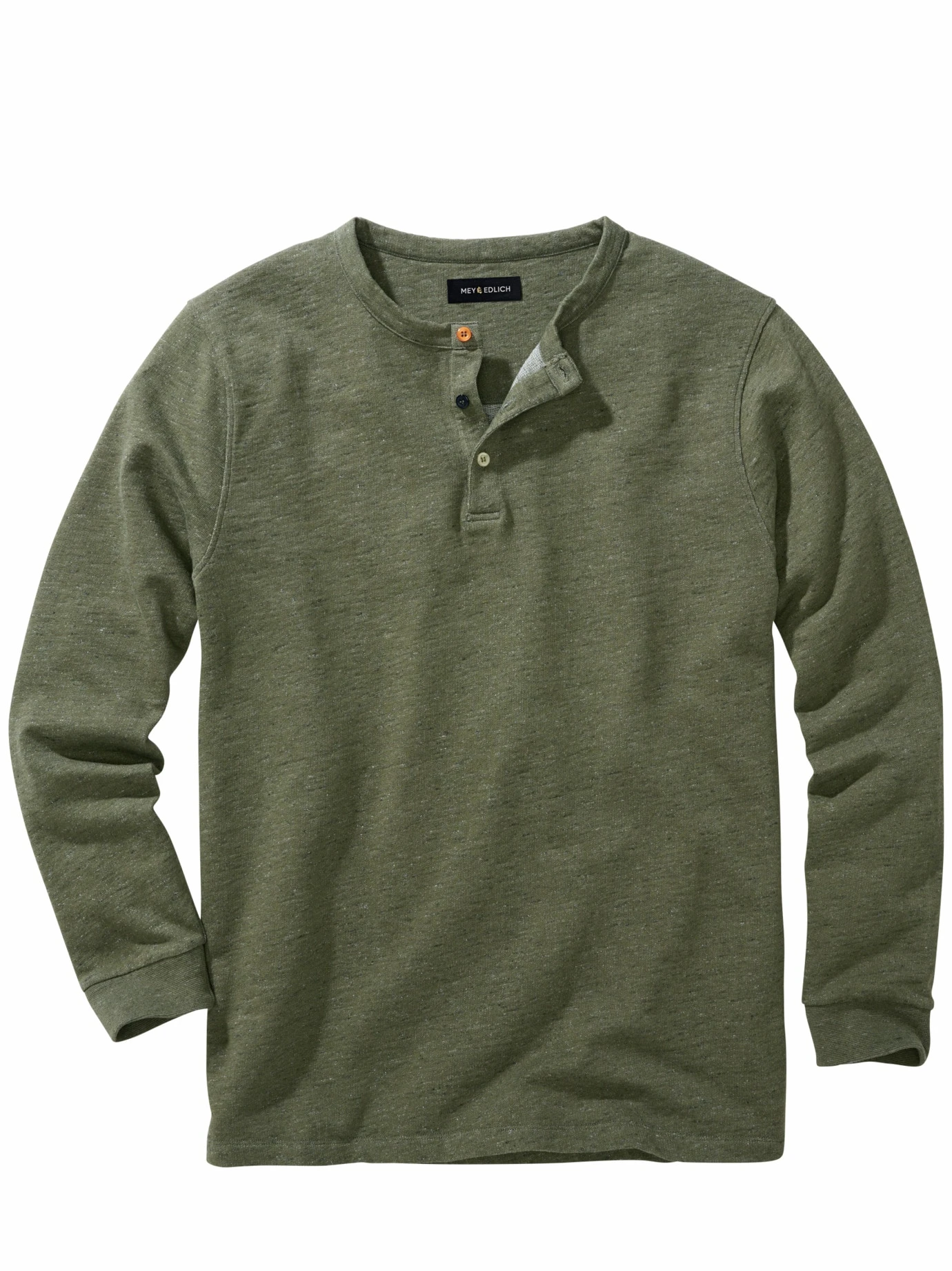 Dieses Shirt erteilt der Nullfehlerwelt eine Absage. Die Farbe ist fleckig-scheckig, die Struktur unregelmäßig, kein Knopf passt zum anderen. Der Wohlfühleffekt hingegen ist einmalig. In Portugal aus einem Baumwoll-/Modal-Flammgarn gefertigt, das dickere und dünnere Knötchen im Material hat. Diese Machart wirkt sich positiv auf das Tragegefühl aus, weil der Stoff die Haut sanft massiert, statt an ihr festzukleben. Dank des Anteils Modal besonders weich.