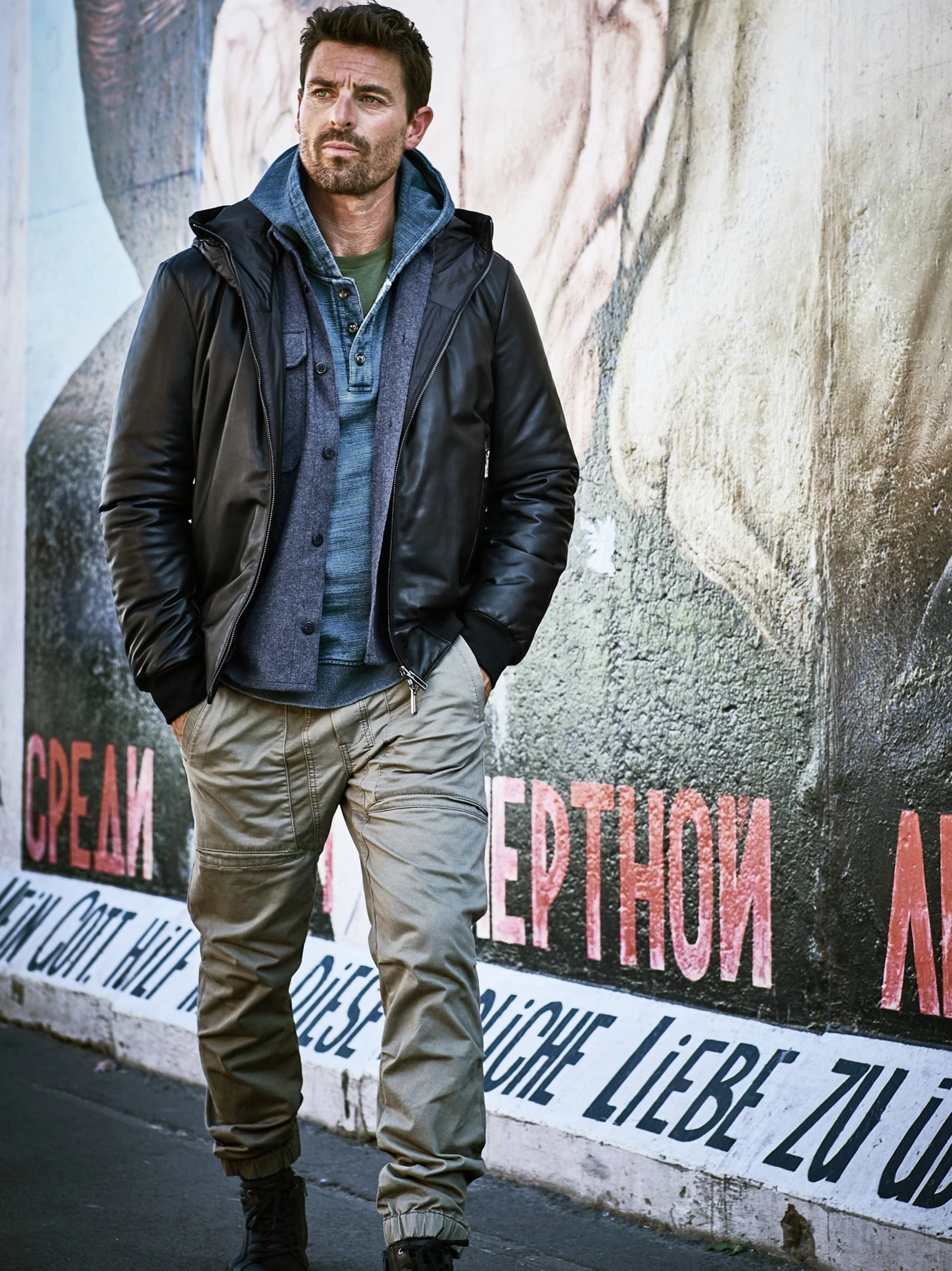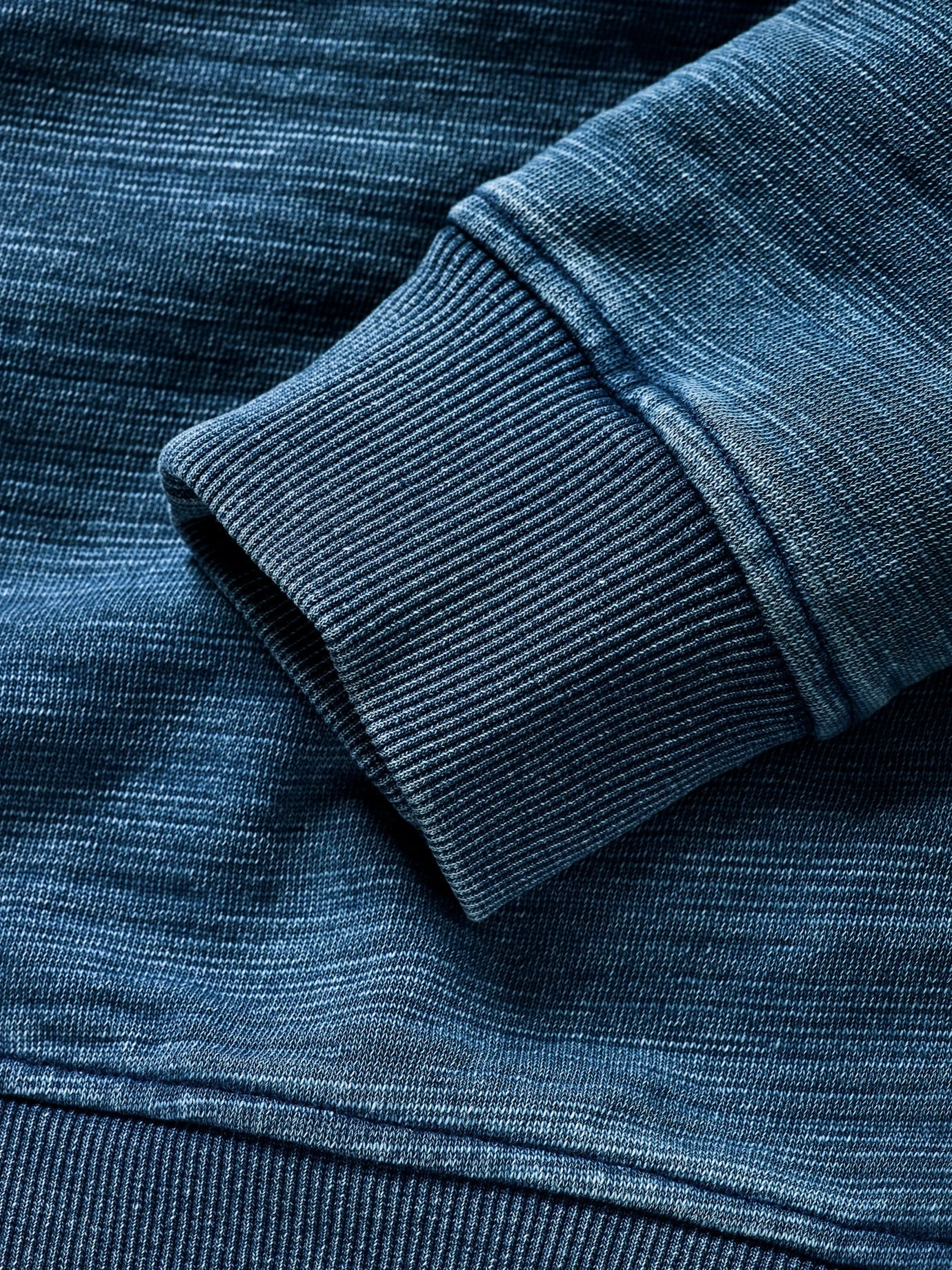 Überziehen. Entspannt sein. Die Farbe ist fleckig-scheckig, sie lebt mit, hinterfragt nicht, sondern verblasst mit dem Erlebten leicht, dank der Indigofärbung. Die Knöpfe erinnern an ein sportliches Henley, wenn Sie die Knopfleiste öffnen, trägt die Kapuze ein gutes Gegengewicht und es entsteht ein Wohlfühlabstand zum Hals. Einmal angezogen verspricht er ein gutes Gefühl auf der Haut, gefertigt aus einem Baumwoll-Hightech-Garn, so trägt er sich schön leicht.