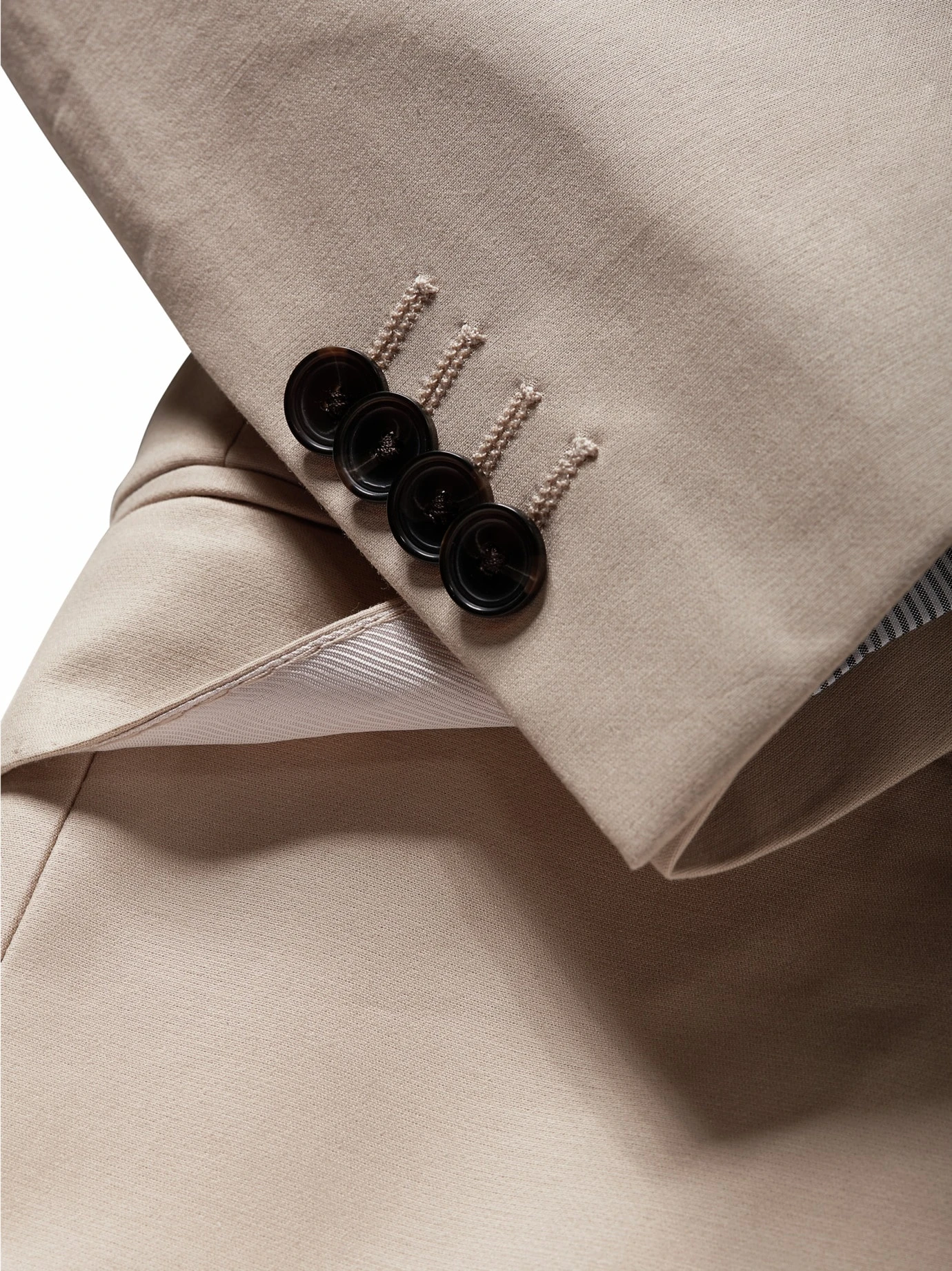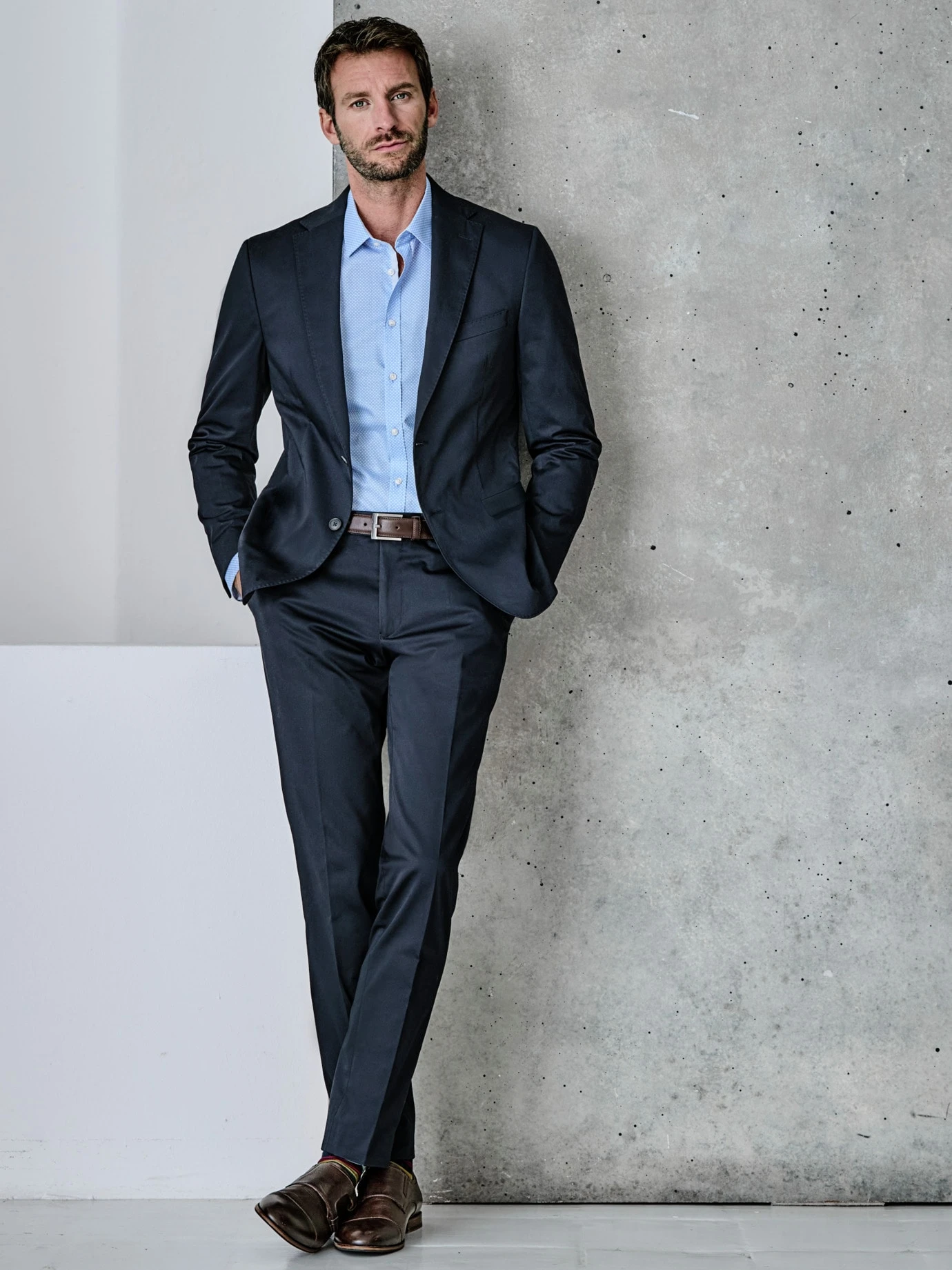 Das Meisterstück in der Garderobe des Gentleman. Dieser Anzug setzt seinen Träger in Szene. Insbesondere, weil er nicht nullachtfünfzehn ist, dezent Aufmerksamkeit schafft, ohne unangenehm aufzufallen. Das Besondere ist, er ist gearbeitet vom europäischen Anzugmacher aus einem Stoff, der dem Anlass, der Umwelt und Ihrem Outfit würdigen Glanz verleiht: ein italienisches Gewebe, aus Bio-Baumwolle, zusätzlich nochmal vom Weber gewaschen, damit ein weicher Griff entsteht. Am besten, klar, zur passenden Hose (Nr. 24-6579-8).