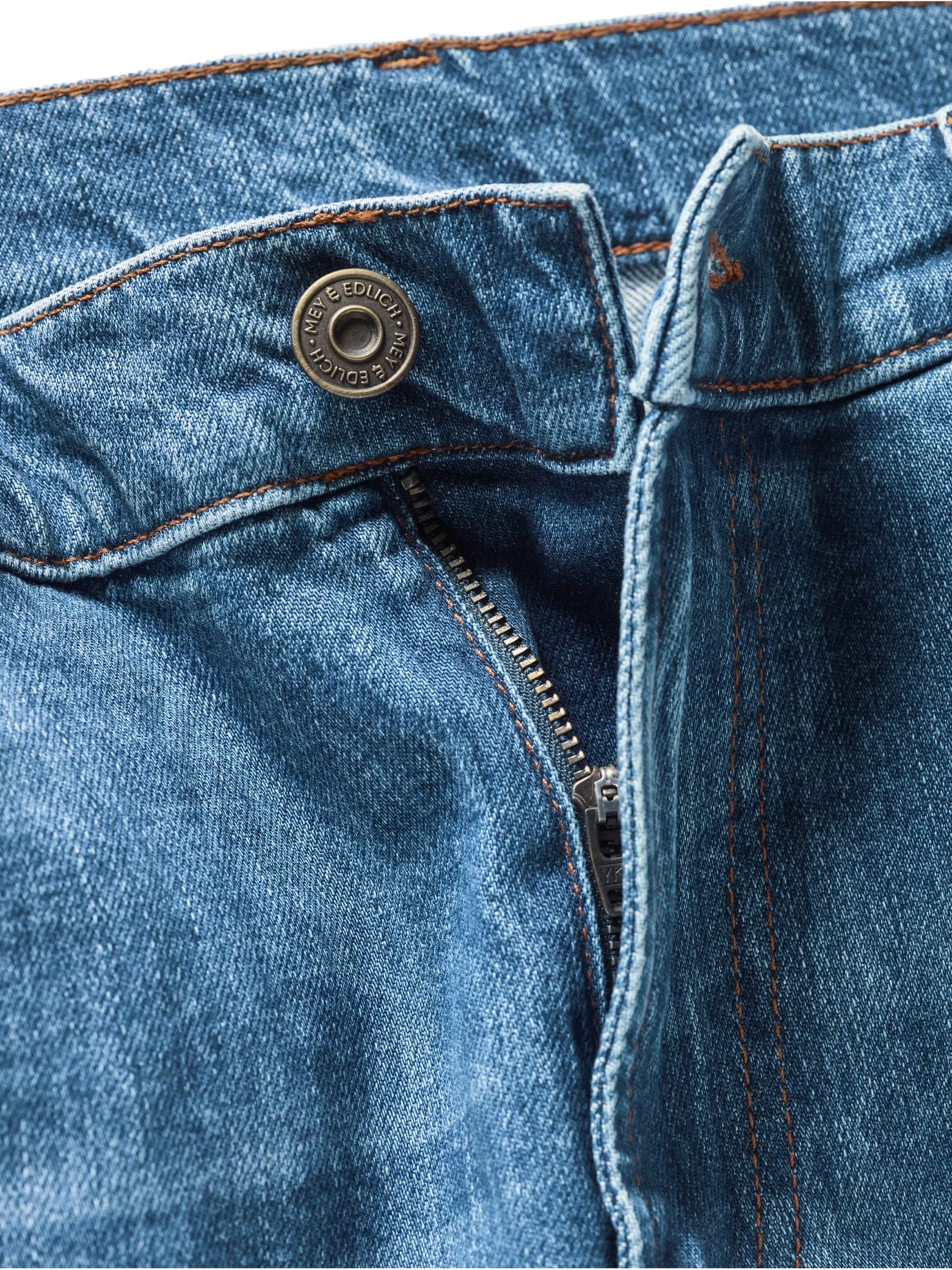 Geht beinahe immer. Diese Jeans ist weder stocksteif noch abgerockt. Der Denim trägt eine gute mittlere Waschung und dank 12 oz macht er die Jeans haltbar, vielseitig einsetzbar und unabhängig von Tagesform und Jahreszeit. Ein wenig Elasthan verbessert die Bequemlichkeit. Ob für die Arbeit mit einem gut geschnittenen Hemd oder gen Sommer minimalistisch mit weißem Oberteil. Dazu Sneaker oder Lederschuhe passend zum Gürtel.