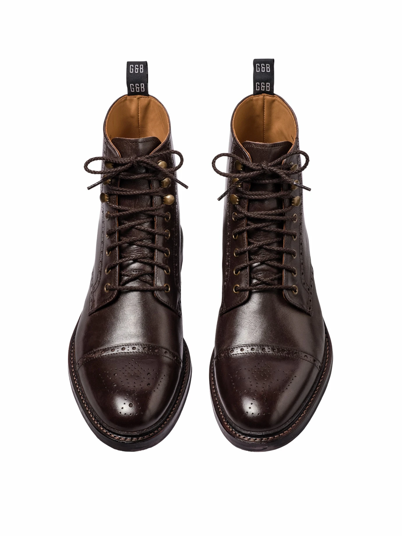 Beherrscht Terrain. Bleibt entspannt. Gordon & Bros denkt Schuhe noch in der Machart, wie sie früher Standard waren und heute schwer zu finden sind. Gearbeitet aus robustem Rindleder, das bei guter Pflege länger als eine Generation Schuhe hält. Rindleder auch innen, damit Ihr Fuß gut atmen kann. Optisch an den klassischen Budapester angelehnt und kompatibel mit Jeans oder Anzug.