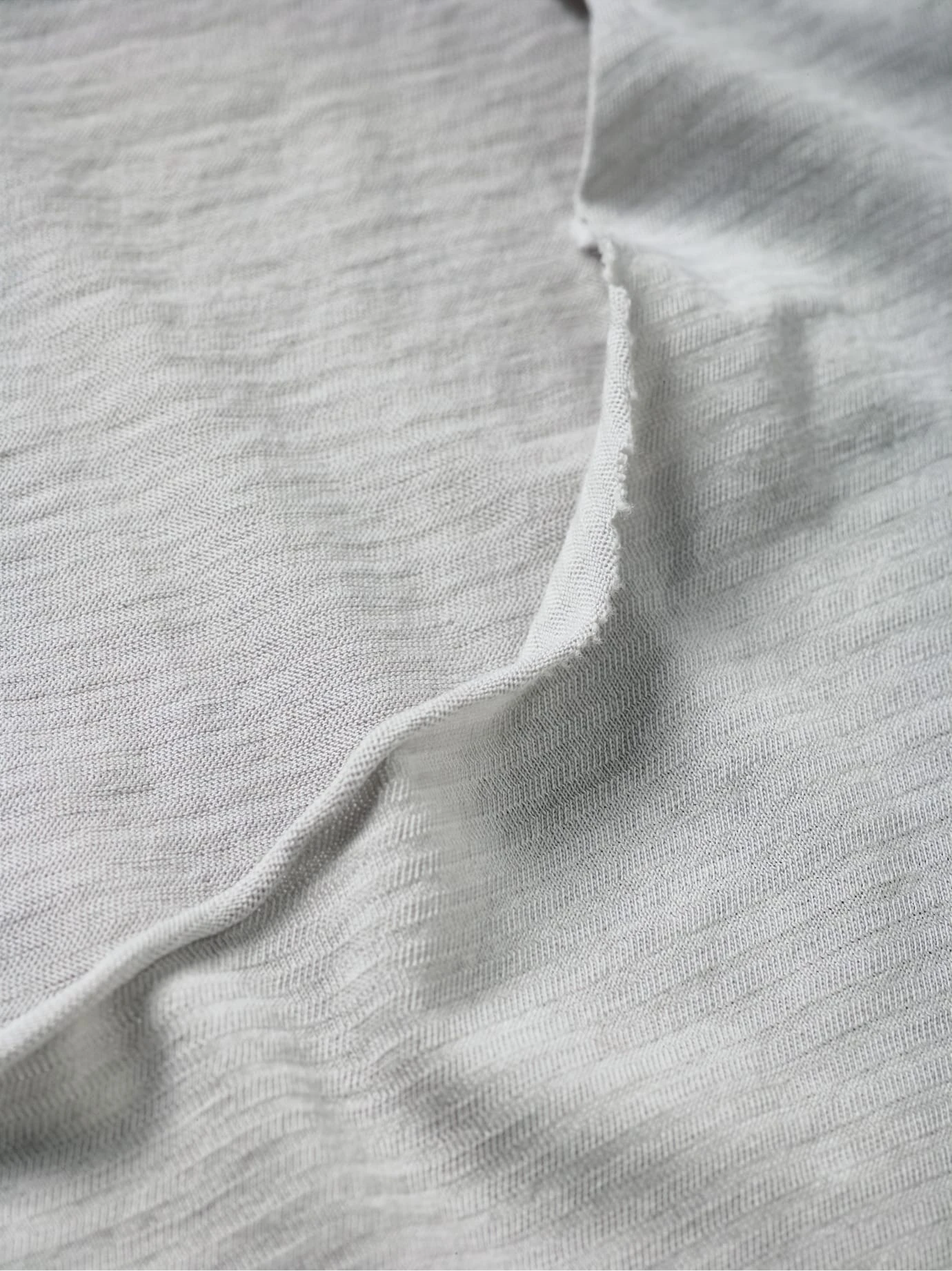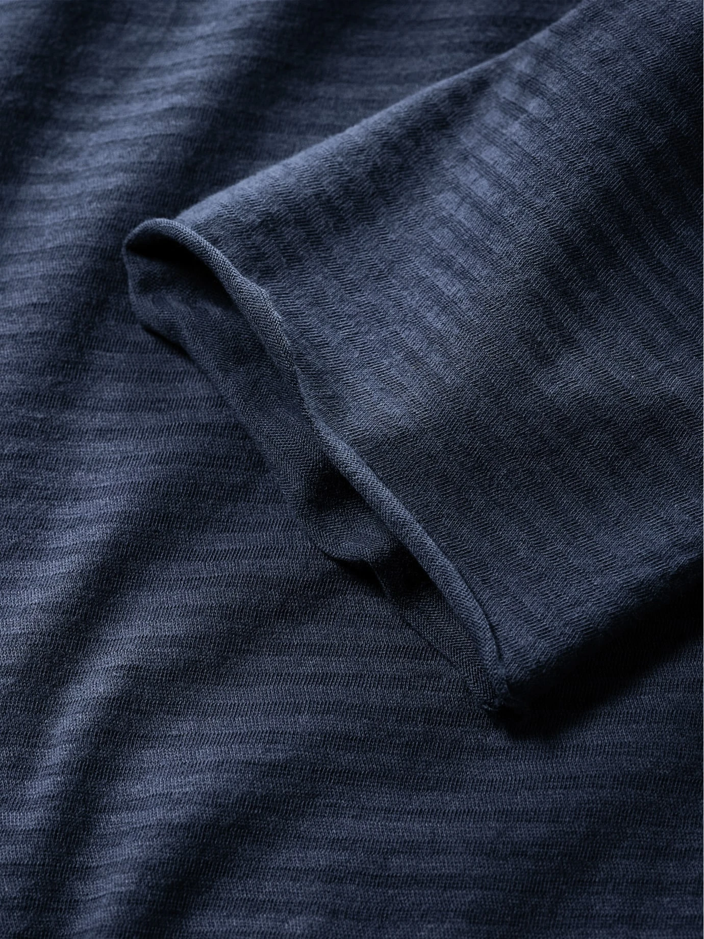 Wenn’s ohne Chichi auskommt, sieht ein Shirt so aus. Es ist genauso minimalistisch designt, dass es sich grenzenlos in jeden Ihrer drei Garderobenschlüssel (Smart, Casual, Business) einfügt. Dazu reicht ein sehr feiner Jersey, der stabil wie ein leichter Sweatshirtstoff ist und sich extrem gut anfühlt. Druckfreie Nähte, sodass Sie es getragen kaum spüren, und offene Kanten, die sanft einrollen und es modern machen. Passt immer, ob zu geflickter Jeans oder unters Sakko.