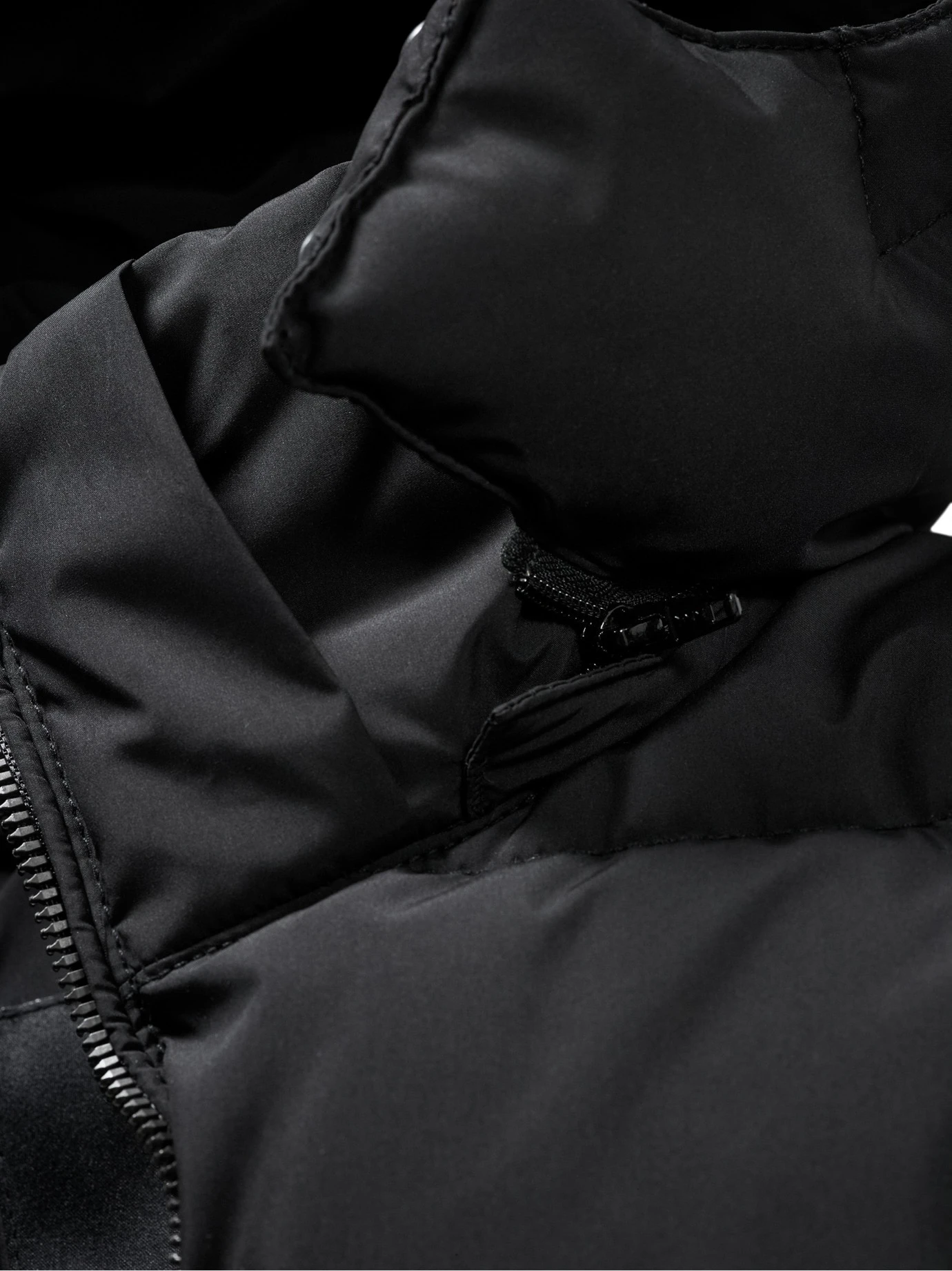 Schluss mit Stepp. Es lebe der Stepp. Filigrane Steppjacken gehören der Vergangenheit an, sechs fette Kammern schaffen unverwüstlichen Schutz vor jeder Form des kalten Wetters. Natürlich komplett vegan gefüttert, sprich sie speichert die Wärme genauso gut am Körper wie echte Daune, ist knautschbar, aber absolut fair.
