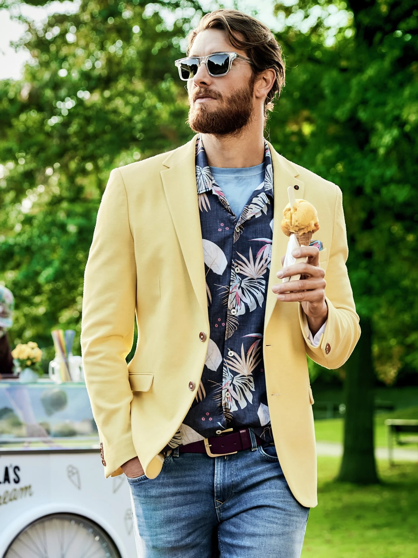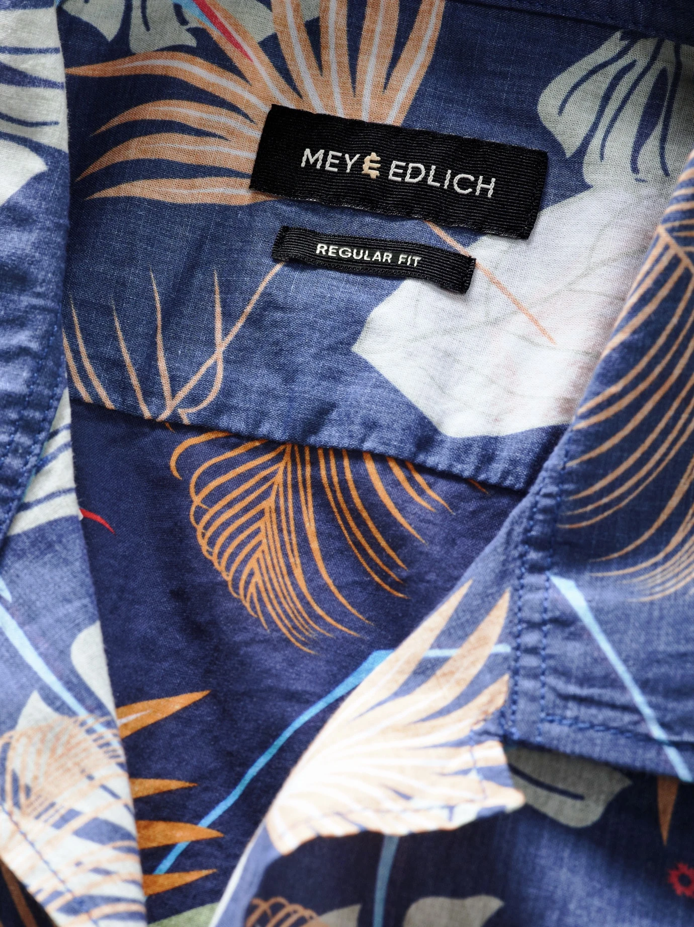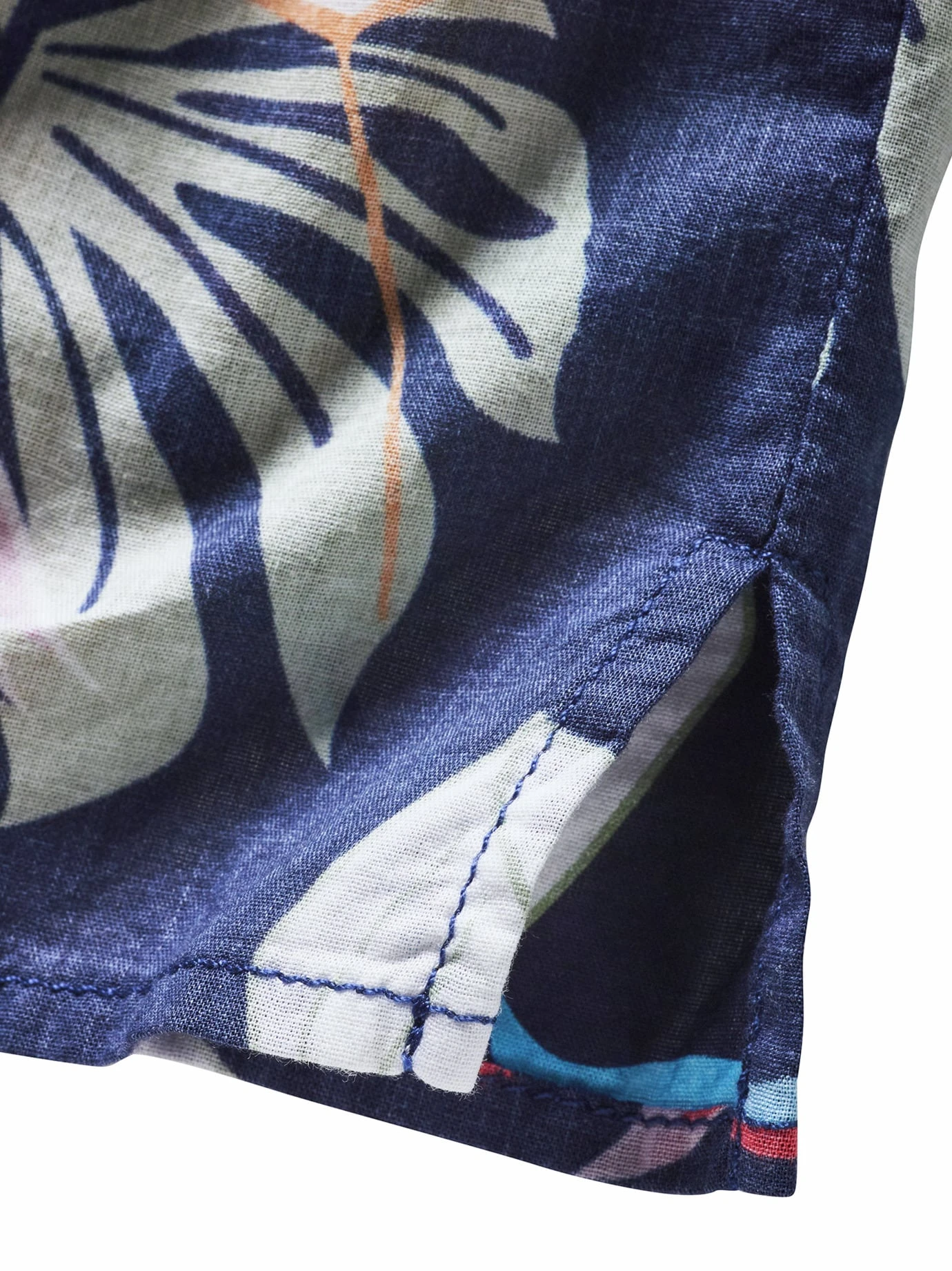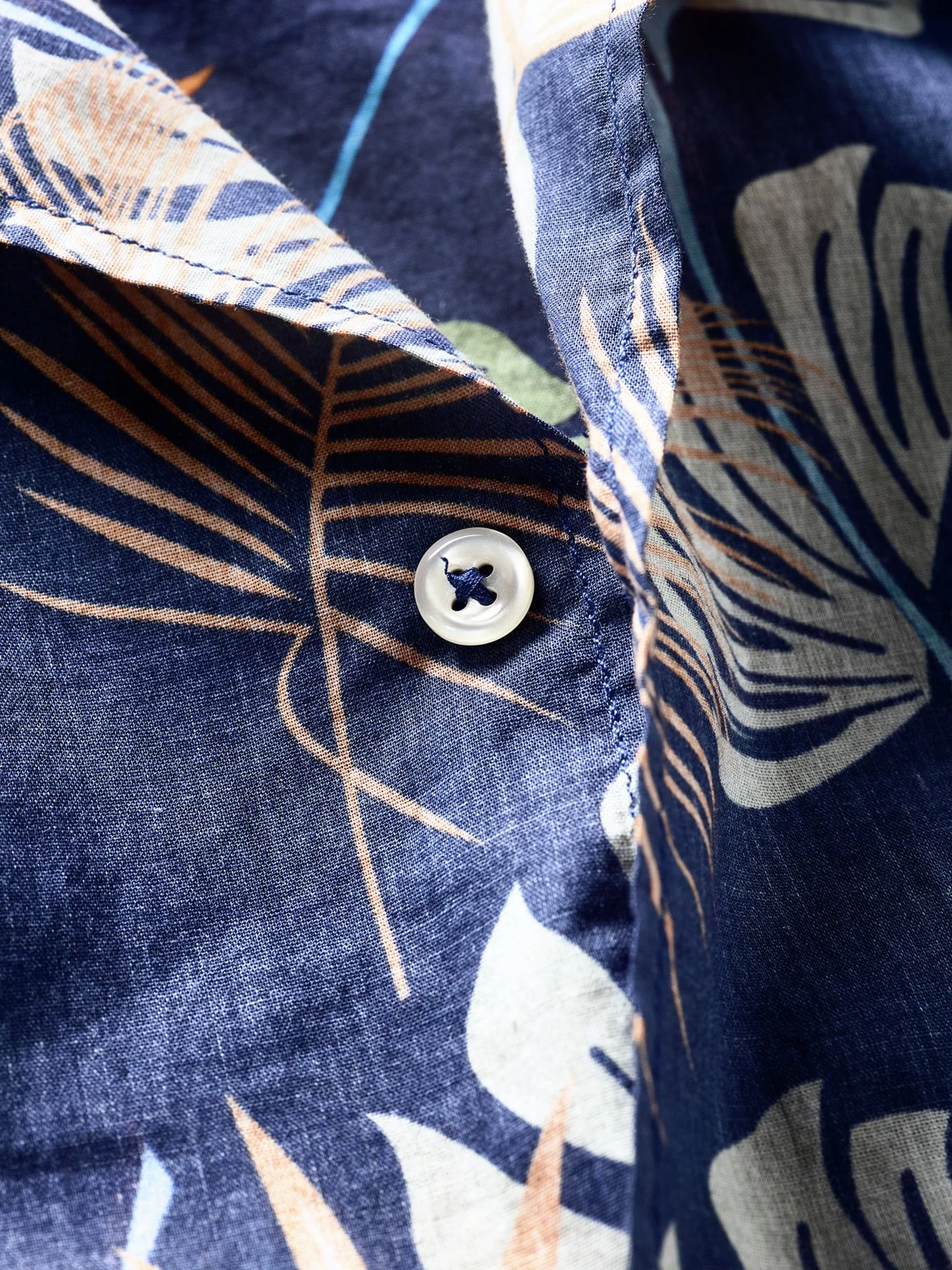 Aloha-Style im Abendmodus. Während andere Hawaiihemden vor Farbe nur so strotzen, ist die Blätter- und Blütenpracht bei diesem auf blauem Untergrund angelegt. Das betont jeden Farbtupfer und lässt das ganze Hemd geheimnisvoll erscheinen. Für noch mehr Eigenwilligkeit sorgt der reduzierte Illu-Stil. Ungewöhnlich ist auch der sommerlich luftige Baumwoll-Voile (frz. für Schleier), der in diesem Fall nicht transparent ist. Definitiv eine spannende Option farbenfreudig, aber nicht bunt zu sein.