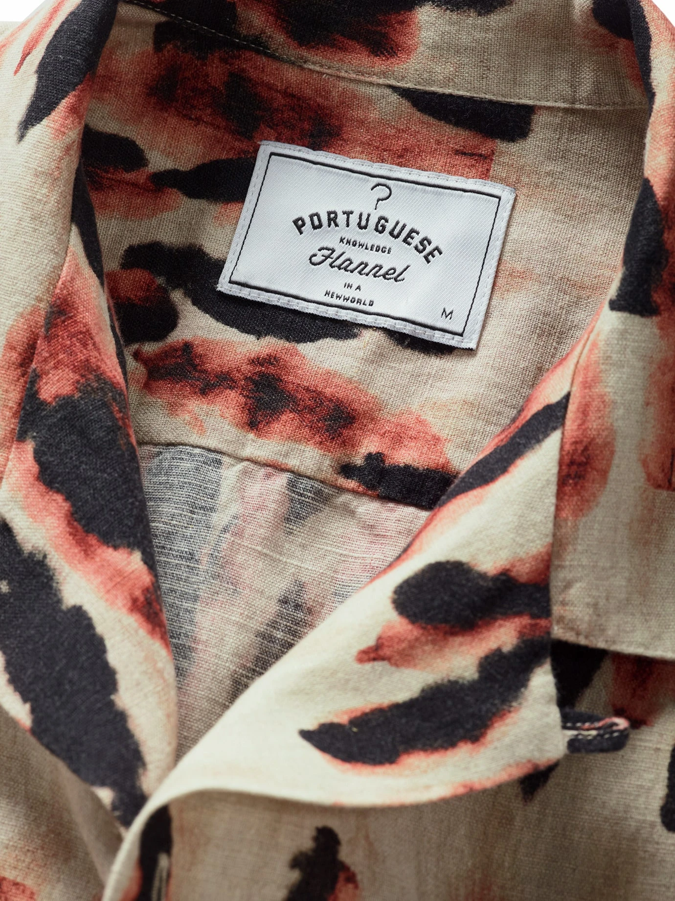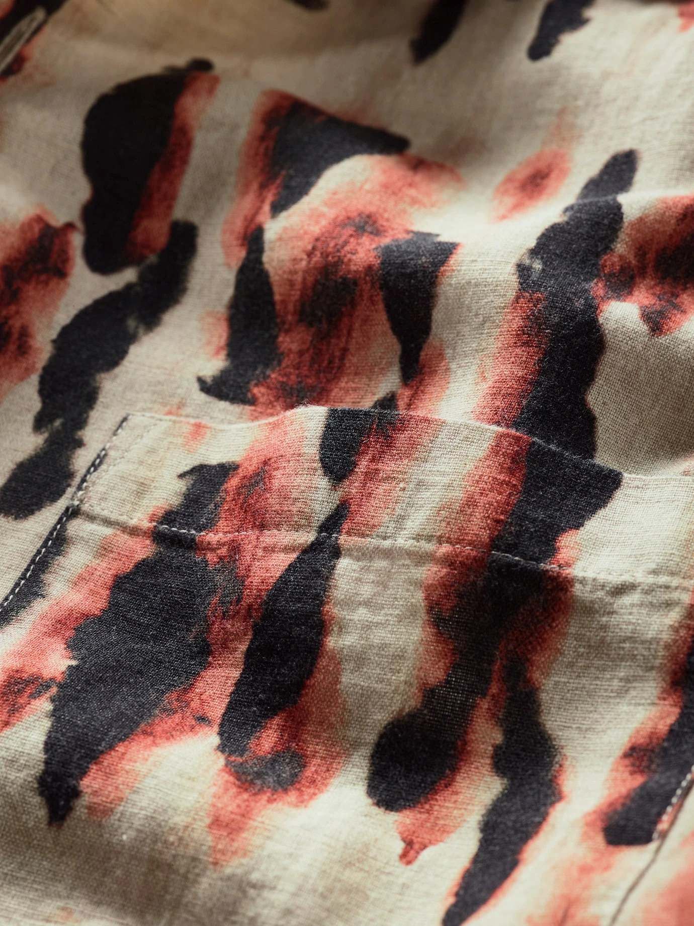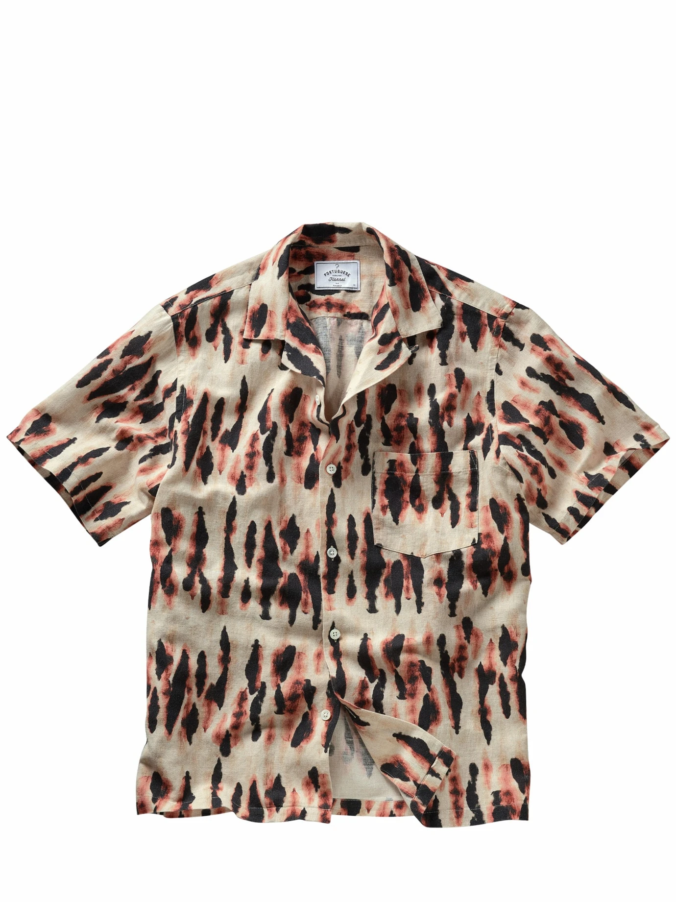 Leinen in the Sky with Diamonds. Ein Koi-Teich in der Morgenröte? Aufstrebender Performance-Künstler? Die Kombination aus tief ins Glas und lange ins Lagerfeuer gucken? Was sehen Sie? Das Design ist kurz vor avantgardistisch und vielfältig interpretierbar. Ein außergewöhnliches Hemd, das absolut nichts für Warmduscher ist und Eindruck hinterlässt. Der Leinenanteil kühlt die Blicke ab, die dem Träger sicher sind. Farblich passt dann eh alles zu diesem Design.