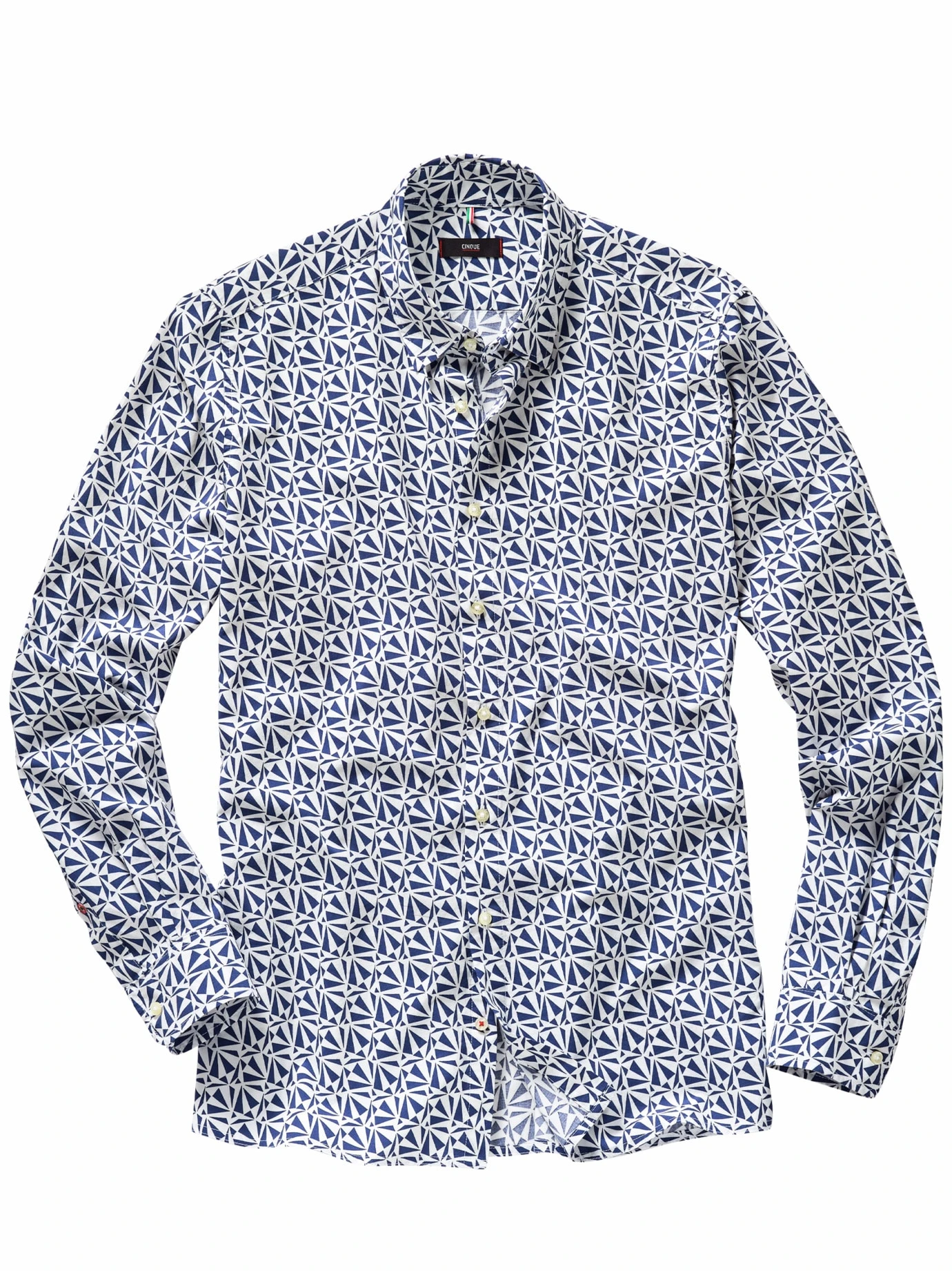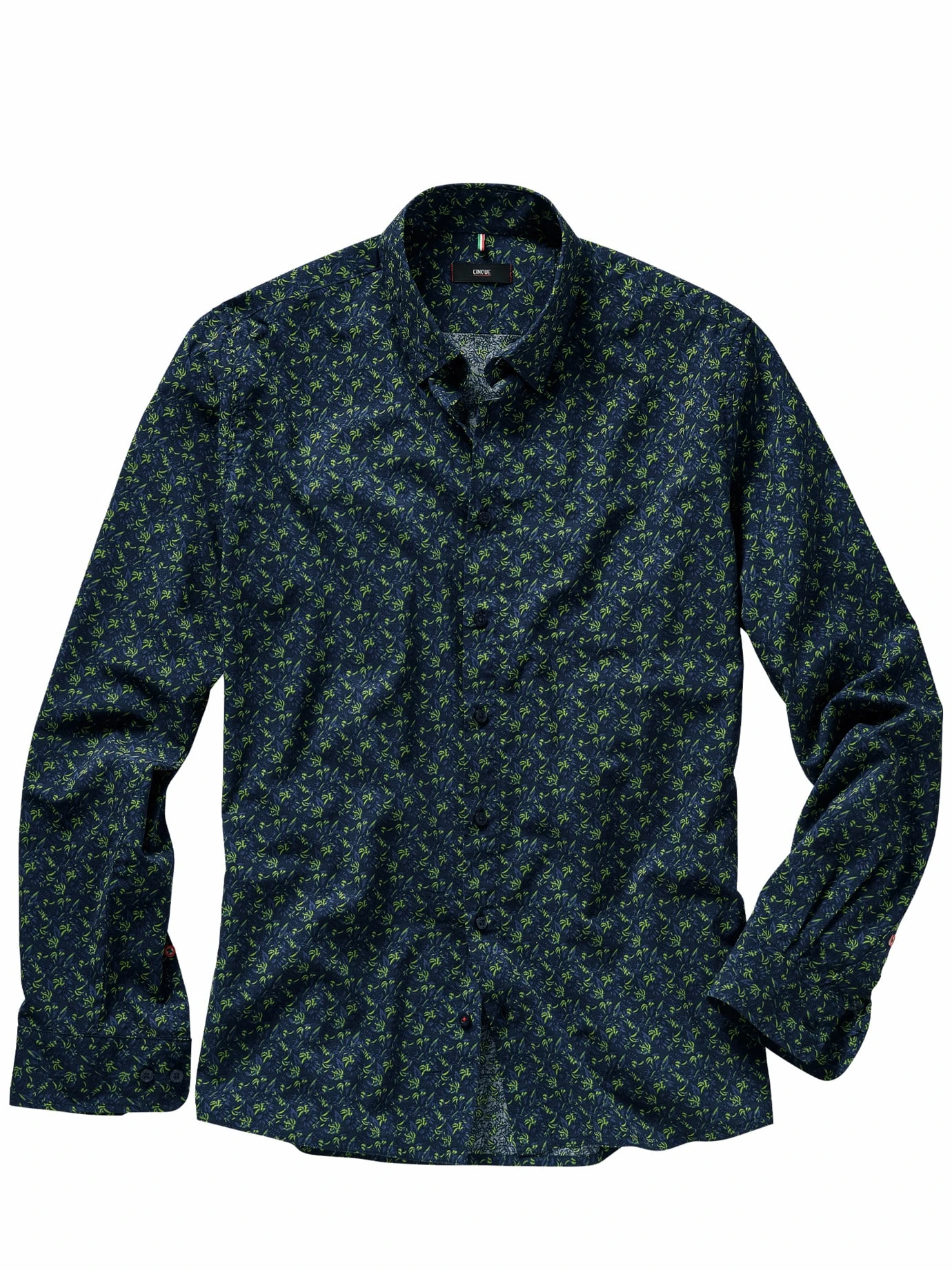 Hier fließt alles. CINQUE macht mit dem Cispace den Unterschied: der Grafikprint erinnert an moderne Kunst, der Stoff fühlt sich irre geschmeidig an. Im ersten Moment wirkt er, als sei ein Schuss Seide drin, tatsächlich sorgt ein Drittel Viskose für den sanft fließenden Charakter. Ist damit etwas weicher auf der Haut, als Sie es von herkömmlichen Hemden her kennen, und sieht länger frisch aus. Im Office tragen Sie es sogar zum Anzug, die Afterhour läutet es zur Jeans ein.