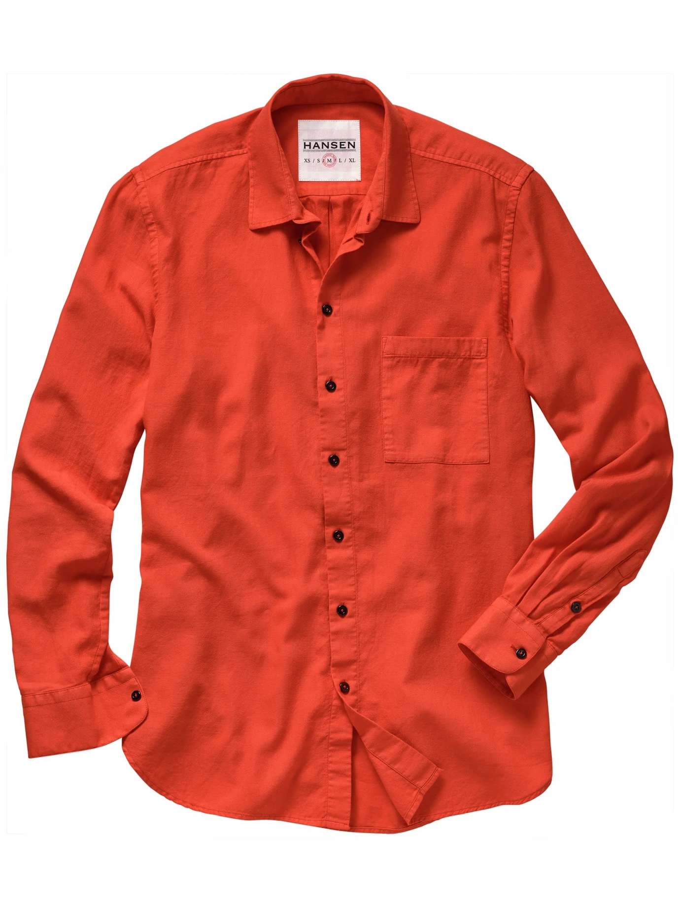 „Wir glauben an kleine Kleiderschränke und große Persönlichkeiten.“ Genau die haben in dem locker geschnittenen Hemd von HANSEN Garments aus Kopenhagen Raum zur Entfaltung. Der sanft vorgewaschene italienische Baumwolltwill (von dem HANSEN sagt, er würde süchtig machen) ist weich und leicht. Die sauber und haltbar verarbeiteten Nähte und die Perlmuttknöpfe verweisen dezent auf die High-End-Hemdenliga. Mit einer Farbe, die überraschend gut zu kombinieren ist. Im Business mit Krawatte, in der Freizeit lässig über der Hose tragen.
