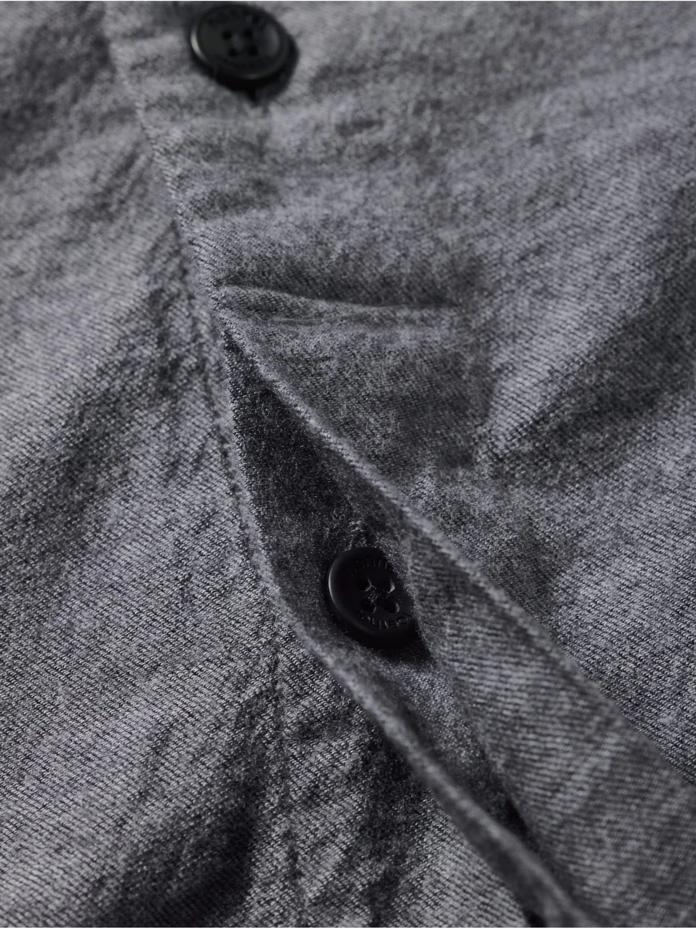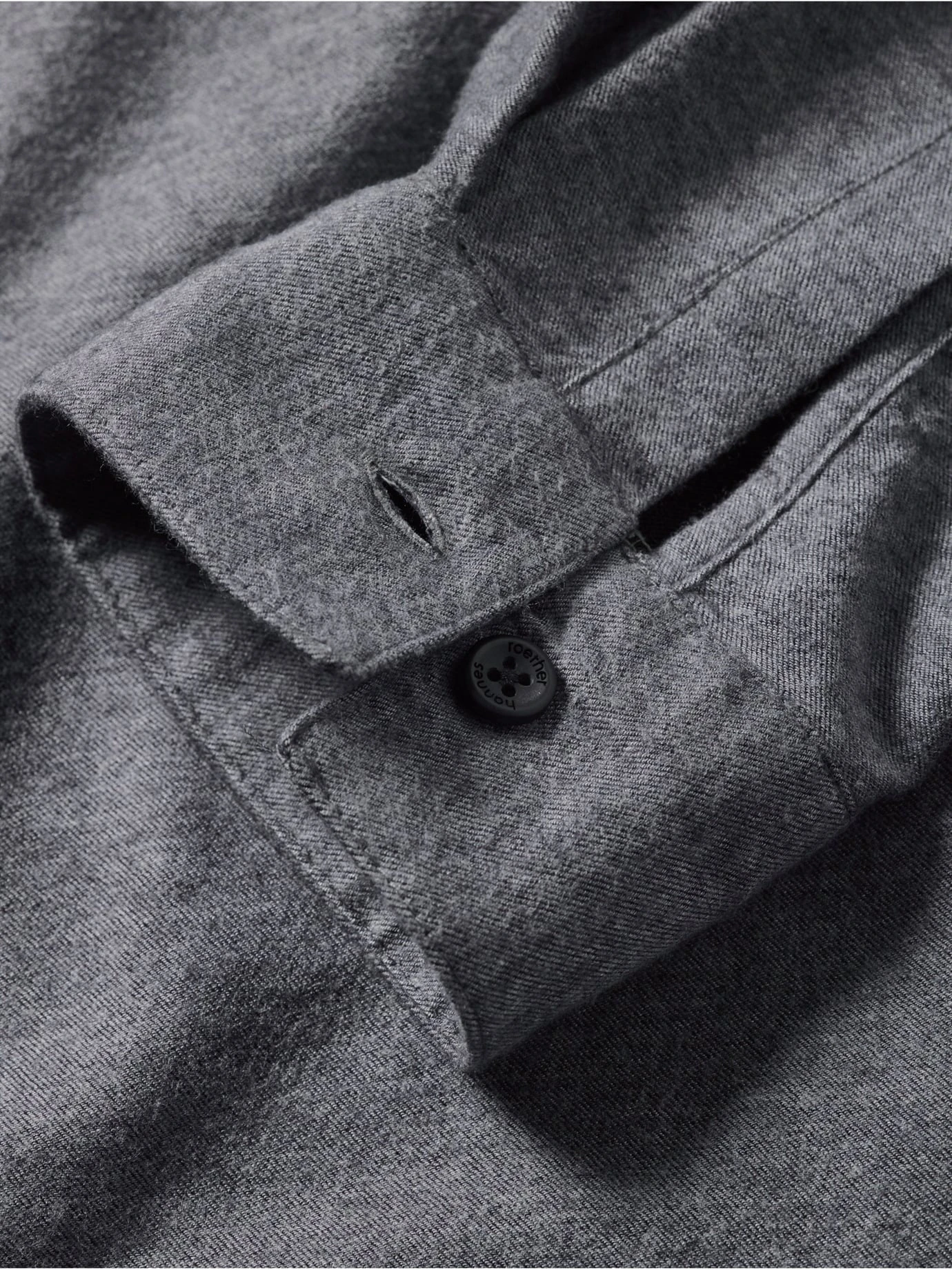 hannes trifft den richtigen Ton. Sophisticated, aufs Wesentliche fokussiert und in der stetigen Beachtung hochwertiger Materialien, um nur einige Dinge zu nennen, auf die der Freiburger Designer Wert legt. Bei diesem Hemd setzt er auf einen weichen, leicht angerauten Flanell in dicht gewebter Köperbindung. Die Basis ist dafür ein ordentlicher Anteil an weicher Baumwolle, den wärmenden Tarif liefert die Wolle. Verleiht Ihrem Outfit etwas sorgsam Ausgewähltes und zugleich Lässiges, möbelt die Denim auf und macht die schmale Stoffhose abendtauglich.