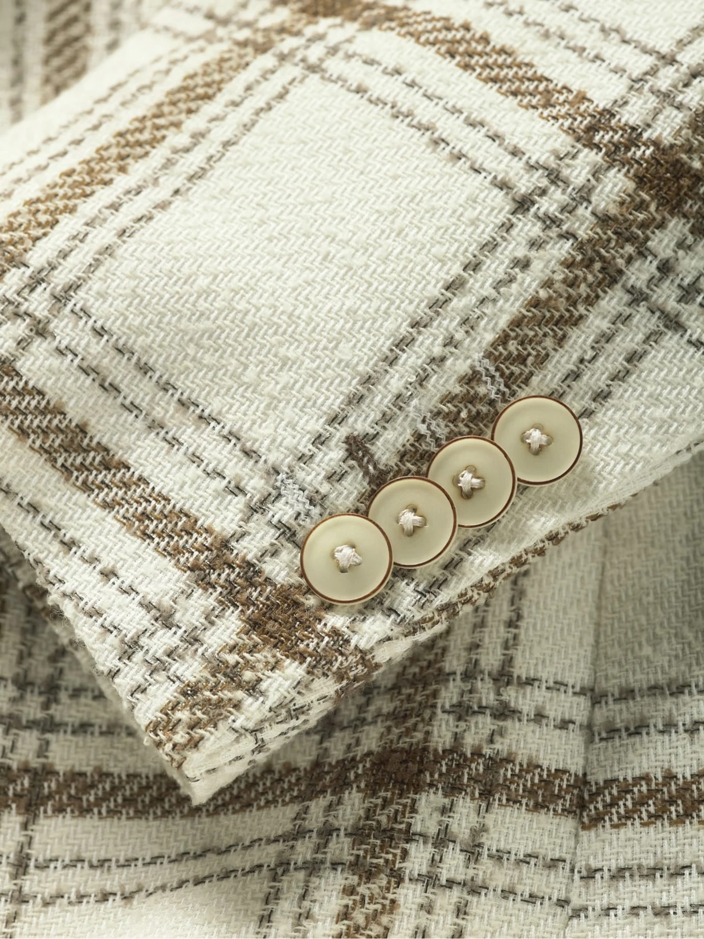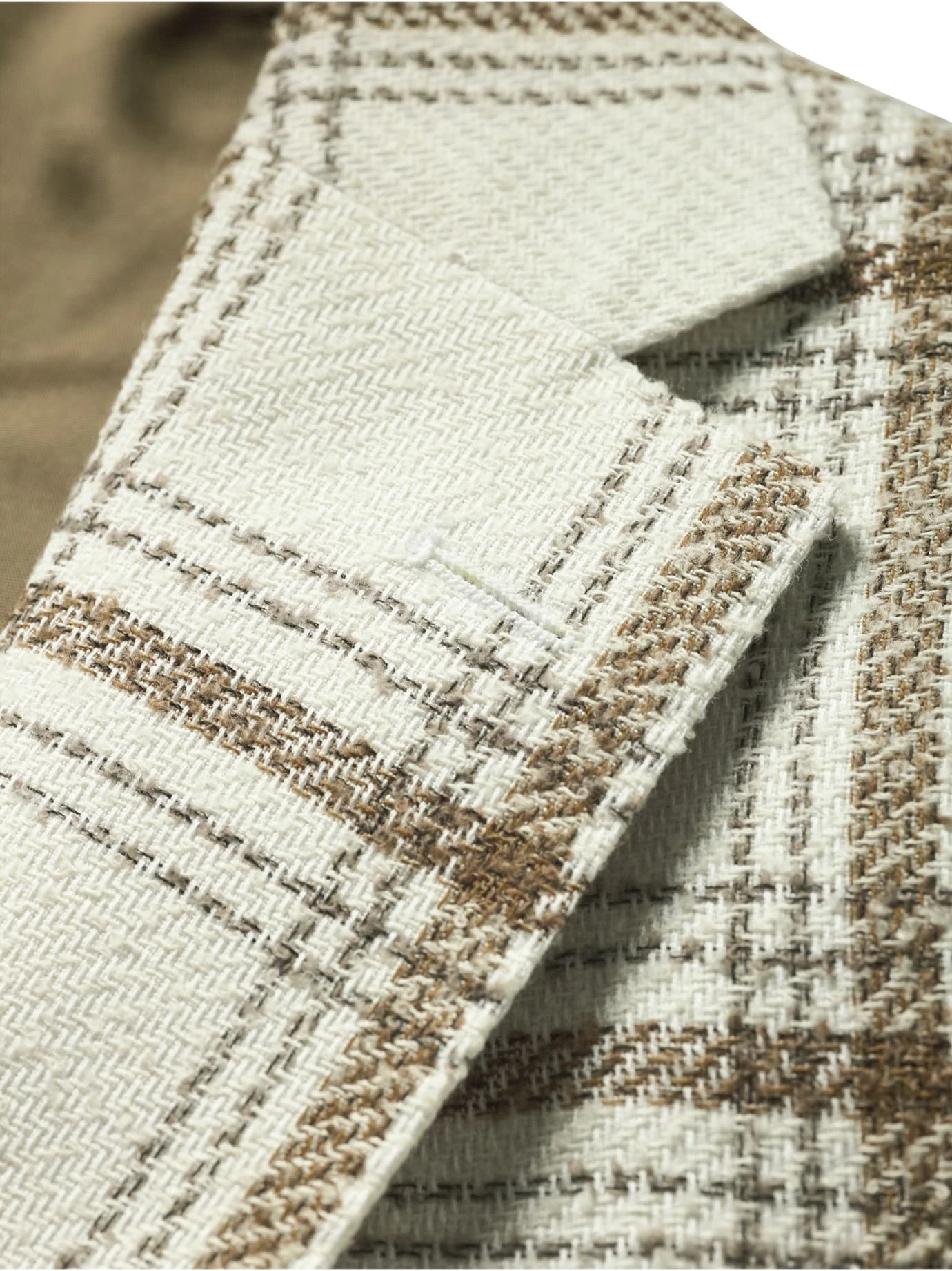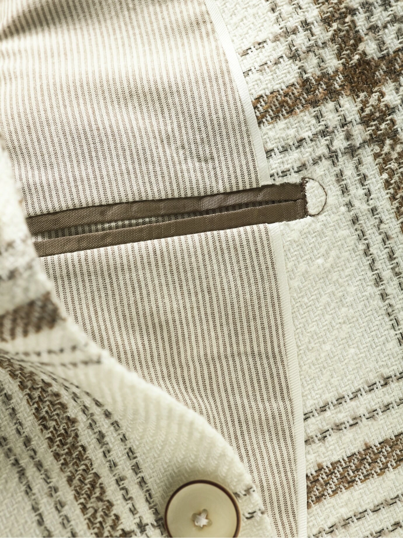 Schafft Präsenz. Es strahlt Frische aus und suggeriert, in diesem Sakko steckt ein aufgeschlossener Träger. Allein, weil es in der Masse dunkler Sakkos heraussticht, ohne Aufsehen zu erregen. Den Weitblick liefert das imposante Fensterkaro samt Überkaro – einen solchen Stoff meistert nur ein Traditionsweber. Marzotto verwendet hierfür solide Schurwolle und paart sie mit angenehmer Baumwolle, der Rest Polyamid dient der Haltbarkeit. Sie werden es vermutlich nicht jeden Tag tragen, aber dann, wenn Sie gesehen werden wollen. Gefordert souverän zur hellen Jeans mit Shirt und Sneaker.