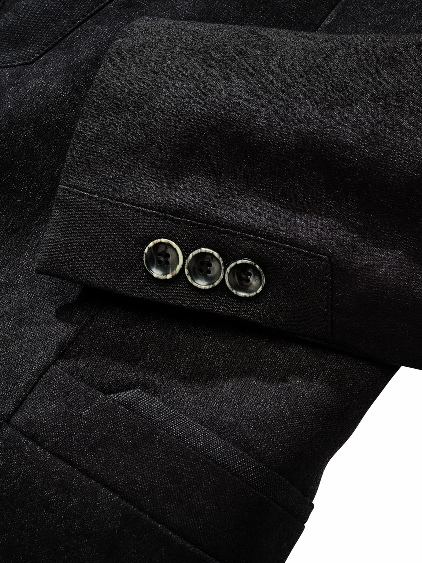 Verarbeitung: Saumpartie mit Seitenschlitzen. Zwei Leistentaschen, eine Brustleistentasche. Innen: eine Zipper-, eine knöpfbare und eine bestickte Handytasche. Slim Fit.