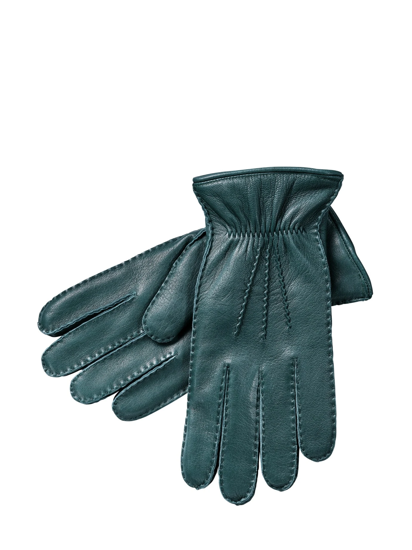Ihre Hände verdienen das Gefühl puren Kaschmirs. Außen schützt Sie italienisches Hirschleder vor Witterung. Es zählt zu einem der elastischsten Leder überhaupt, ist enorm reißfest und trägt typisch eine genarbte Struktur, die ihm den unverwechselbaren Charakter verleiht. Der Verde Bottiglia-Farbton lässt die Handschuhe sportlicher und gleichzeitig erhaben zum dunklen Mantel wirken.