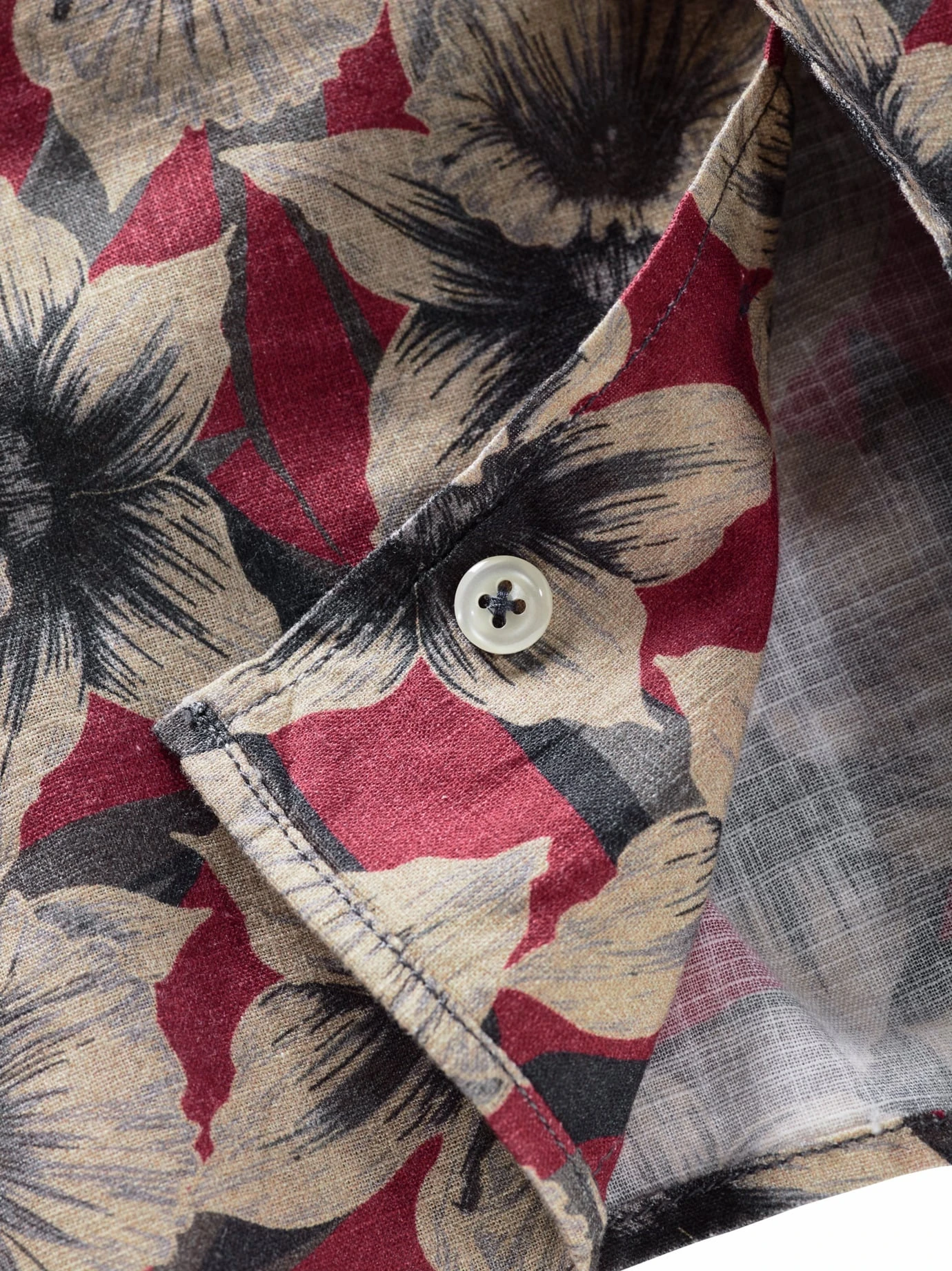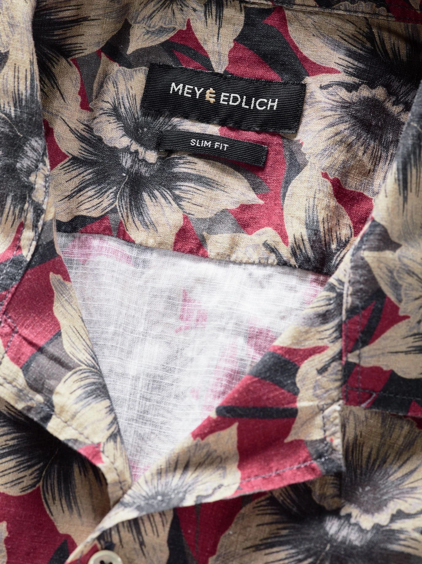 Einpacken, abreisen. Heißt nicht nur Hawaii, ist auch Hawaii. Halb aus Baumwolle kann es viel tropische Feuchtigkeit wegstecken, ohne gleich klamm zu werden. Halb aus Leinen bleibt es angenehm kühl, hat die typische, etwas rauere Haptik und macht diese delikaten Knitter für eine ungebügelte Präsenz. Kleiner Trost für alle, die hierbleiben: Der unbunte Style mit den Hibiskusblüten lässt Sie auch in der Stadt gut aussehen, erst recht in der nächsten Hitzewelle.