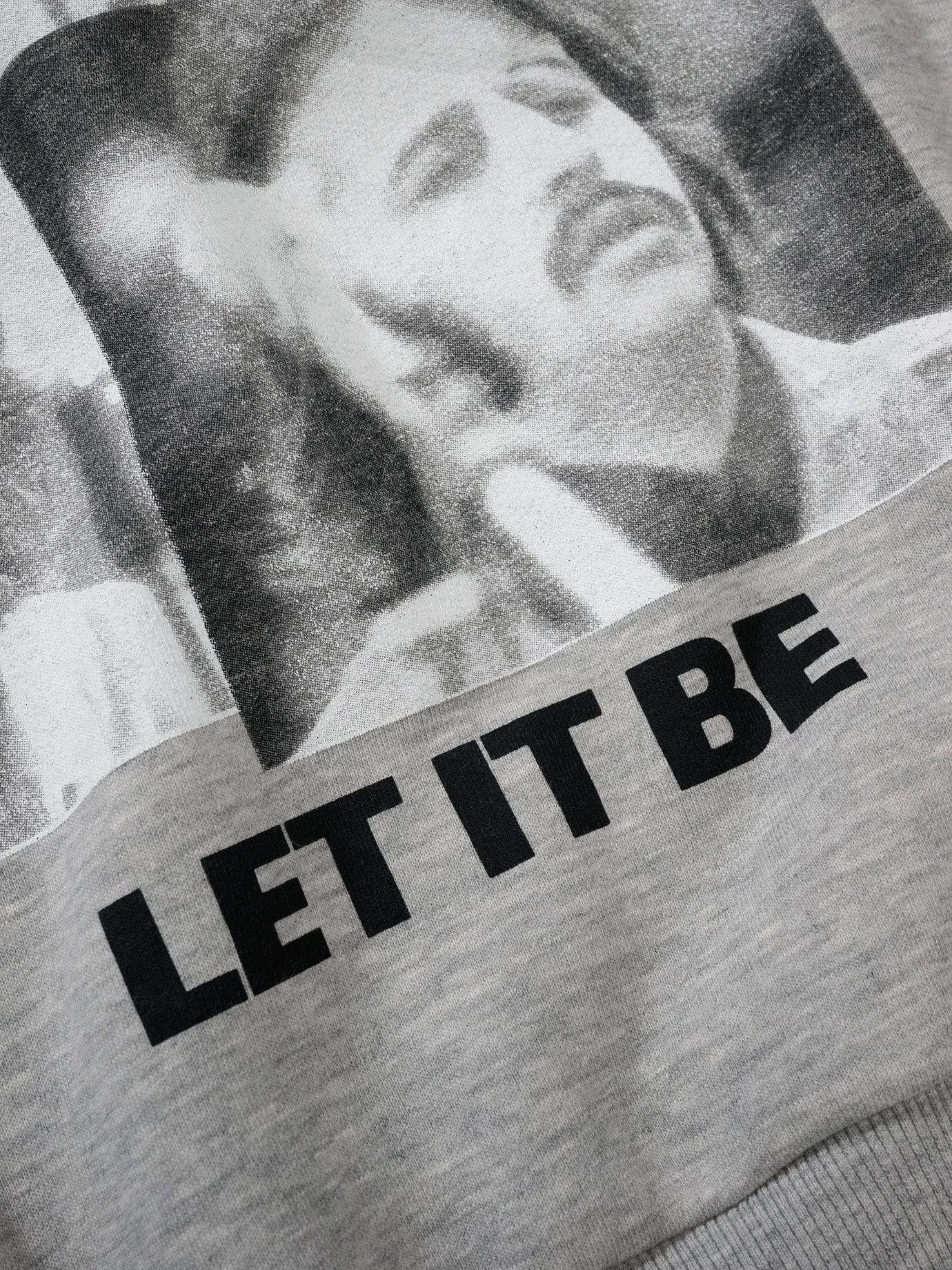 Die Zeile für Pauls Mutter. In einem Interview gab Paul später an, dass seine Mutter ihm in einem Traum begegnet sei und ihm über die Diskrepanzen in der Band gesagt hatte: Let it be. 12 Jahre nach der Veröffentlichung sagt John über den Song, es wäre nicht sein Song gewesen. Der Titel wurde ihre letzte A-Single, in getrennten Portraits finden hier die vier britischen Legenden noch einem auf dem Sweatshirt zusammen. Bedruckt auf einen French Terry-Sweat, der etwas fester ist.