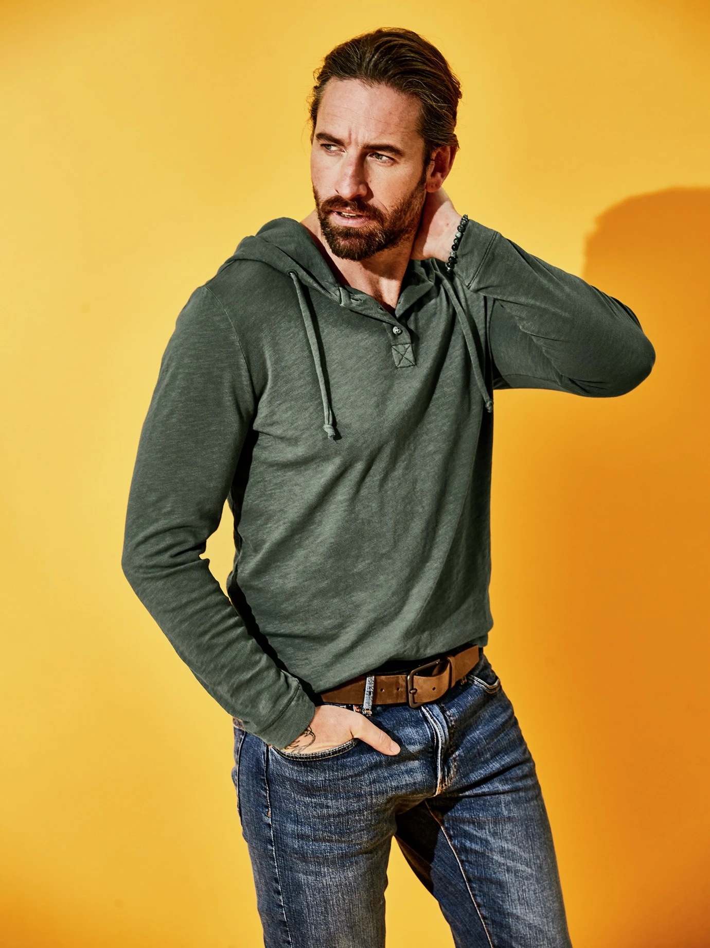 Die reine Freude an lauen Abenden. Und eine Freude, die Sie über das ganze Jahr begleiten wird. Mit seinen 210 Gramm Flammgarn fühlt er sich leicht an wie ein Longsleeve. Nur eben mit Kapuze gegen den kühlen Abendwind am Flussufer (drunter passt auch ein T-Shirt). Wird’s doch wärmer, bleiben die obersten Knöpfe offen. Tragen Sie ihn solo zur Jeans oder Chino, an kühleren Tagen unter einer Jacke. Oder im Day-Pack, wenn Sie noch nicht so genau wissen, was kommt.