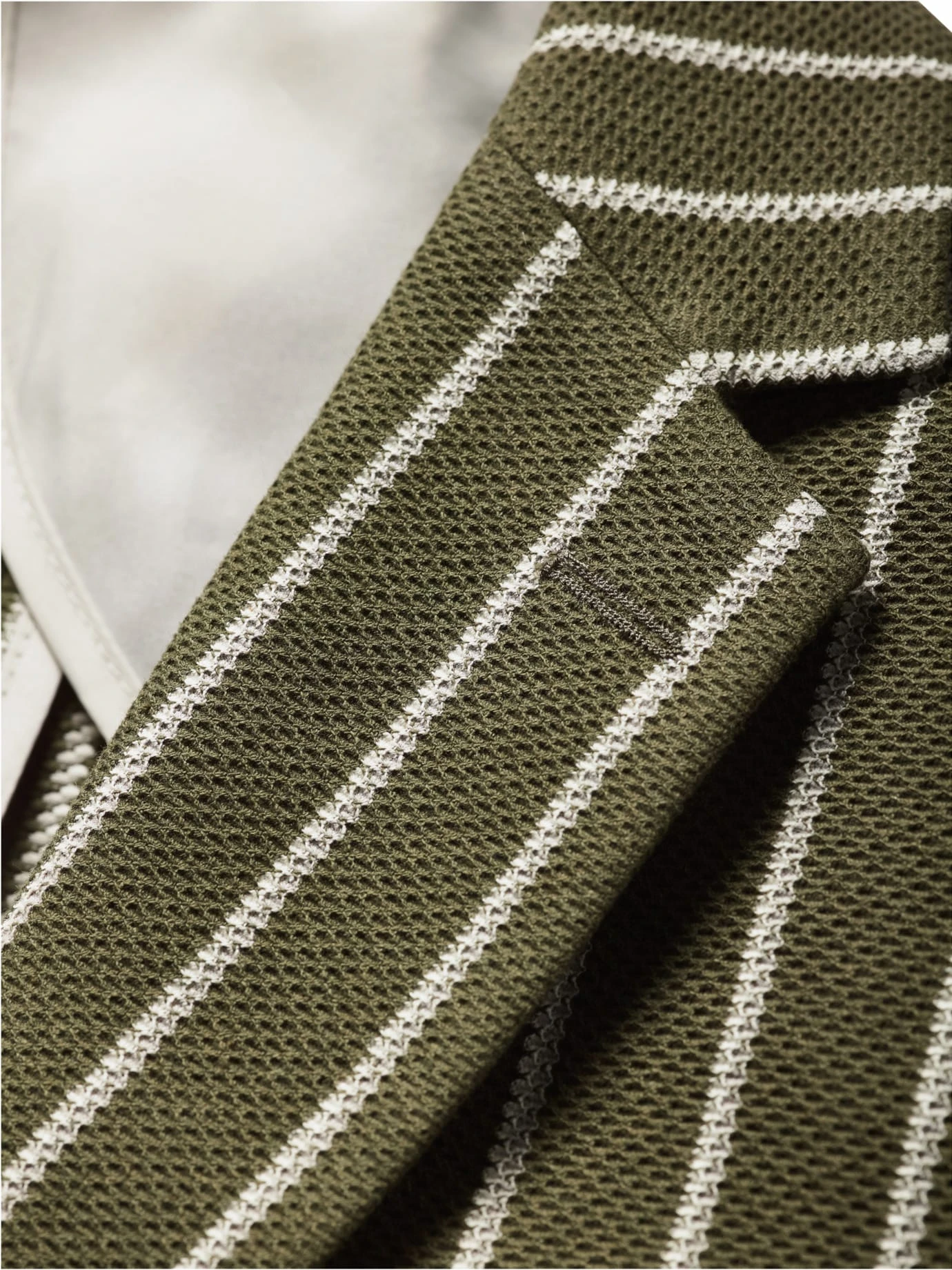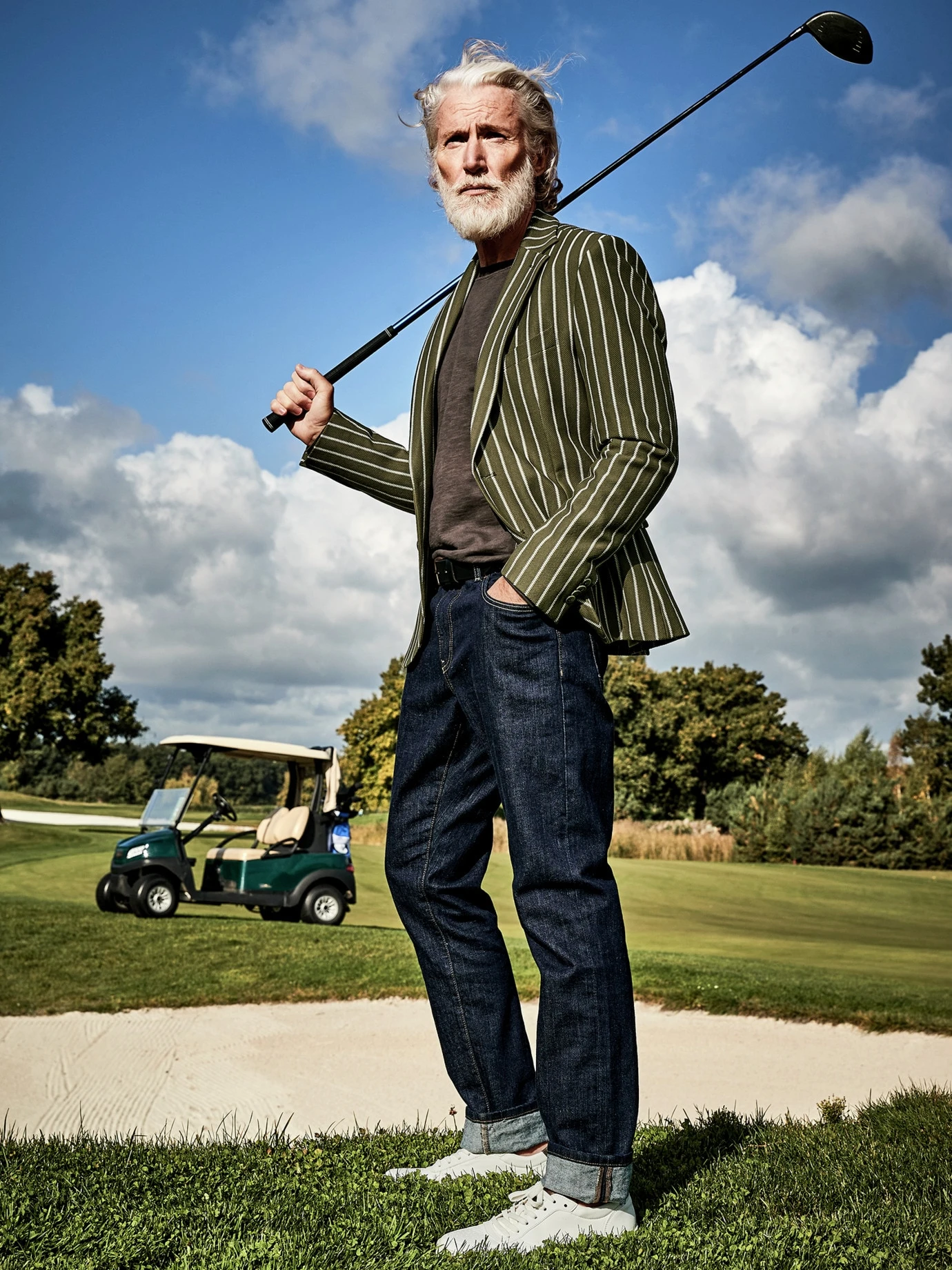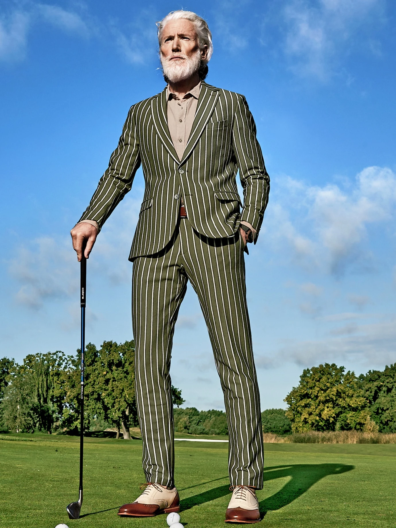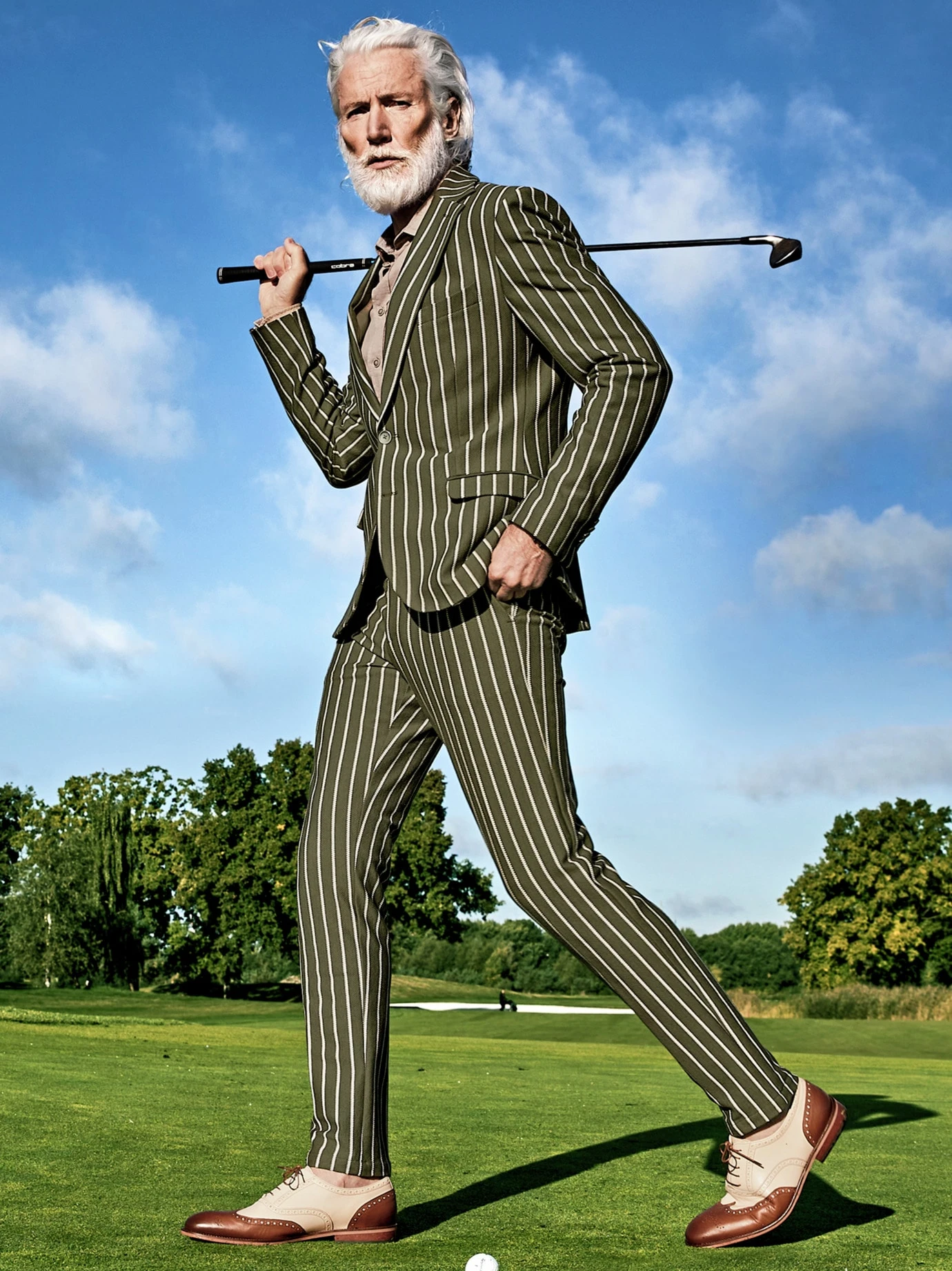 Steht nicht auf dem Balkon, sondern mitten im Geschehen. Die Farbe und Kaktus-Struktur der feinen Streifen sorgen auf jeder Party für Gesprächsstoff. Wichtige Info für Sie: Das Sakko fühlt sich gut an, fast wie selbstgestrickt. Die Materialmischung fällt locker, hat einen festen Stand und knittert nicht. Zu dem extrovertierten Auftritt passt der knackig-kurze Schnitt. Seine ernsthafte Seite zeigt das Sakko bei der Verarbeitung: Brustleistentasche, zwei sauber paspelierte Pattentaschen, zwei Innentaschen, Seitenschlitze. Damit beim Outfit alles im grünen Bereich bleibt, empfehlen wir ein Hemd oder Shirt in neutralen Farben und für den vollen Show-Effekt die passende Hose (Nr. 24-6292-3).