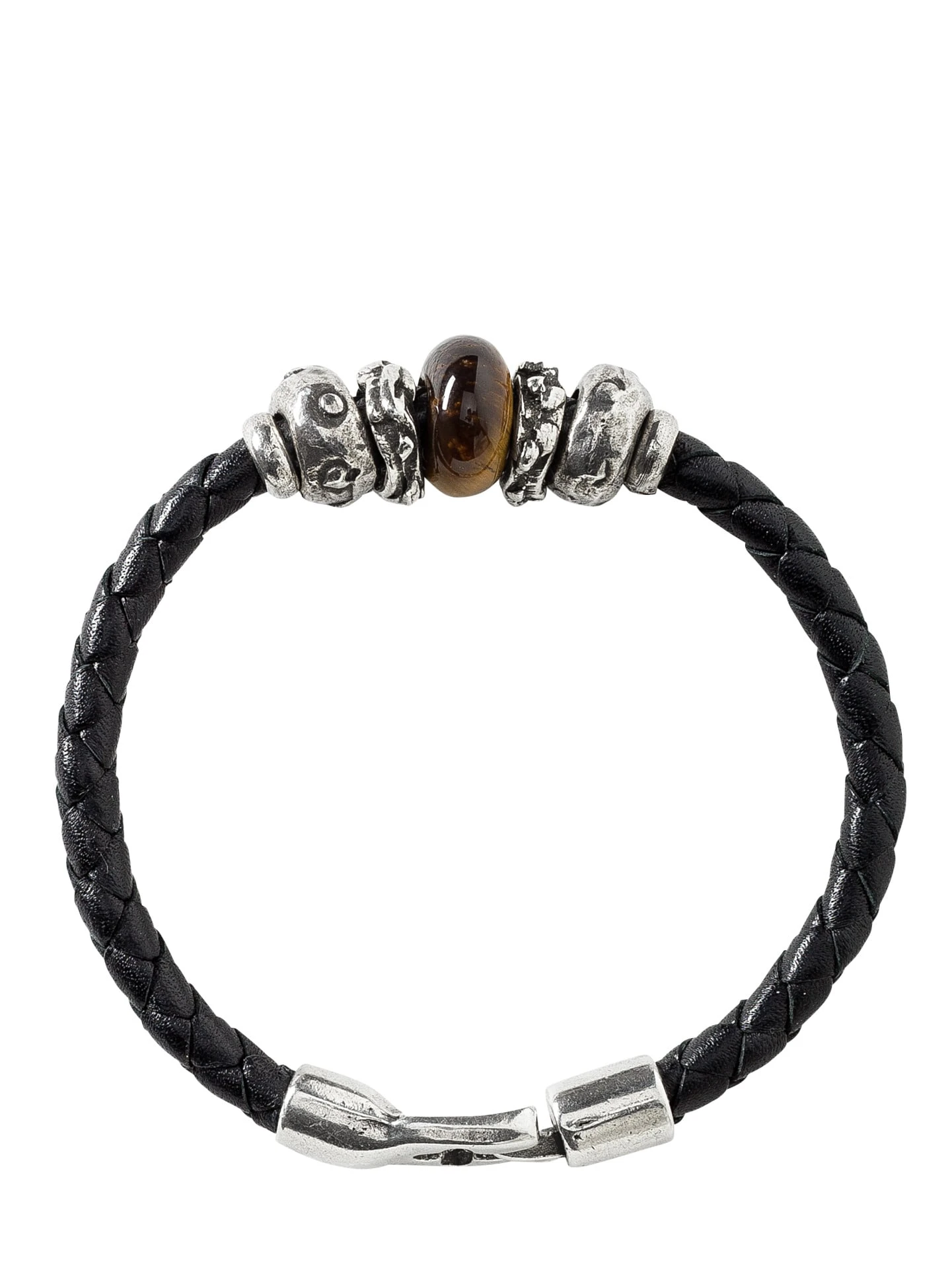 Ein Stück spanische Handwerkskunst am Handgelenk. In einem ruhigen Straßenzug, unweit der Ramblas, fertigen Lidia und Christian seit über 20 Jahren mit alteingesessenen Juwelieren Männerschmuck von Hand. In der Mitte des gestanzten Lederbandes ist ein echter Kristall, umschlossen von jeweils vier Hartzinngliedern (nickelfrei).